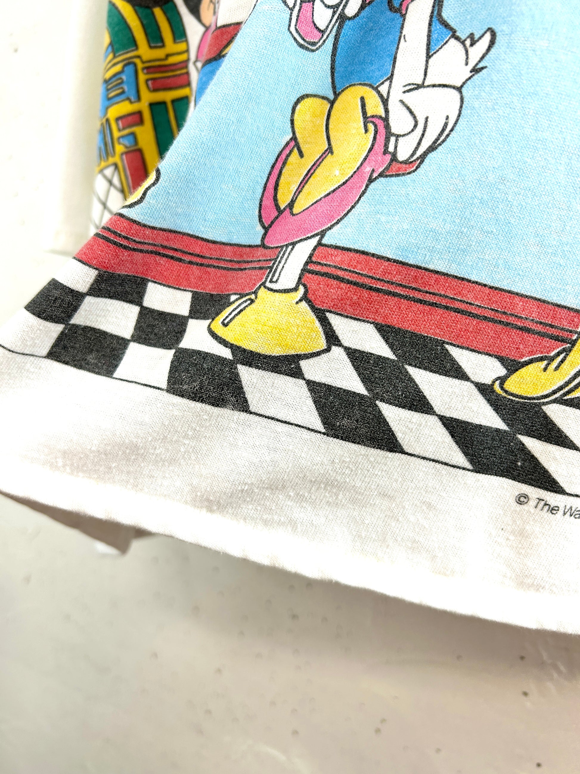 アメリカンダイナーと共に描かれるディズニーキャラクター達が可愛い1着。