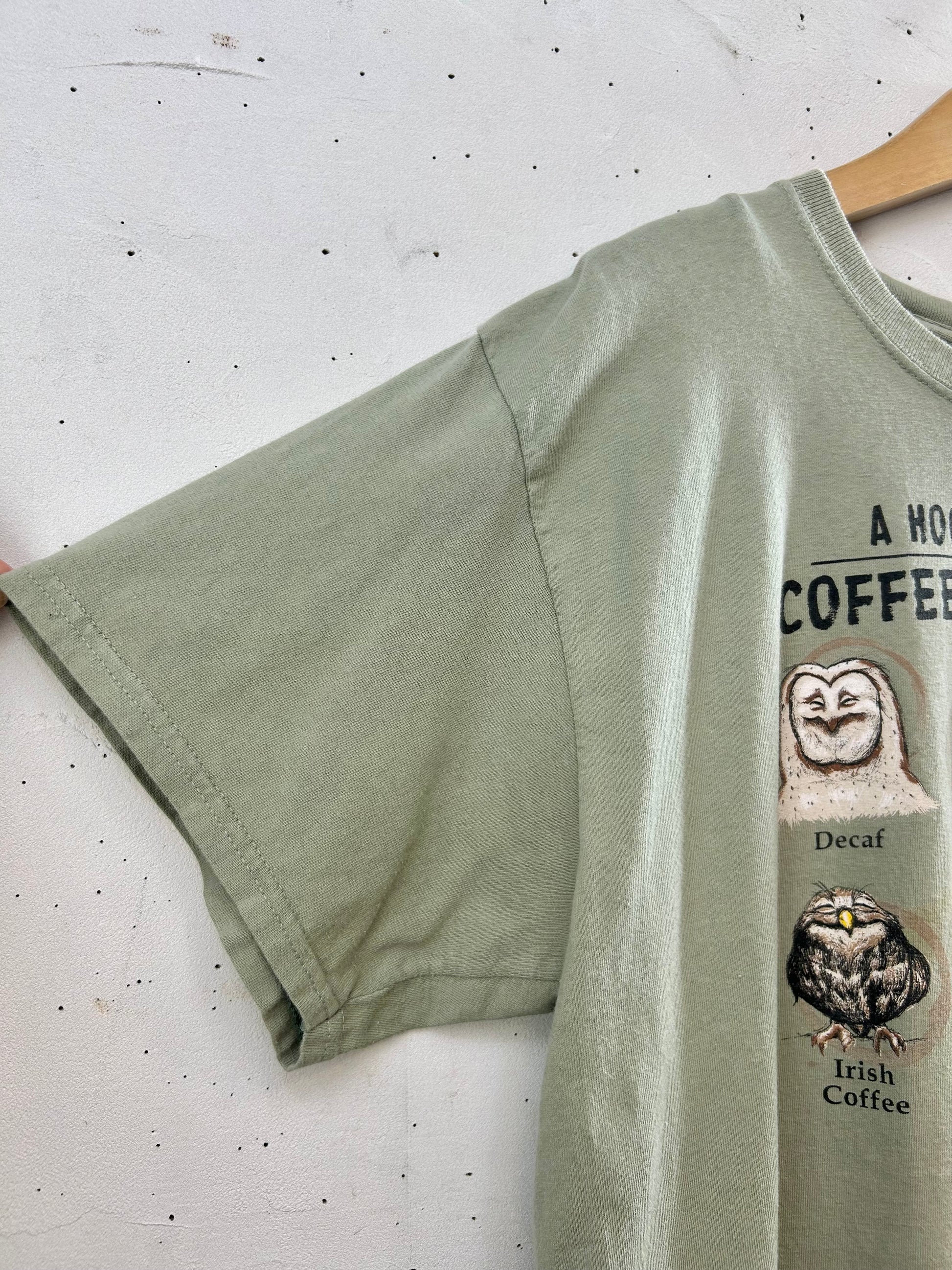 色々な種類のフクロウとコーヒーを組み合わせたグッドプリントな1着。
