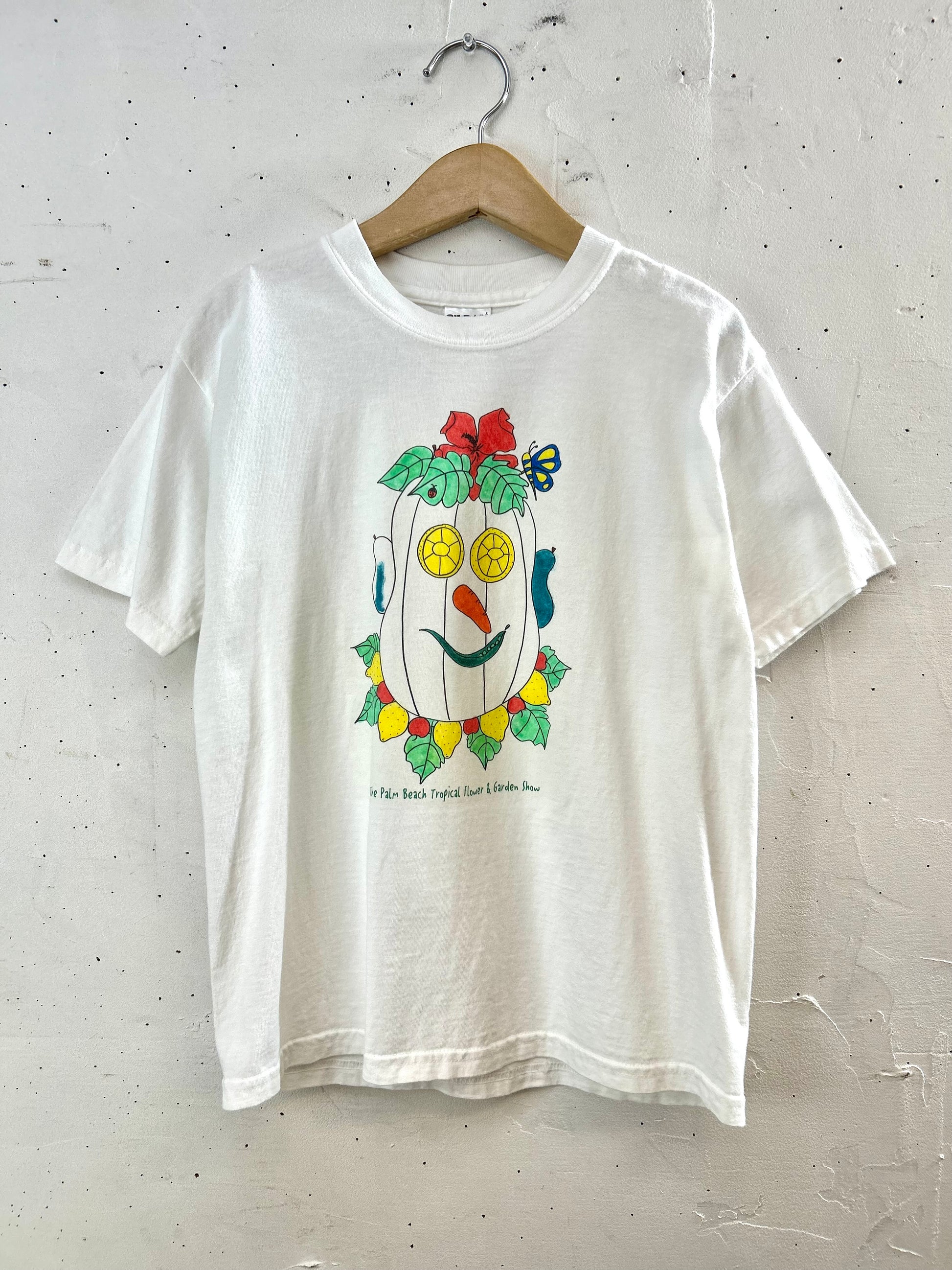 GILDANのボディにパームビーチで開かれたトロピカルフラワー&ガーデンショーのキャラクターがプリントされた1着。