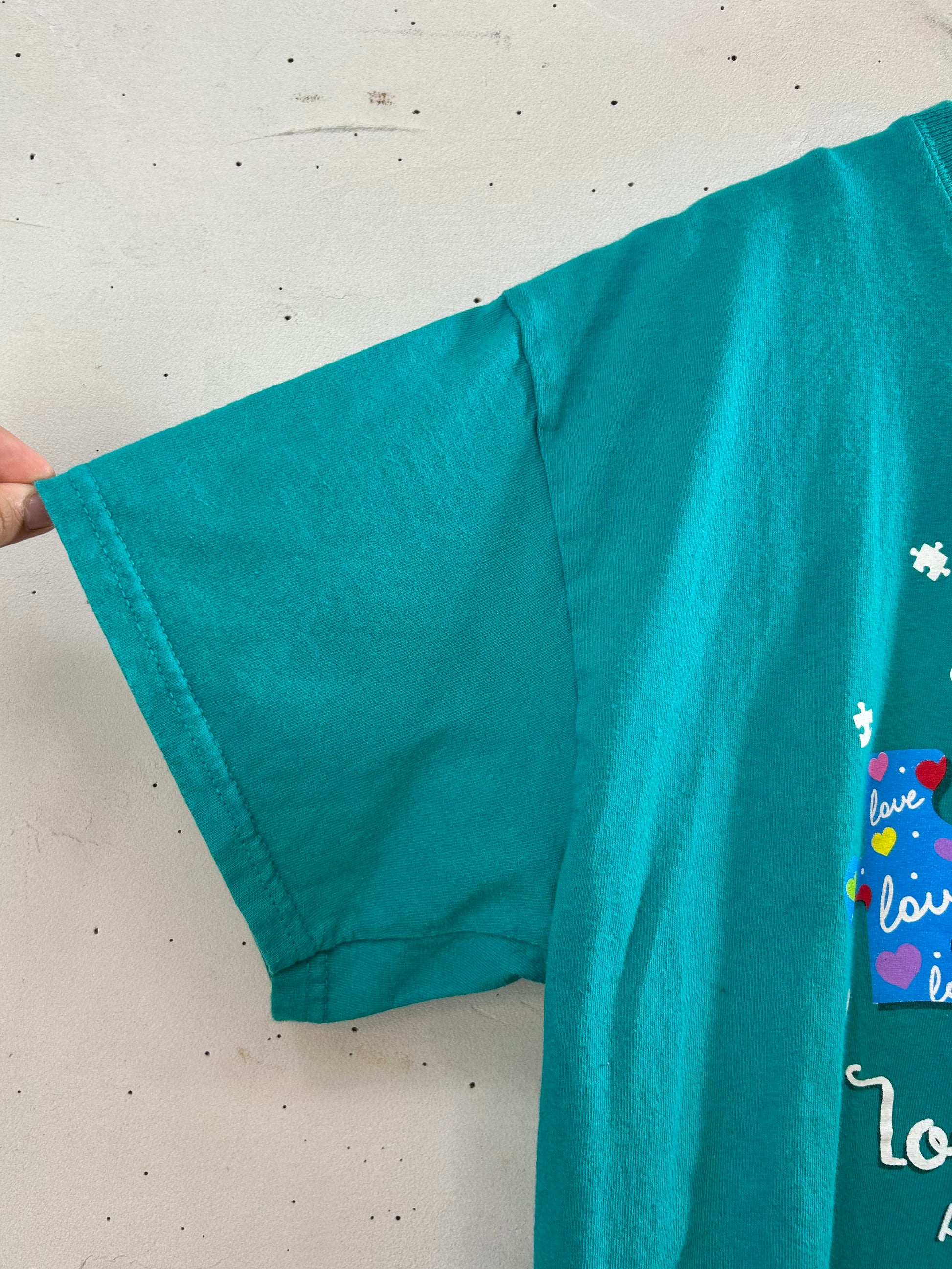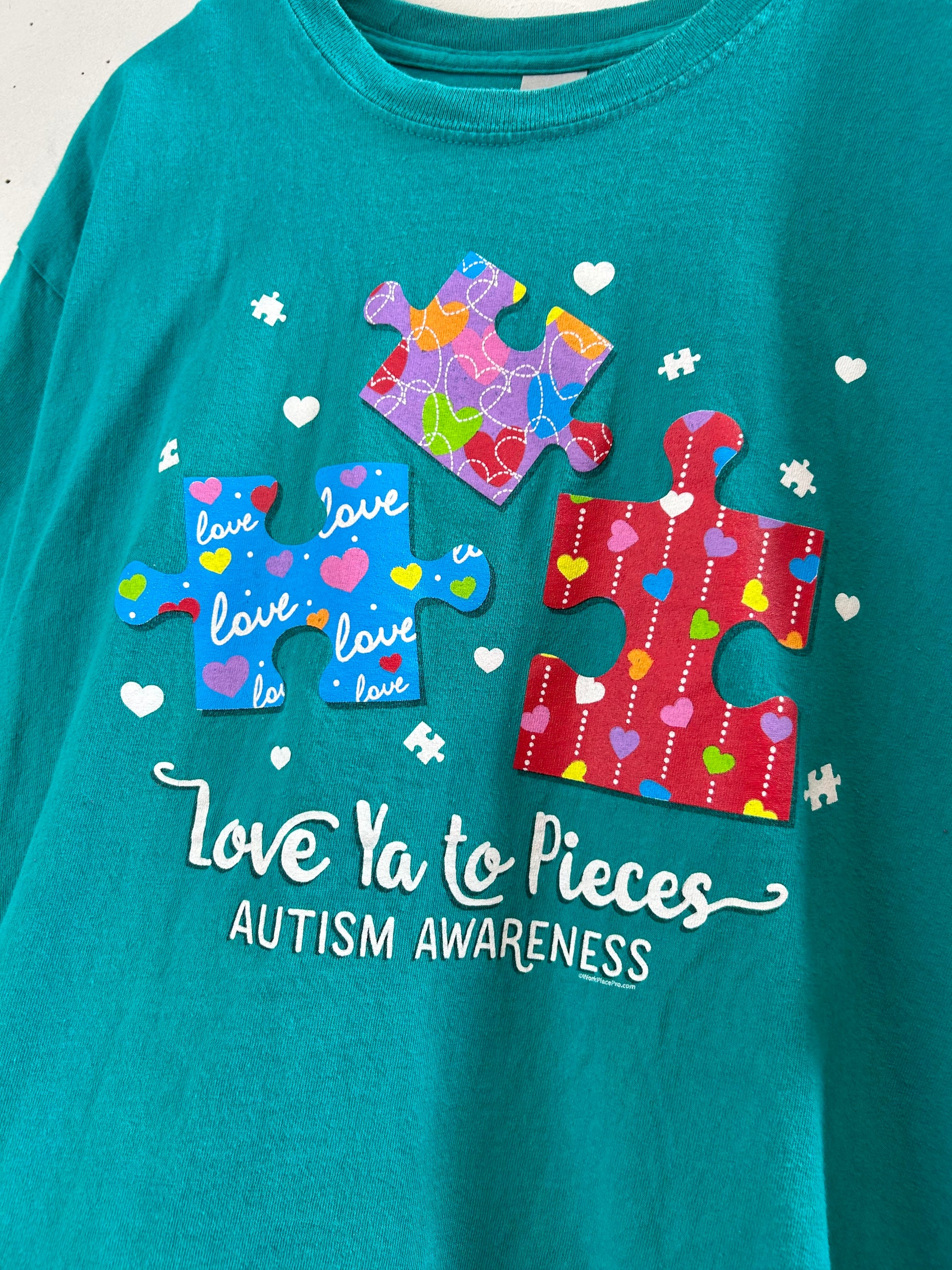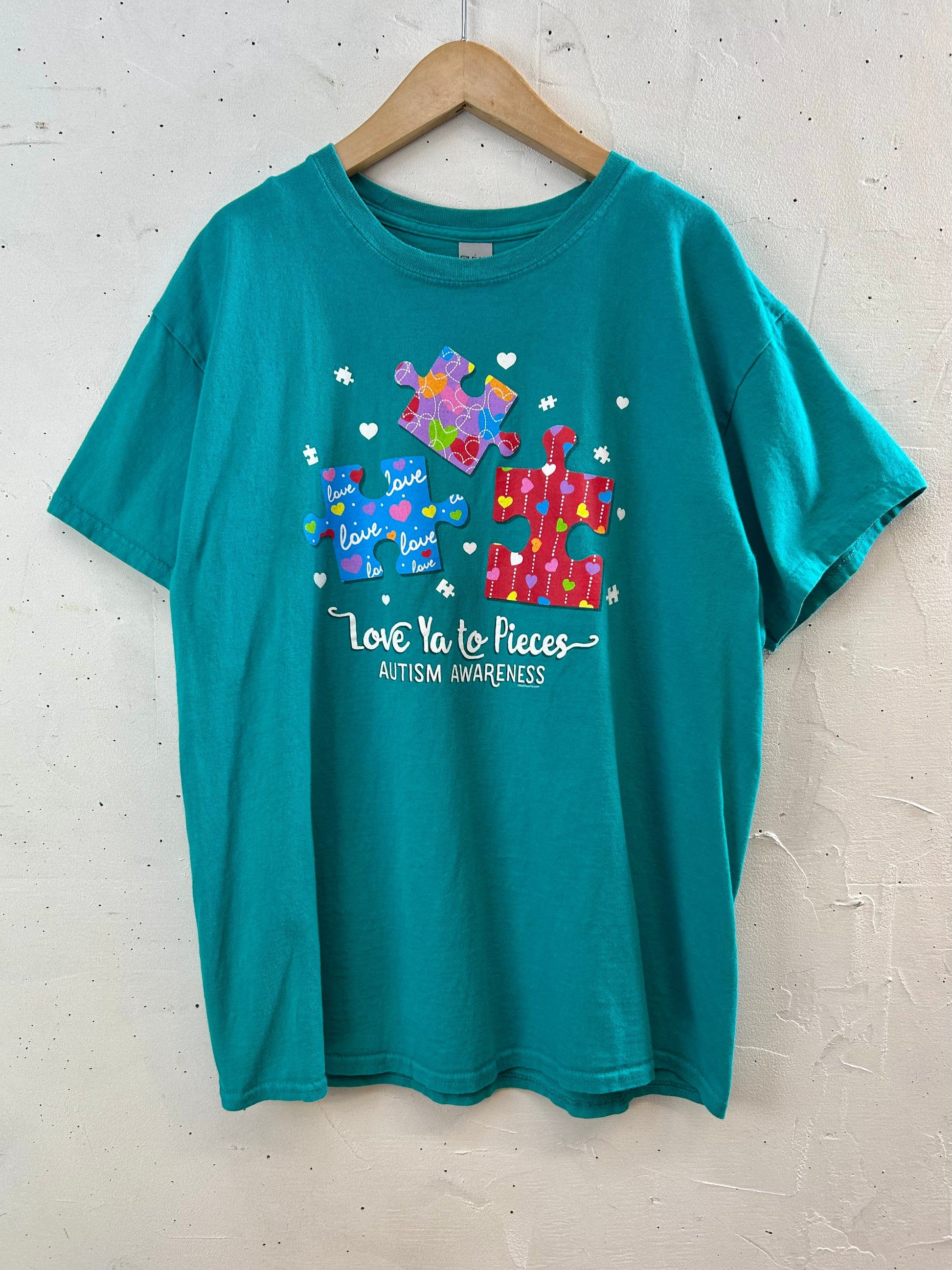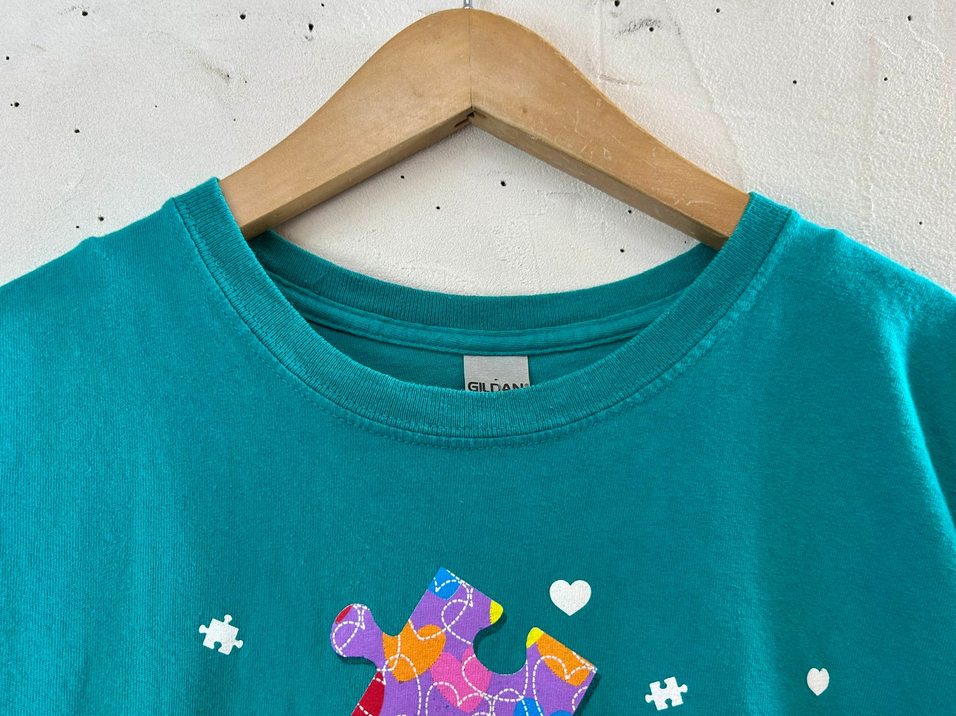 GILDANのボディにカラフルなパズルのピースのプリントがキュートな1着。
