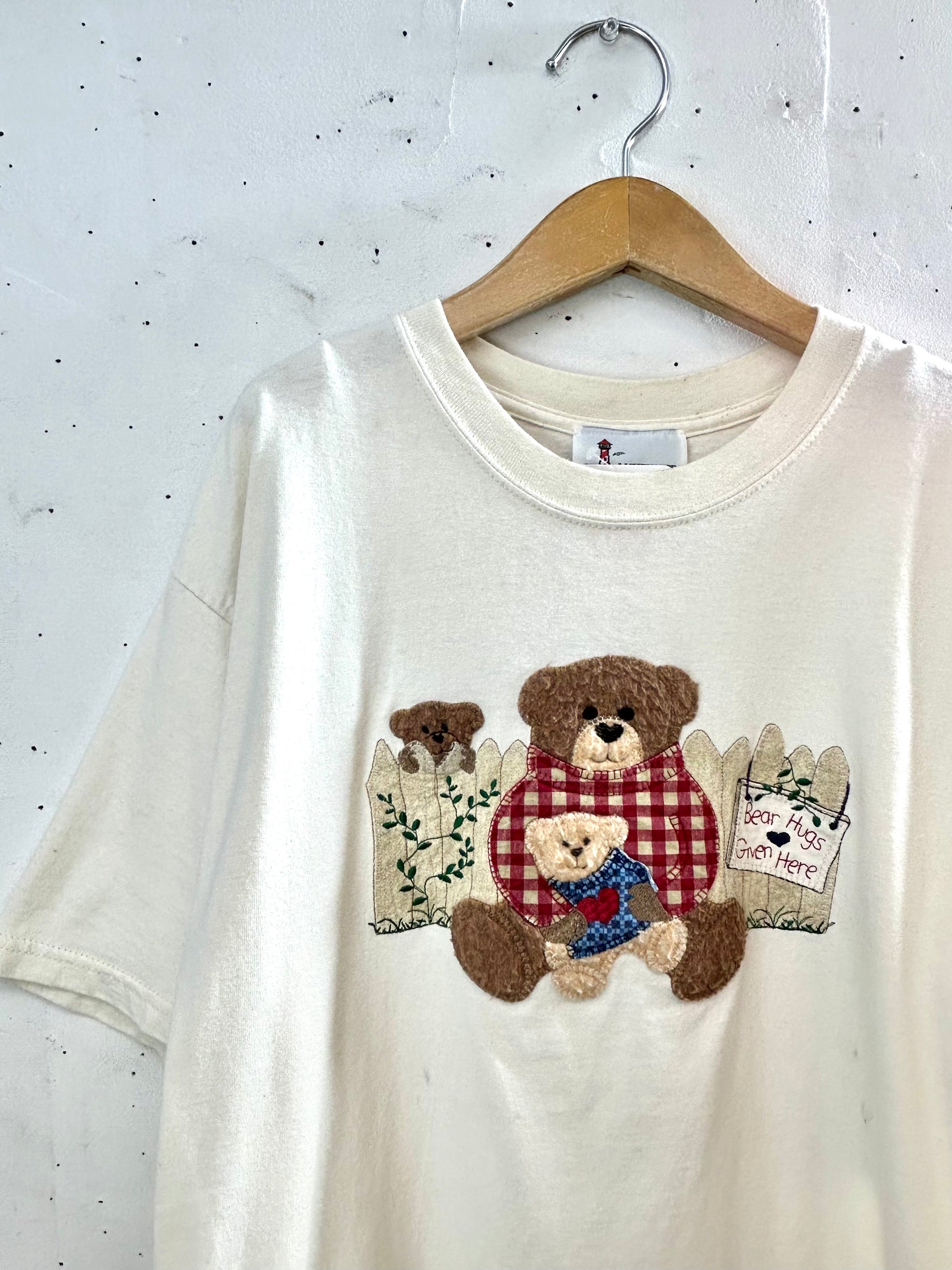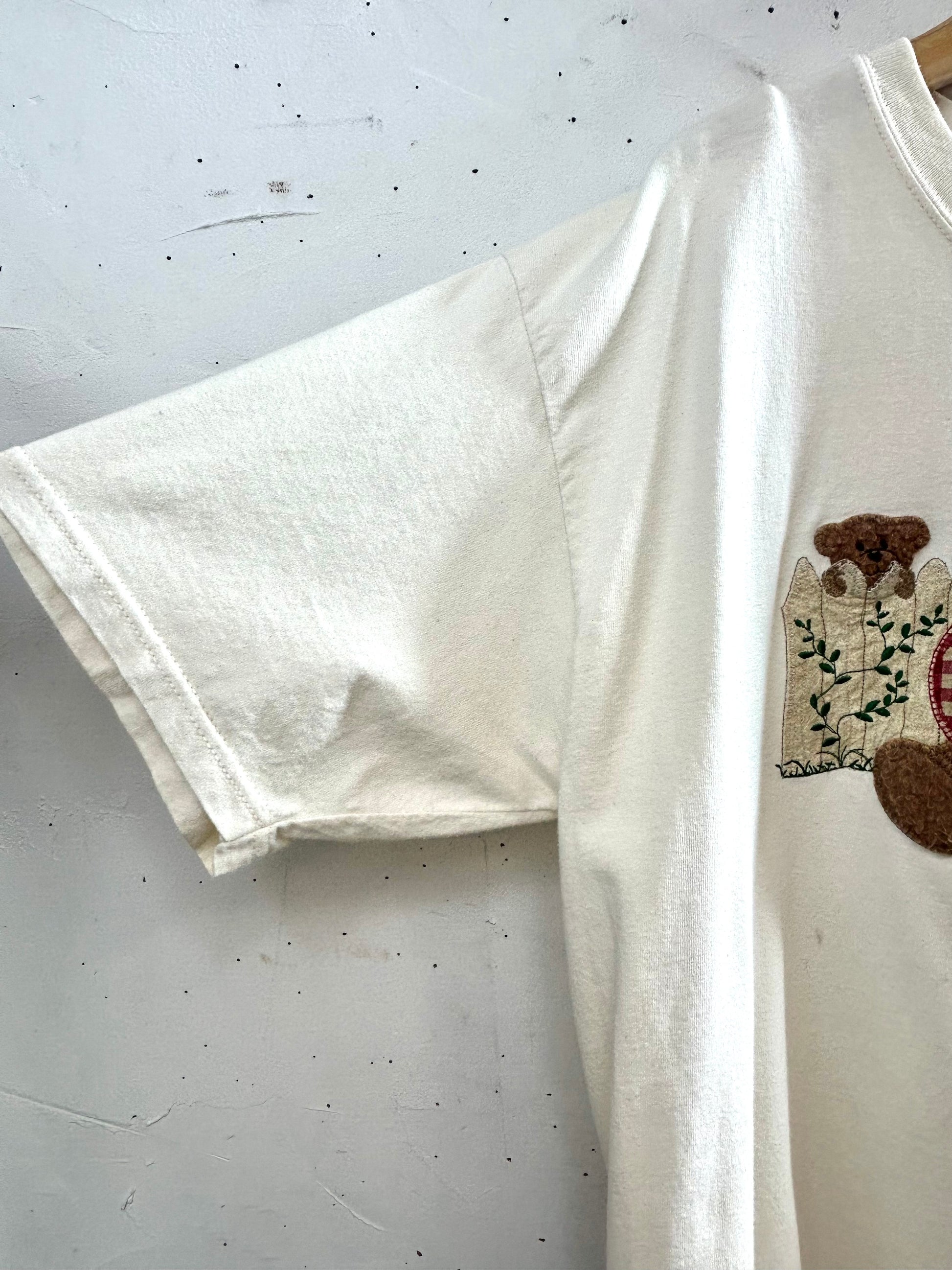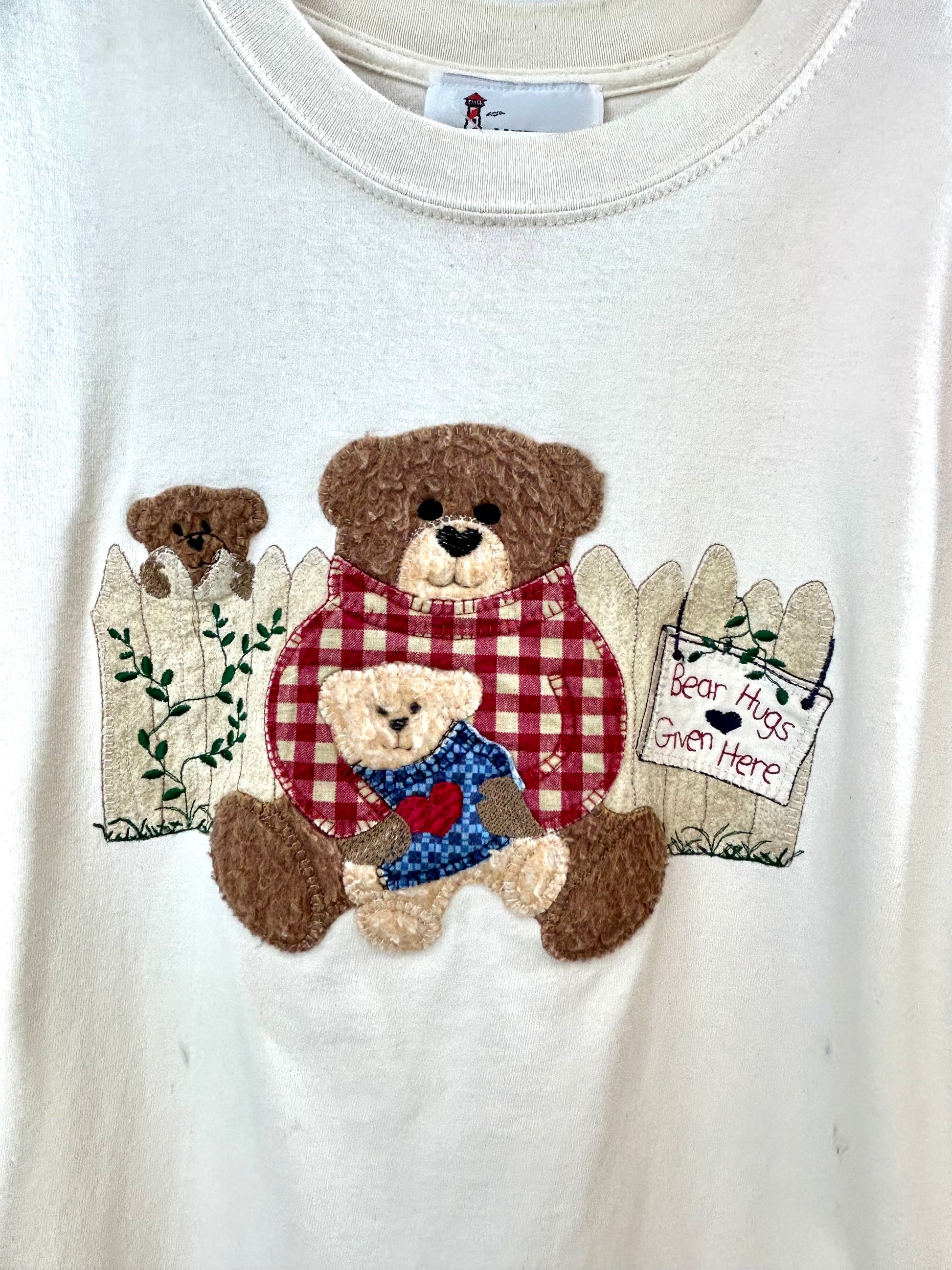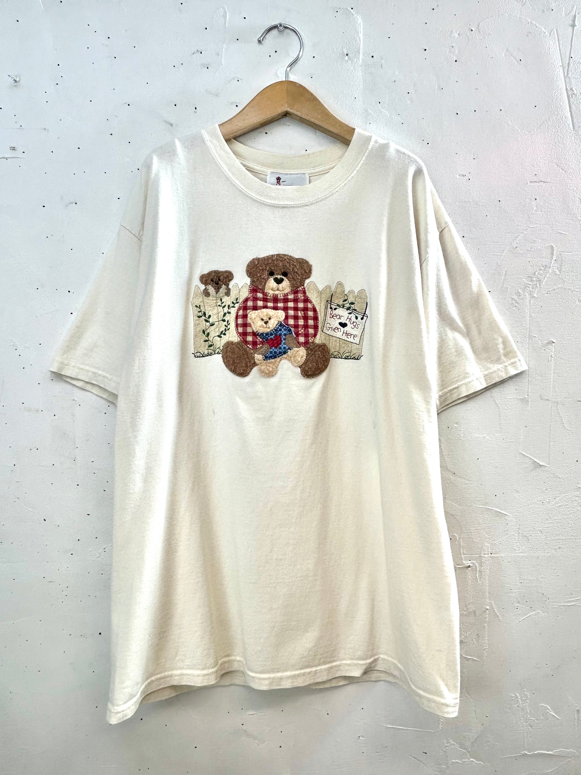 可愛いテディベアのファミリーがアップリケTシャツ。