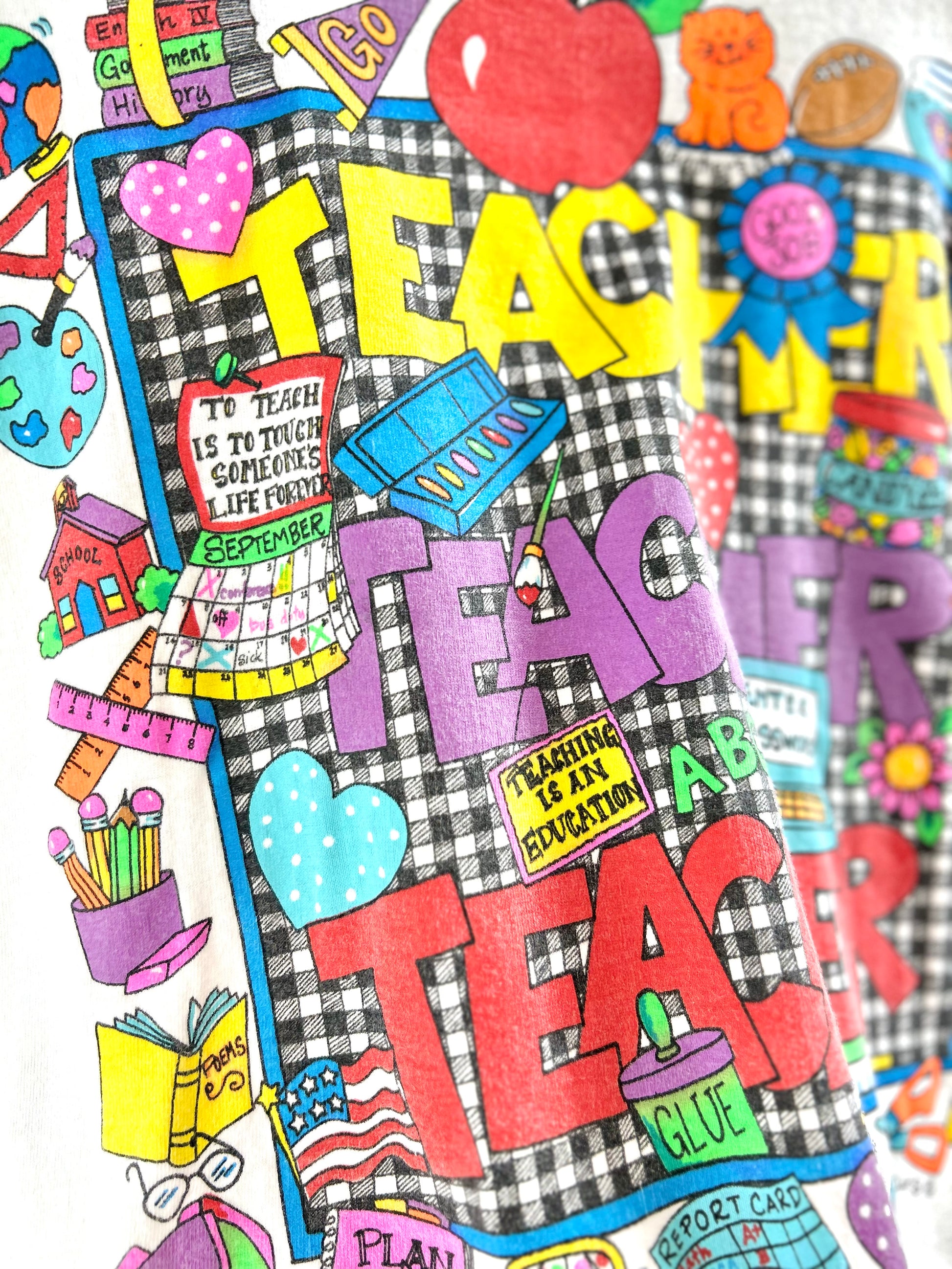 ホワイトボディに、スクールモチーフプリントが可愛い1着。