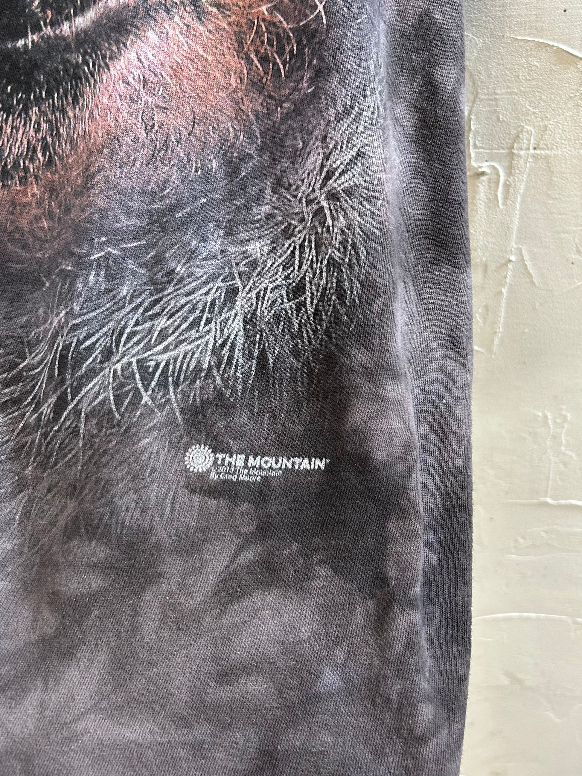 THE MOUNTAINの中でも人気なビッグフェイスプリントで、ナマケモノが珍しくインパクト抜群な1着。