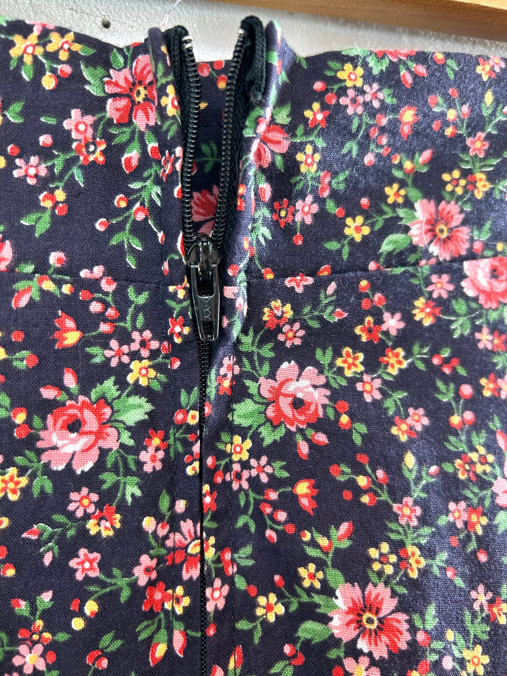 夜空に咲く花の様なブラックベースの花柄がとても可愛い1着。