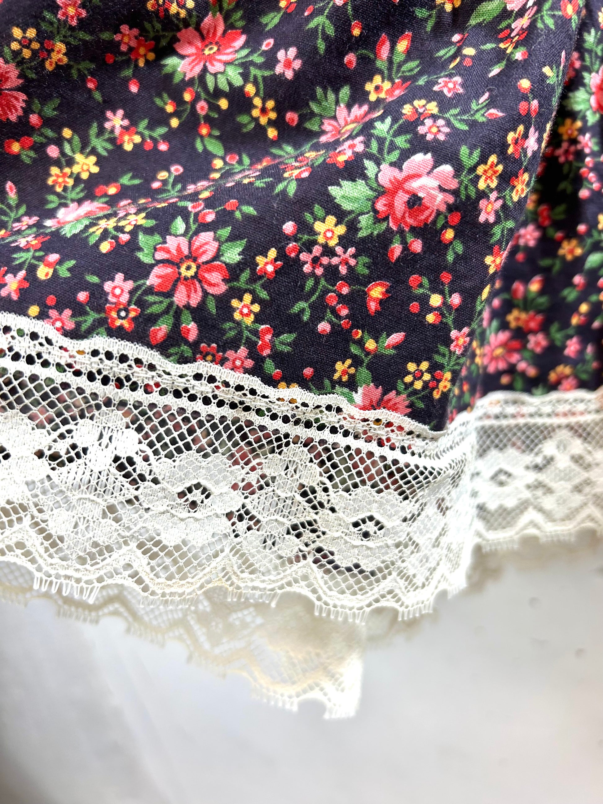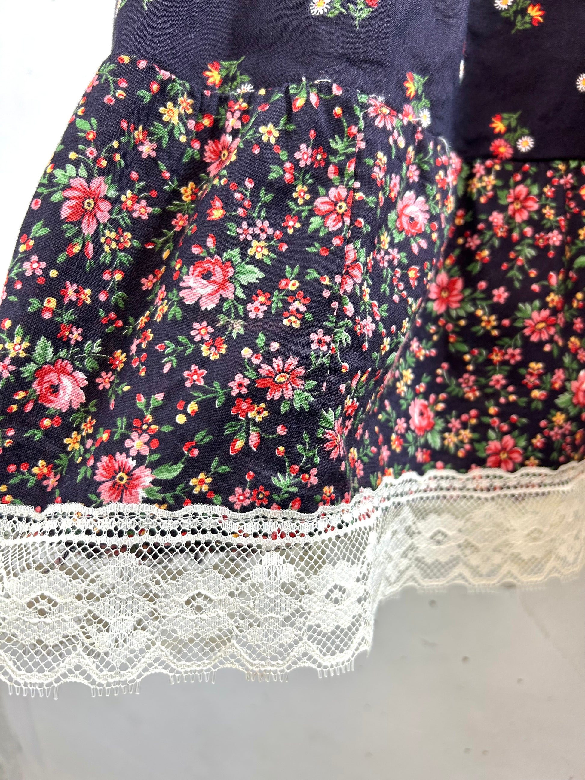 コンディション:裾のレースに薄いシミがございますが、ビンテージにご理解頂いている方でしたら気にせずご着用いただける程度かと思われます。