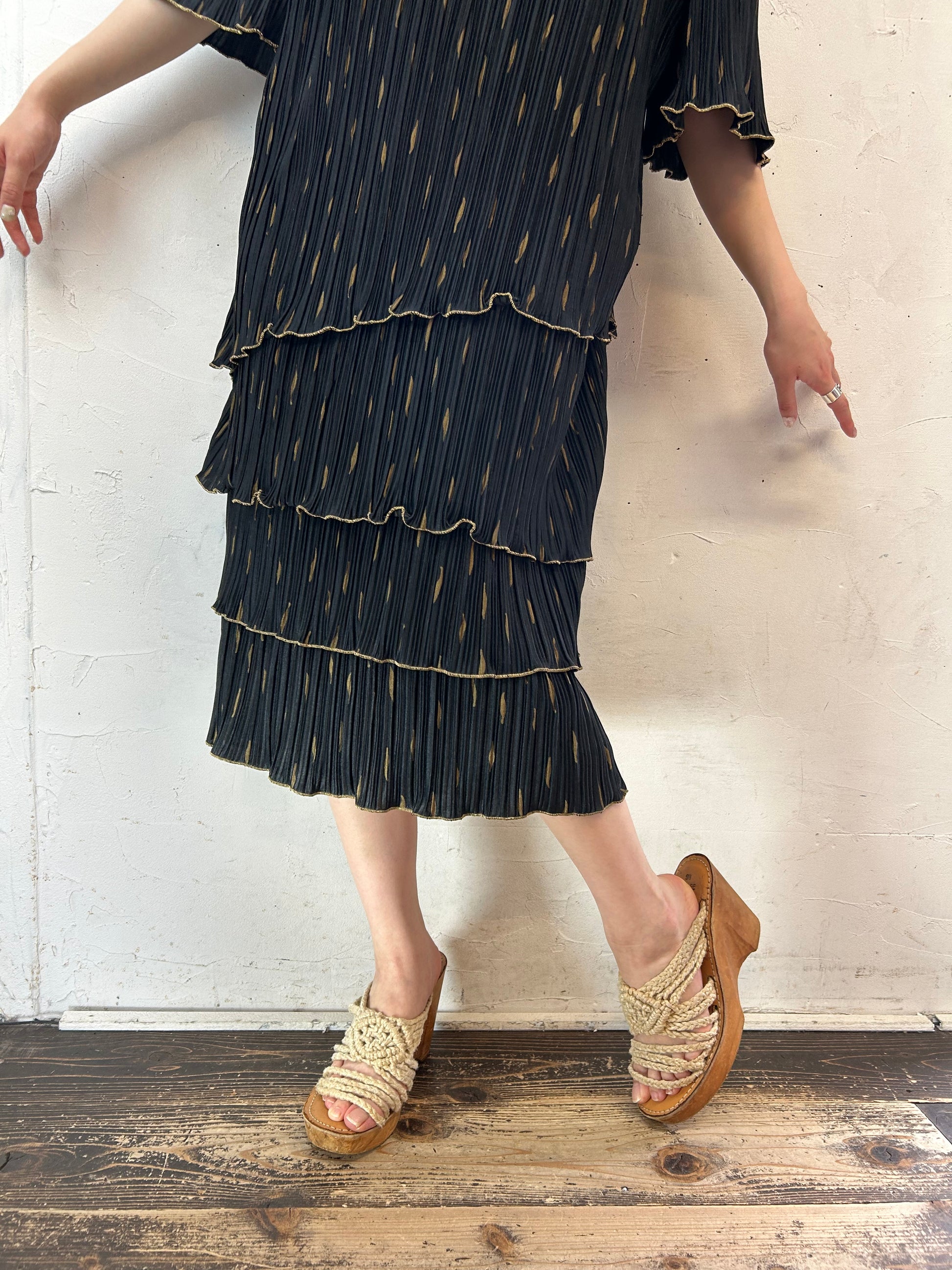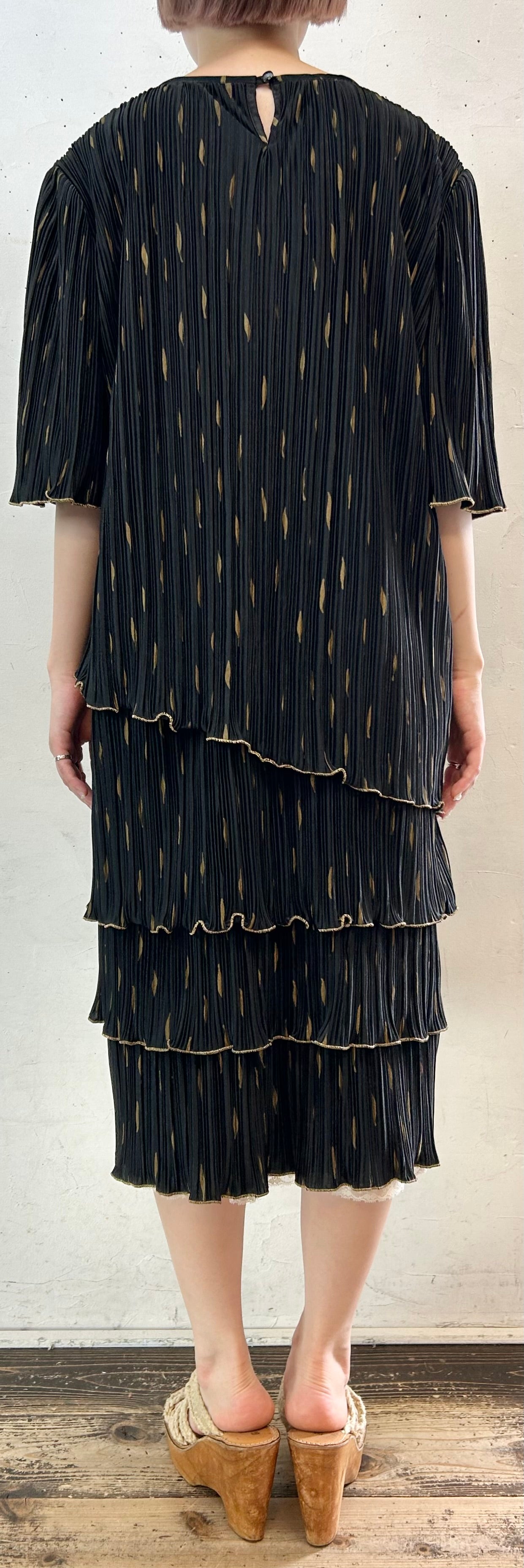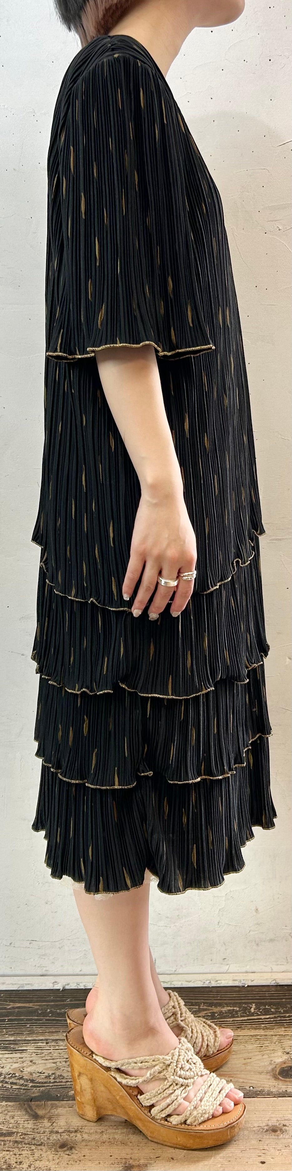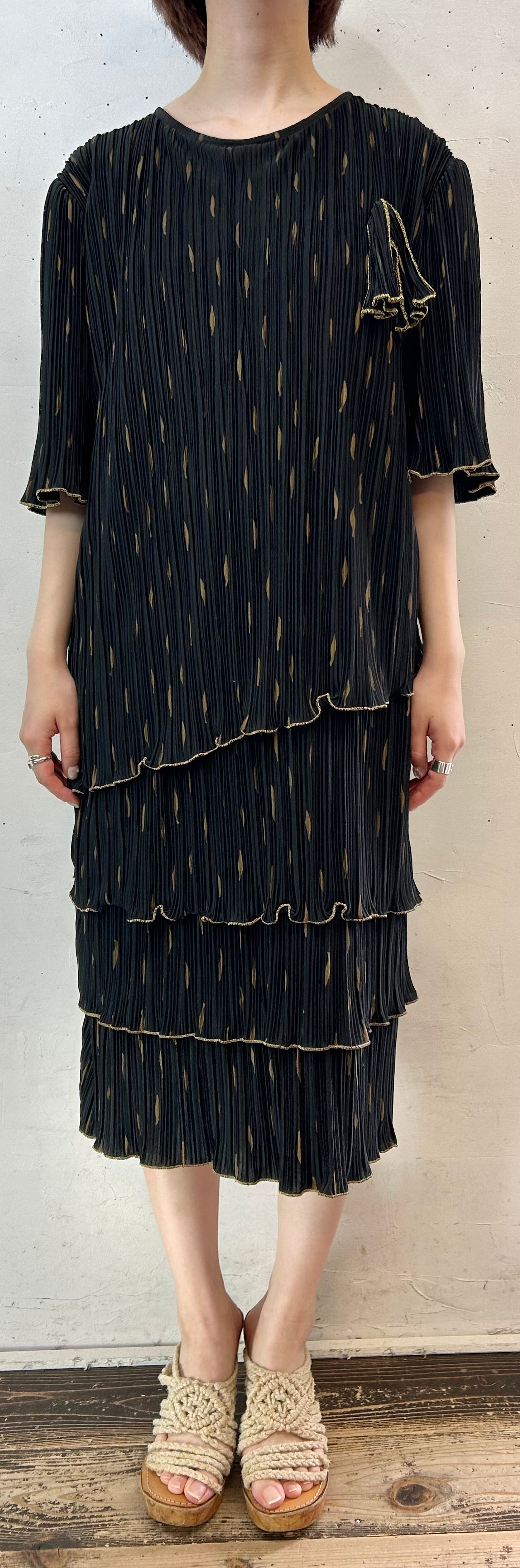 プリーツ加工の施された生地がたっぷり重ねられたティアードデザインが主役級の1着。
