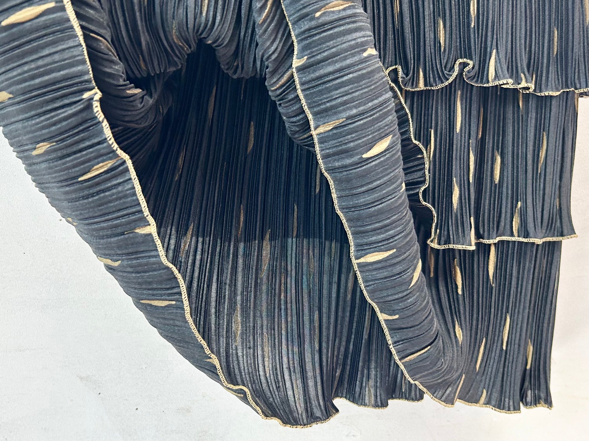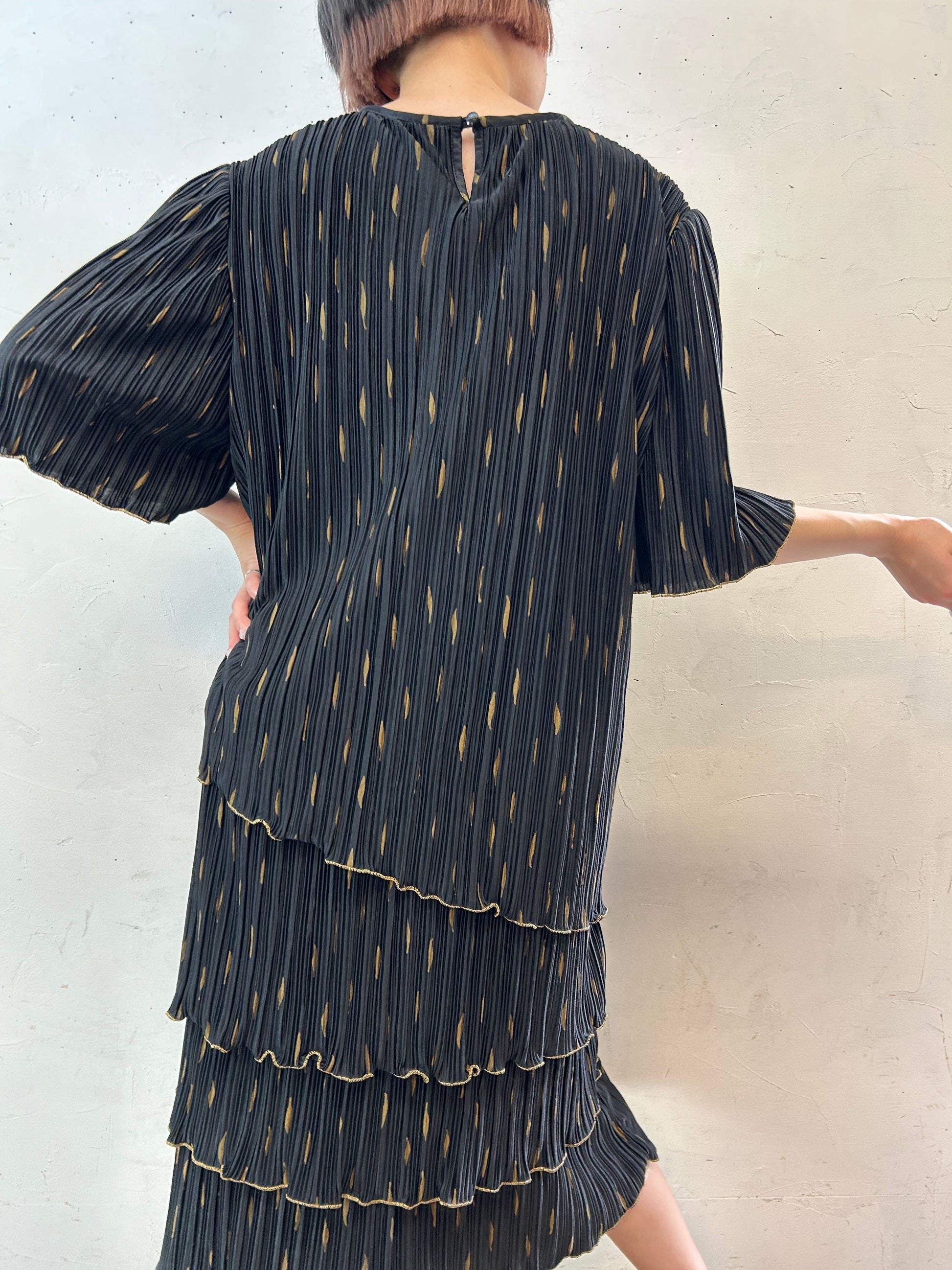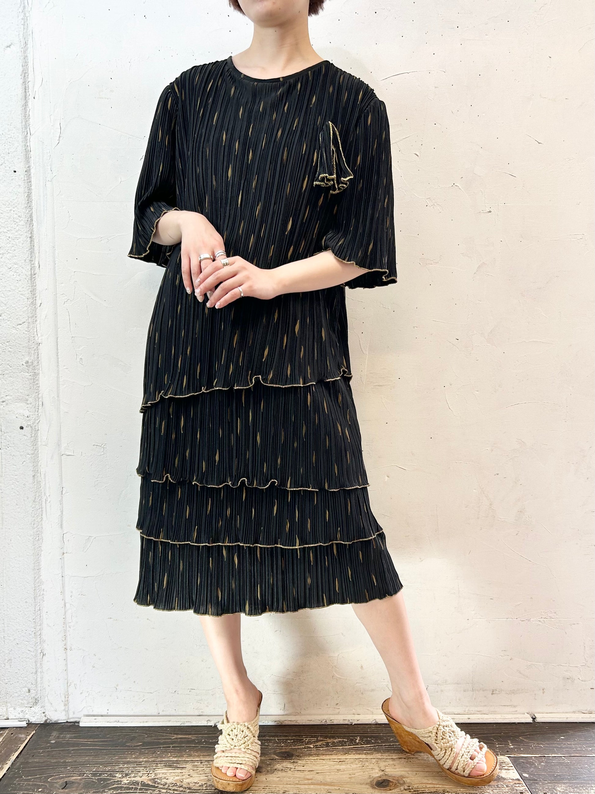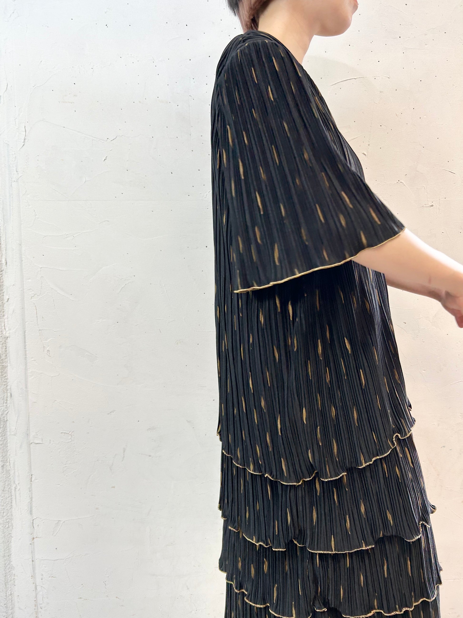プリーツ加工の施された生地がたっぷり重ねられたティアードデザインが主役級の1着。