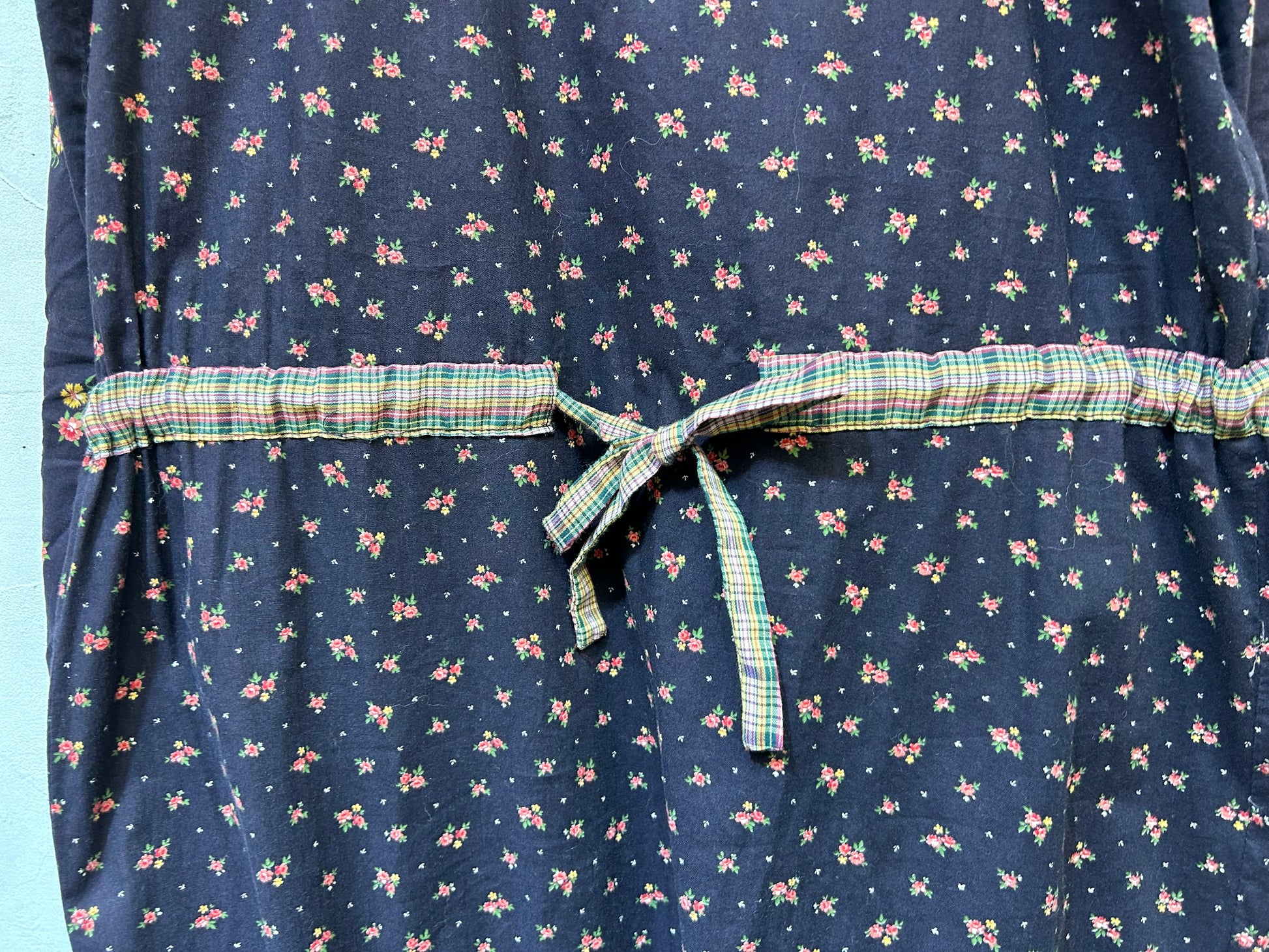 size:表記不明、肩幅39.5cm、身幅52.5cm、ウエスト切替104cm(紐入りで調節可能な為最大寸法)、袖丈65cm、ウエスト切替〜裾77cm、着丈122cm
