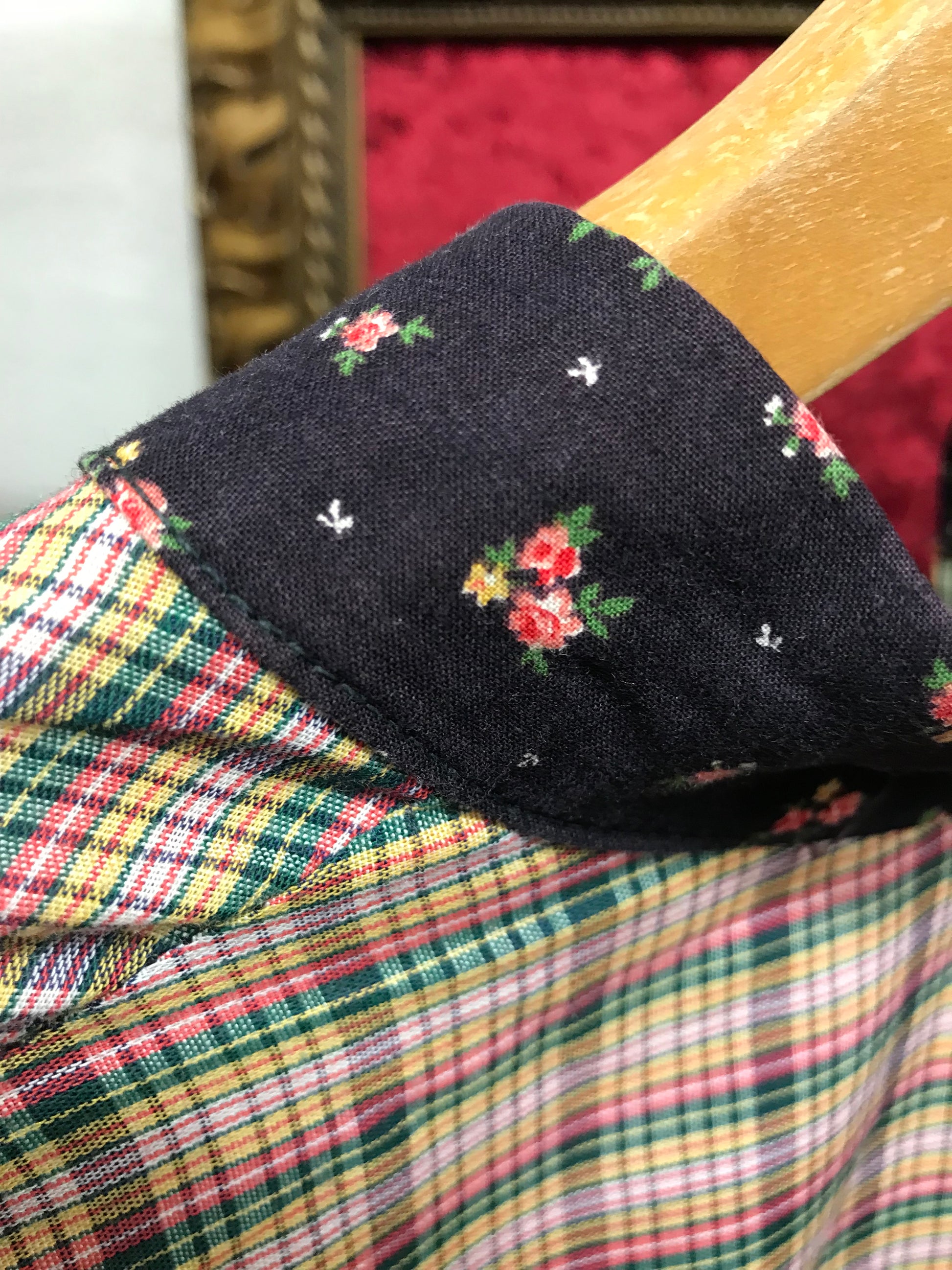 2種類のフラワーパターンとチェックパターンの切替デザインがとても可愛らしい一着。