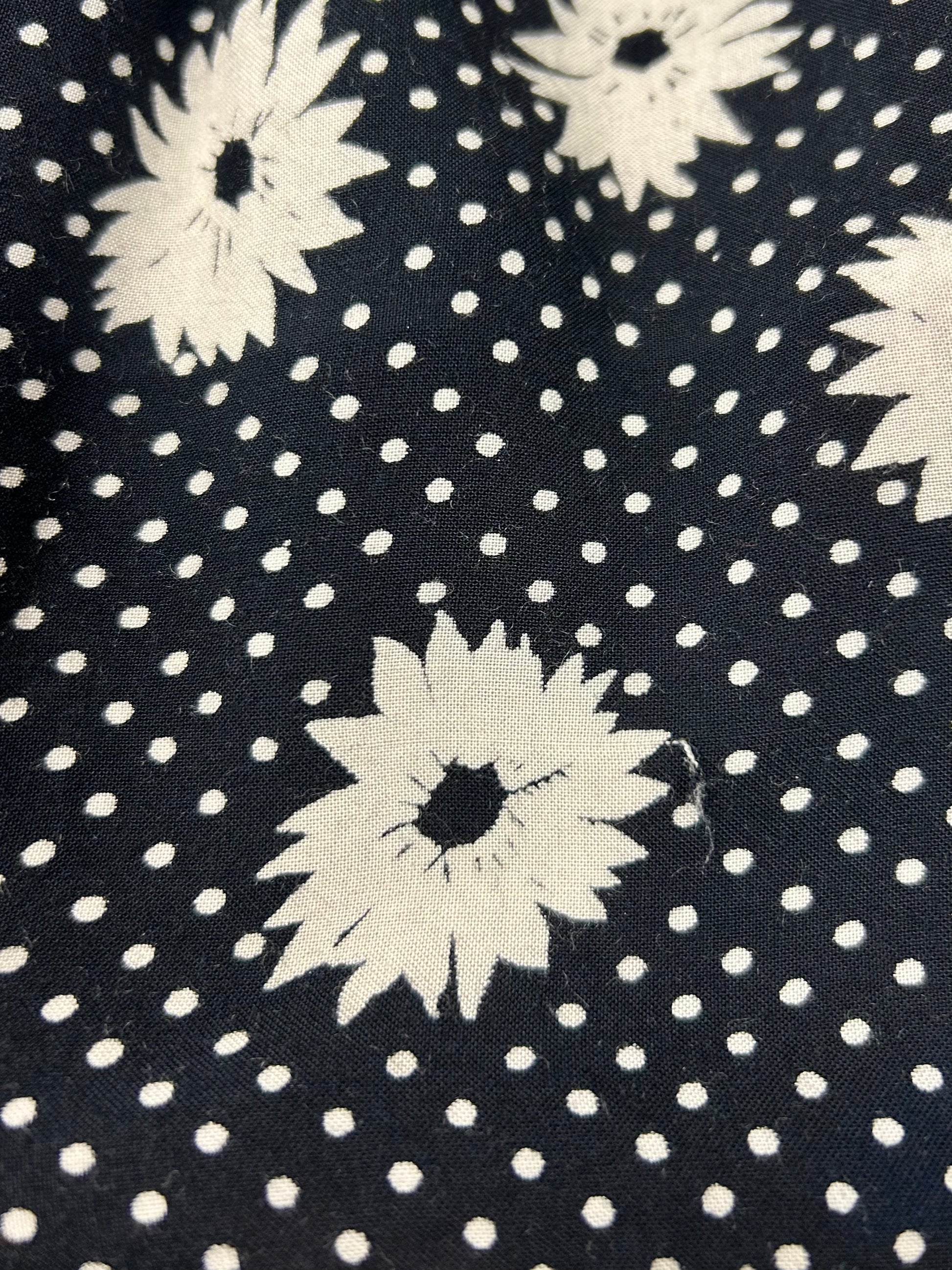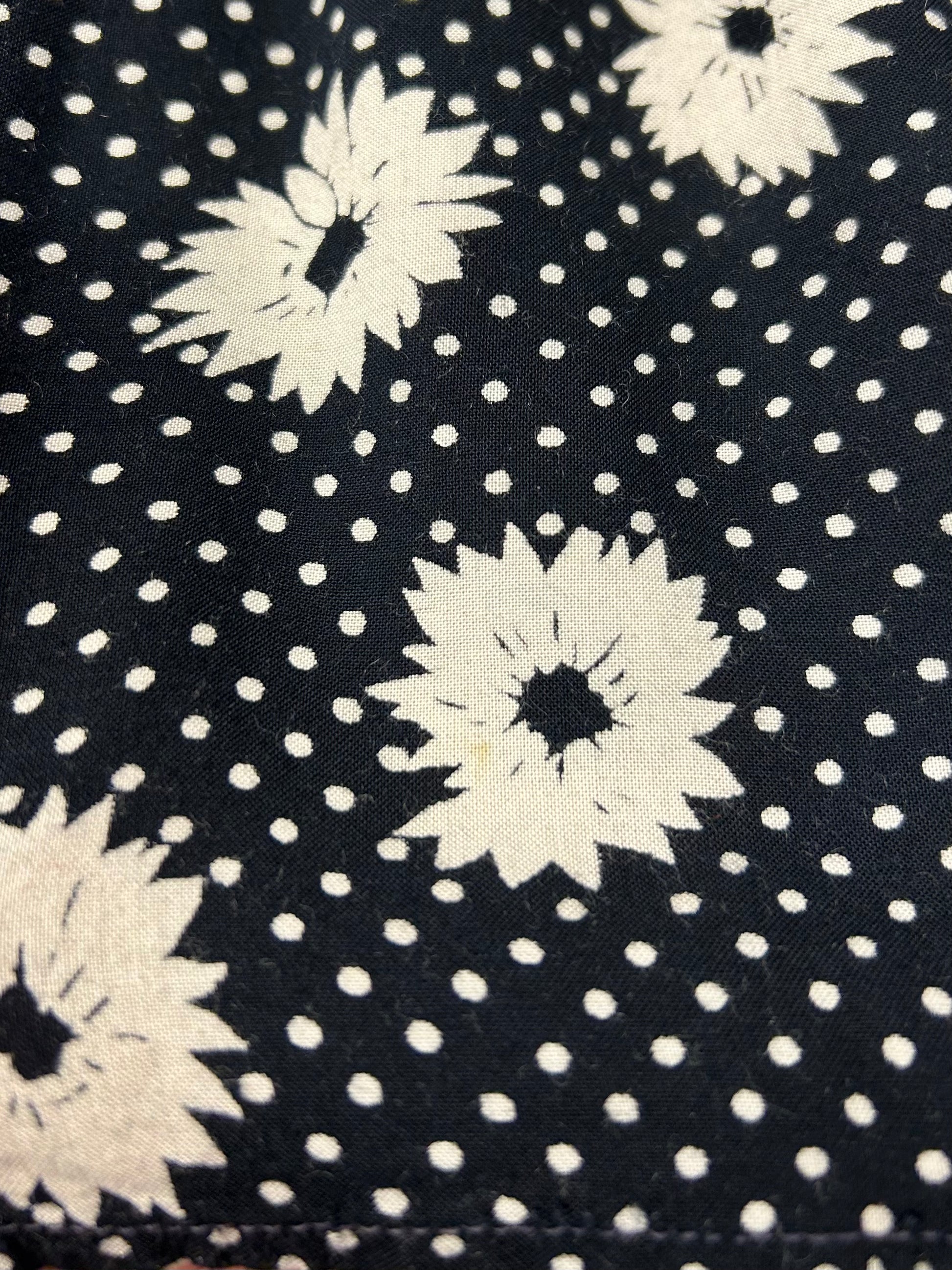 モノトーンカラーのドットとフラワーパターンが素敵な一着。