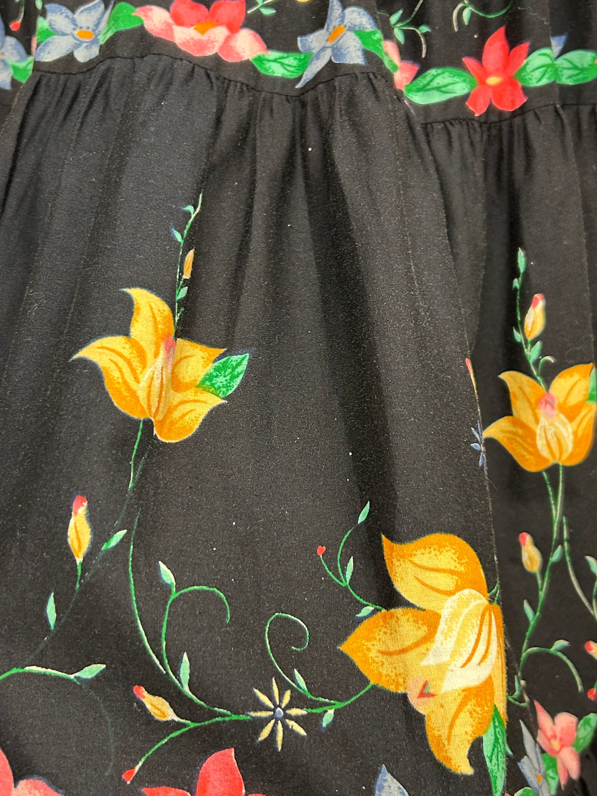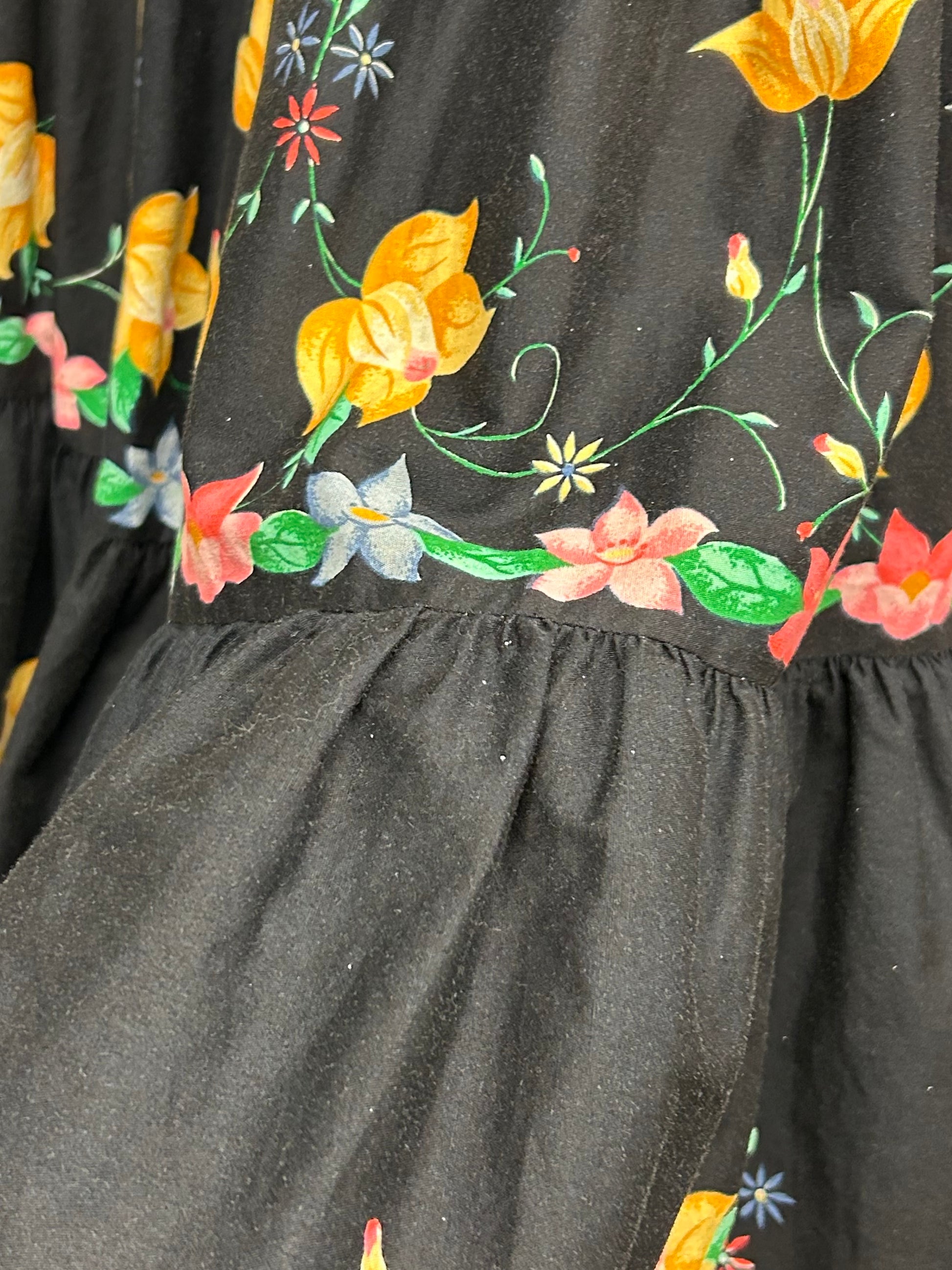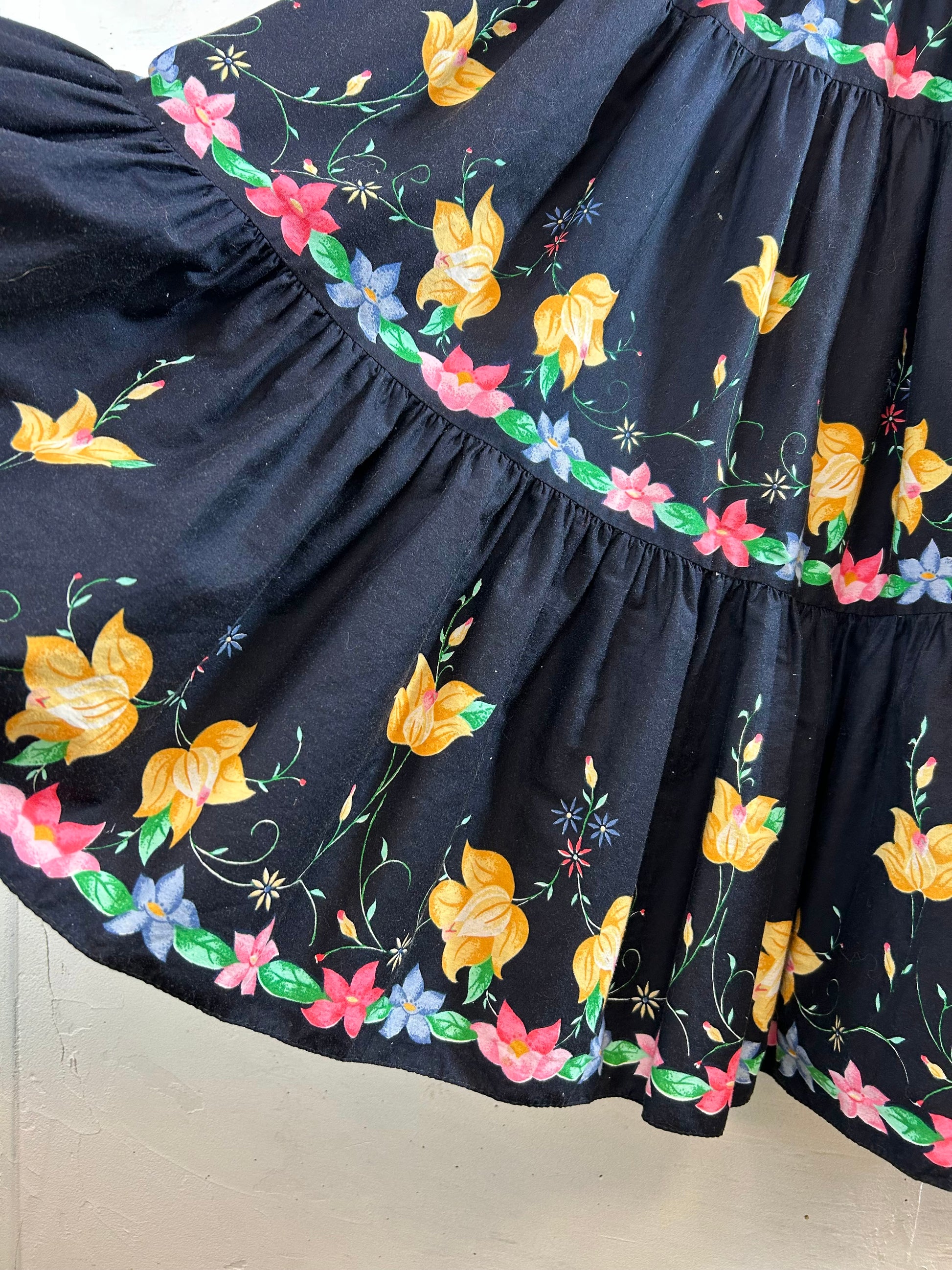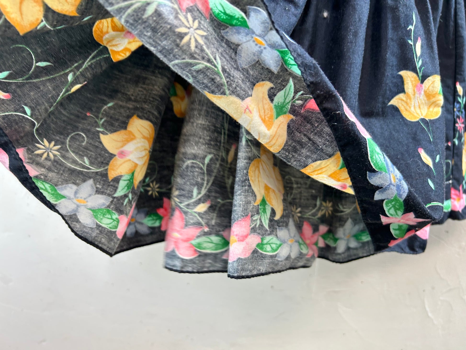 フラワーのエンドパターンを使用した3段ティアードデザイン可愛らしい一着。