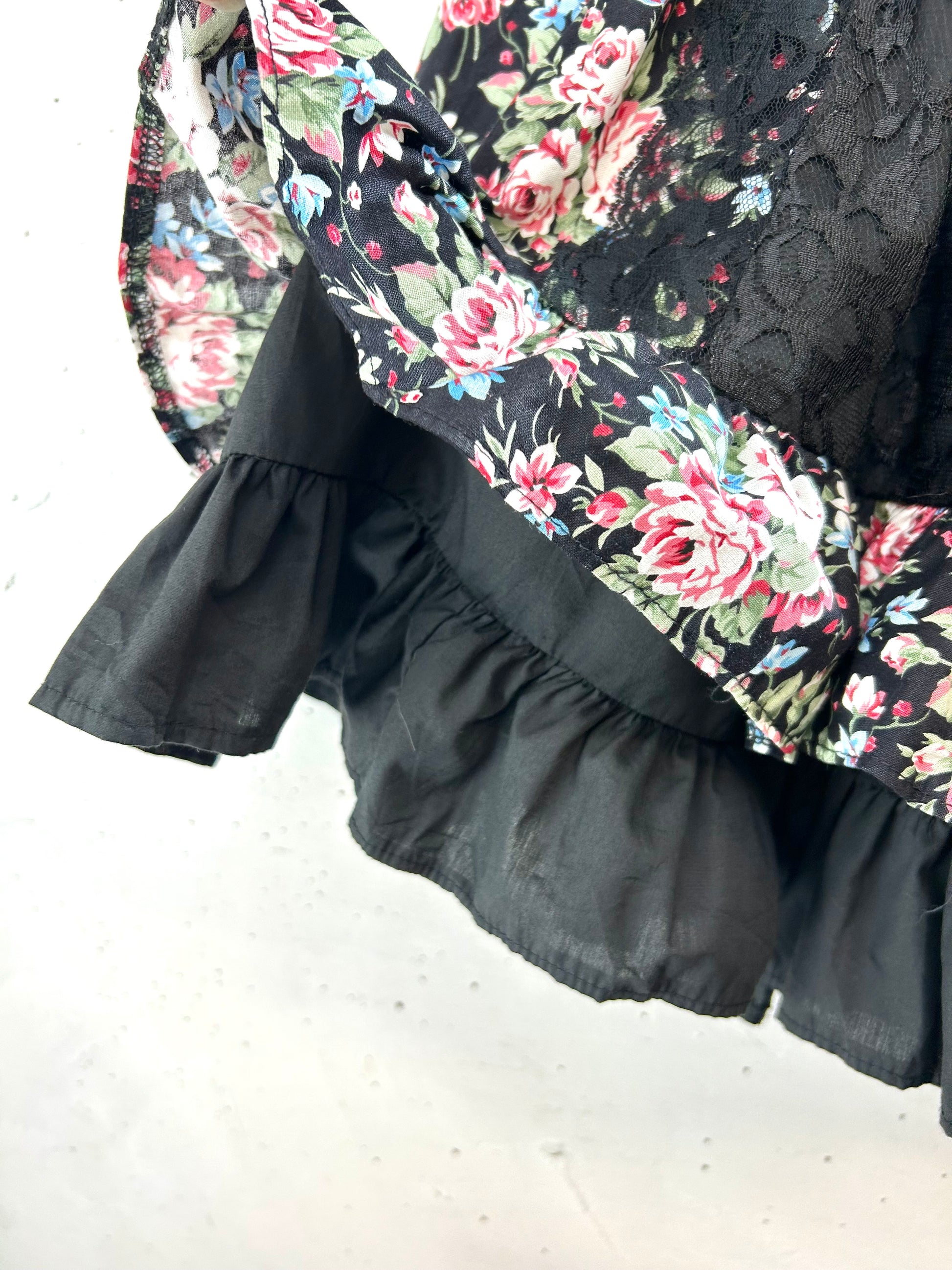 ブラックベースフラワーパターンに、繊細なブラックレースで大胆にデザインした、女性らしく魅力的な1着。
