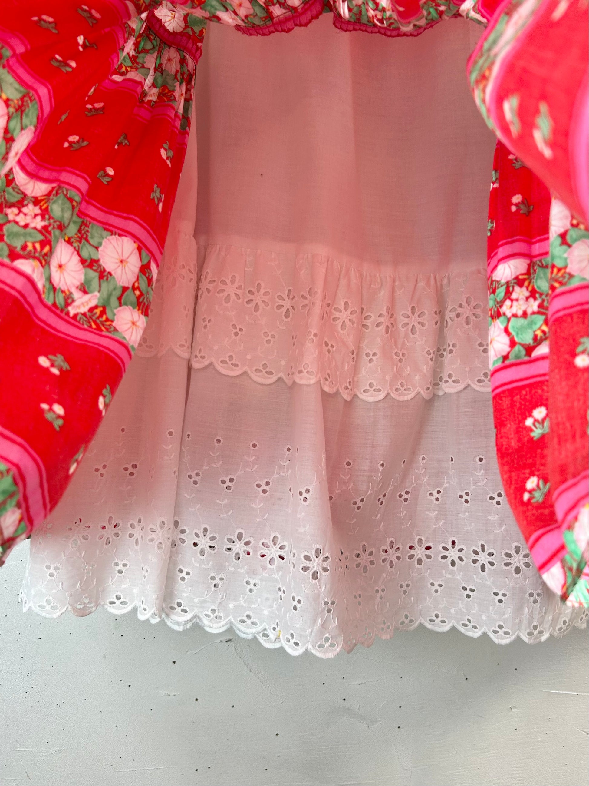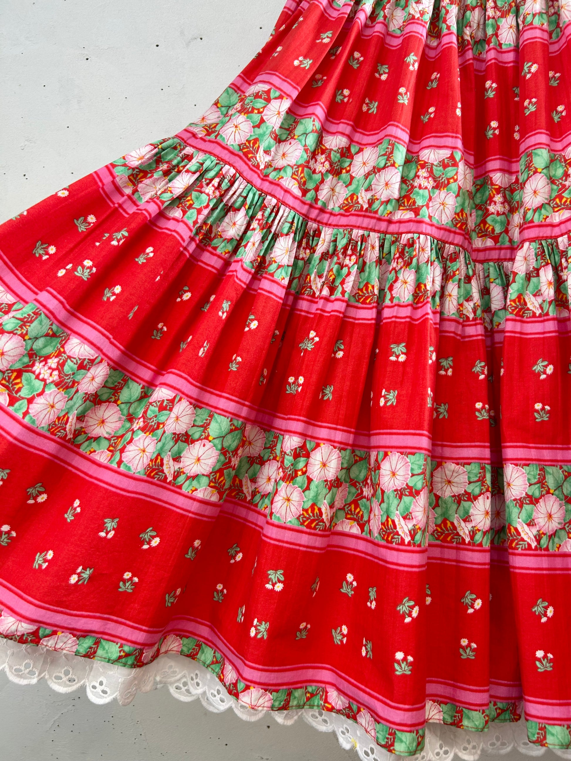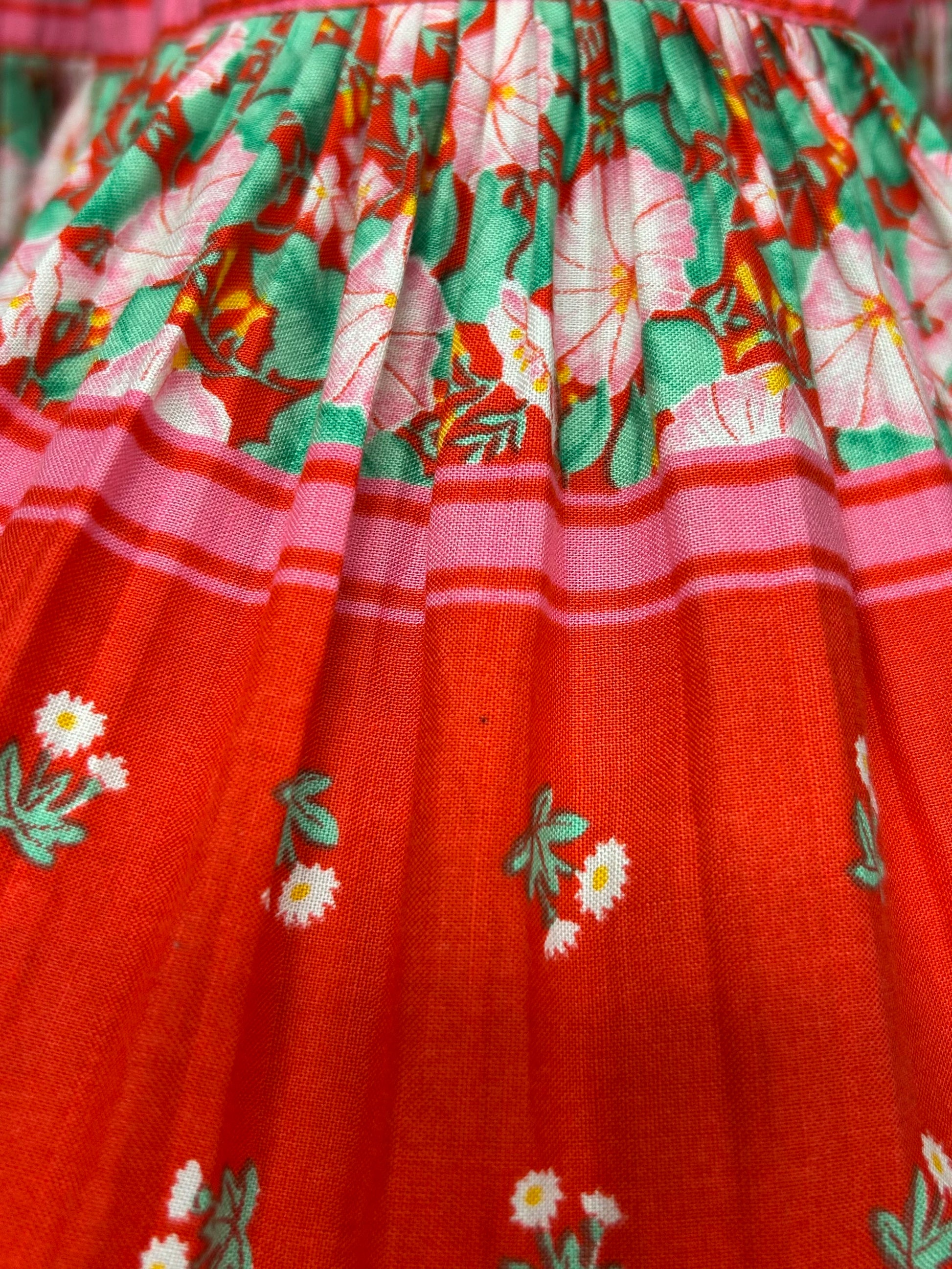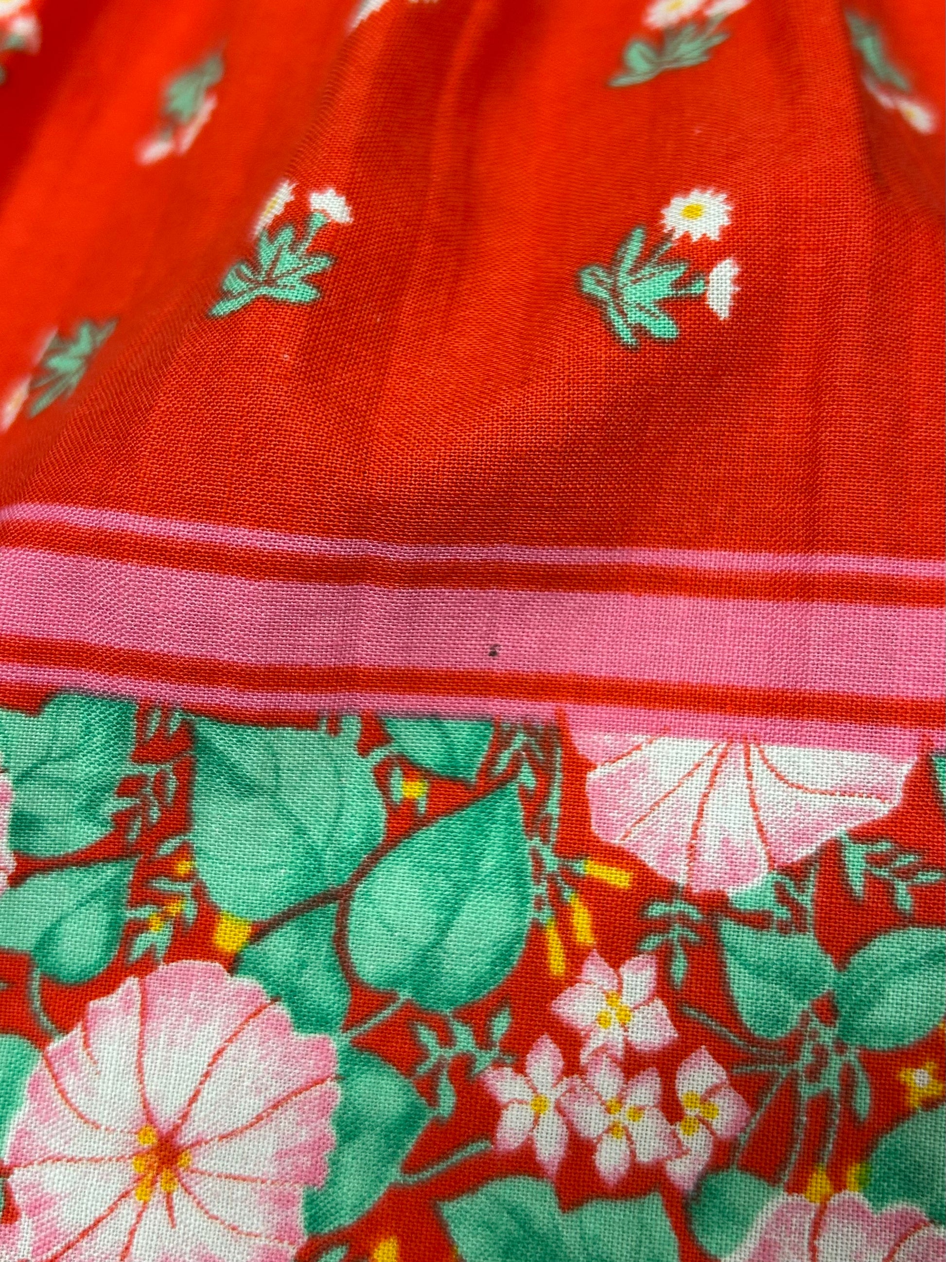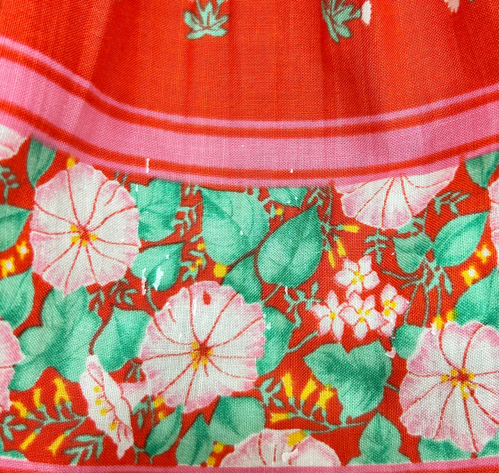 コンディション:裏地裾レースにリペア跡、所々プリント時にできた黒い点、左サイドに汚れ、右サイド裾付近にシールのような跡がございますが、ビンテージにご理解頂いている方でしたら、気にせずご着用頂ける程度かと思われます。