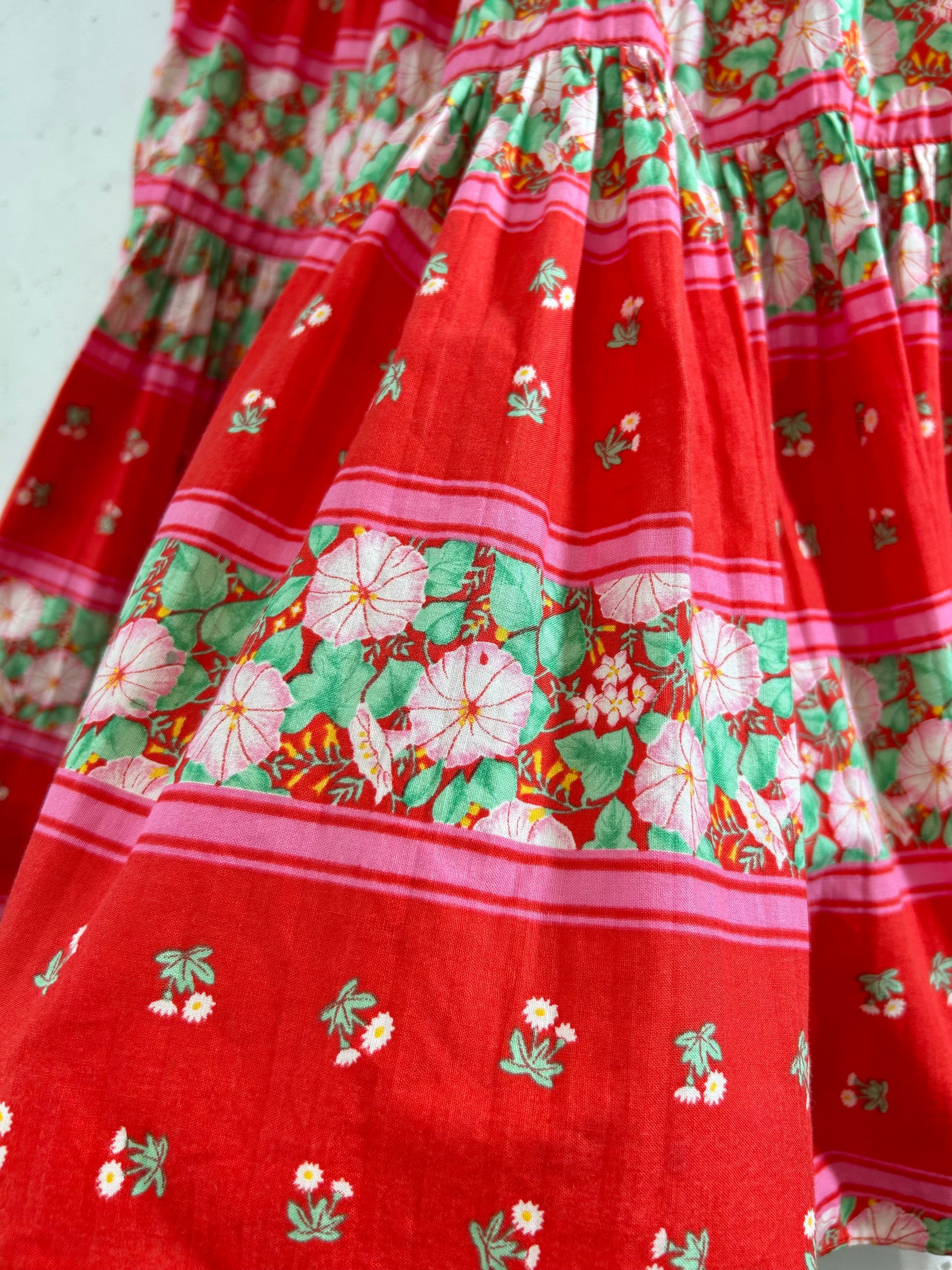 パキッと鮮やかなカラーが目を惹き、裾からチラリと見えるレースも可愛らしく、とても手の込んだ作りが魅力的です。