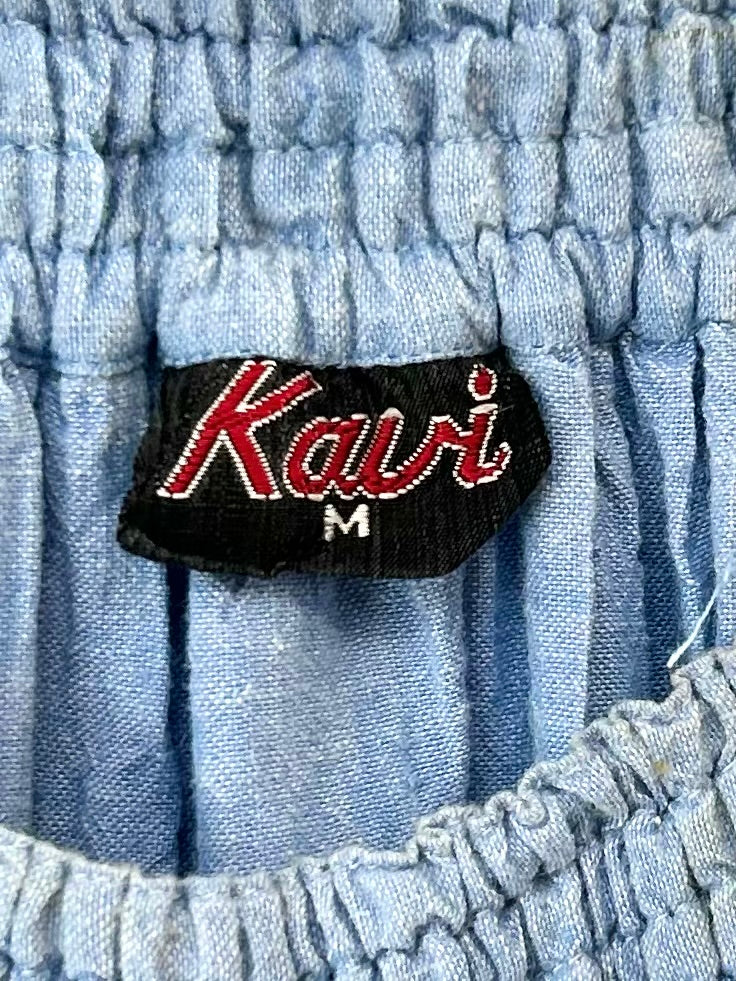 ライトブルーのシャンブレーにホワイトレースがナチュラルな1着。
