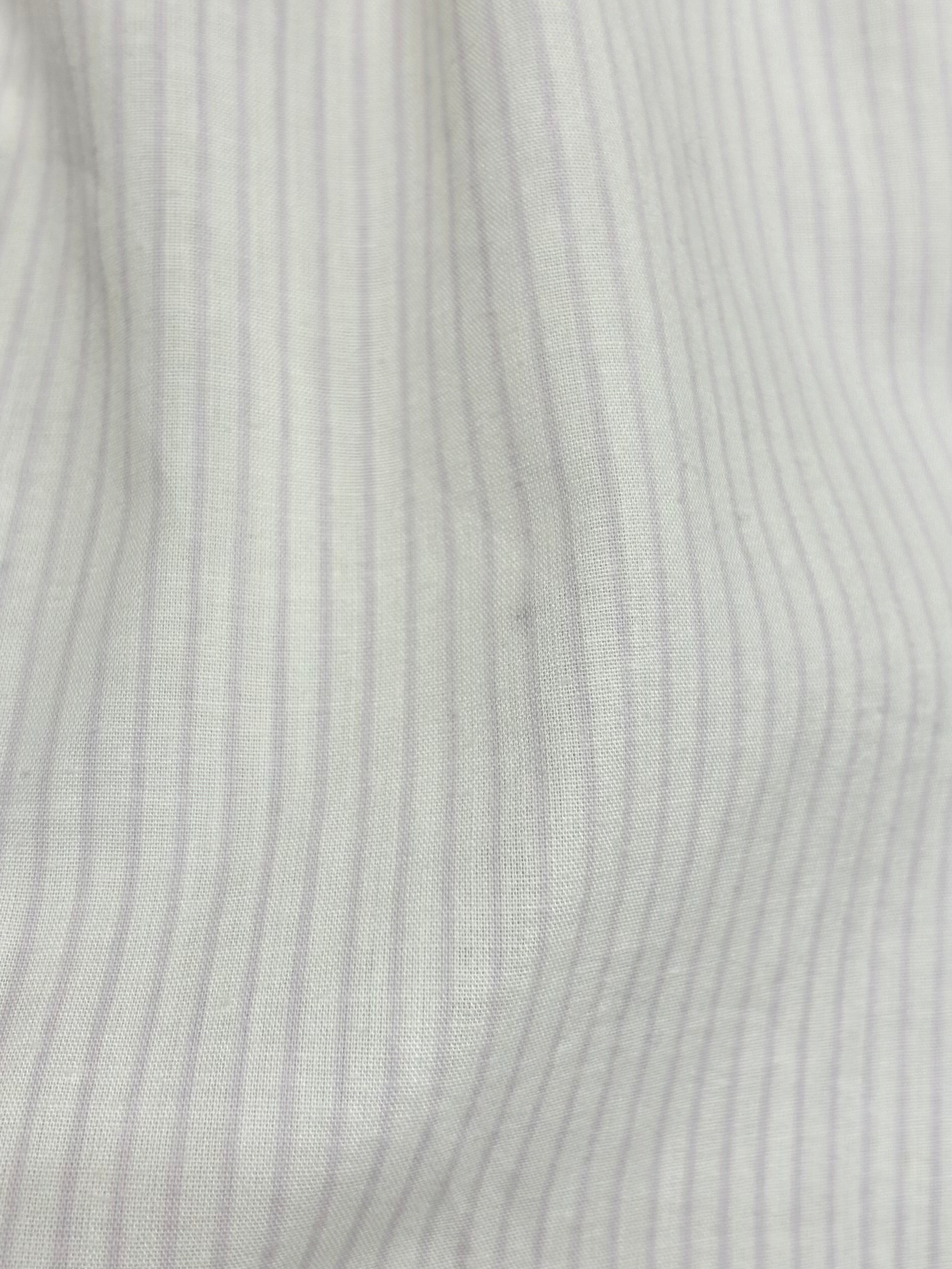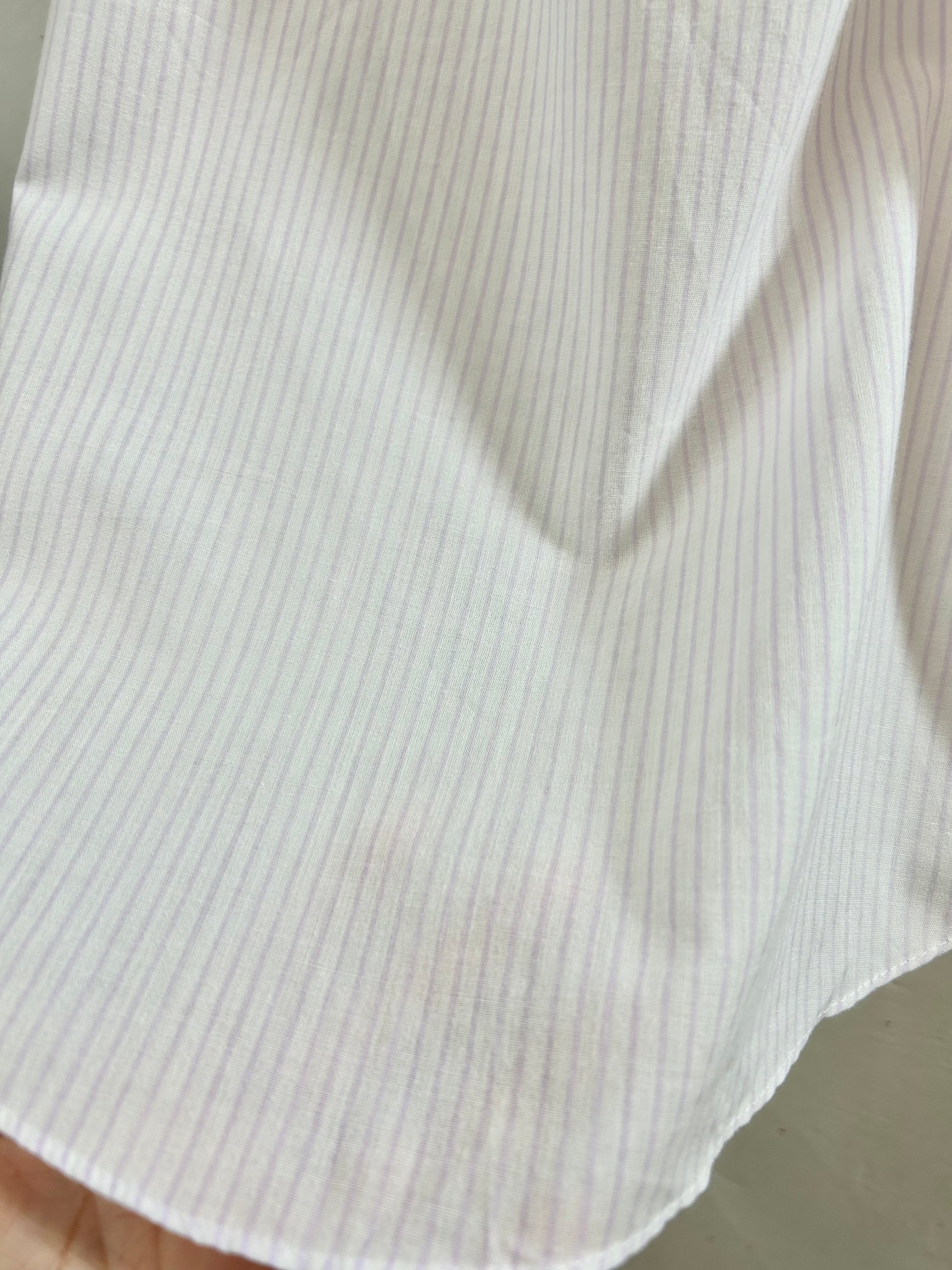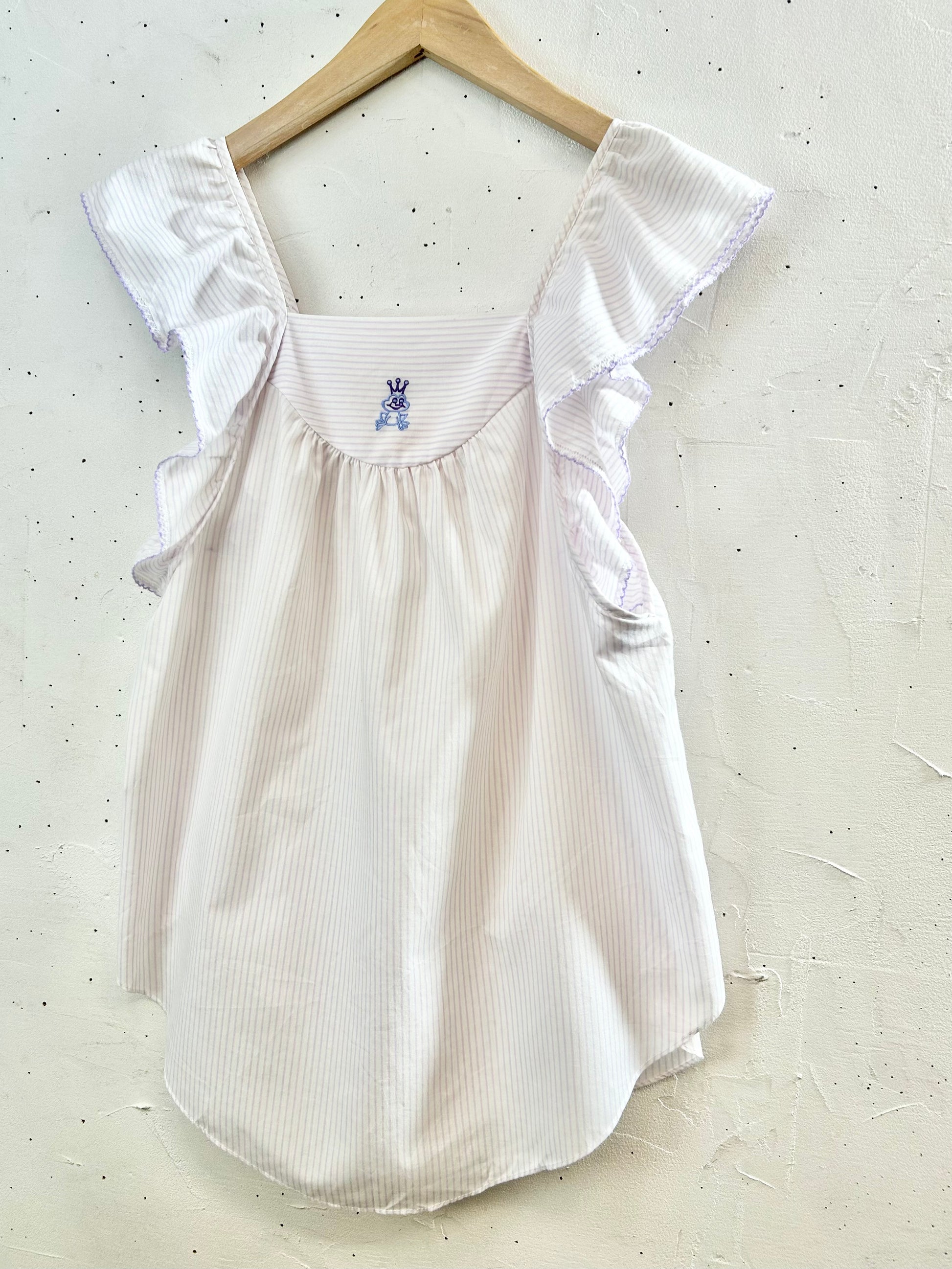 ラベンダーのストライプボディに、王冠をかぶったカエルの刺繍が可愛らしい1着。