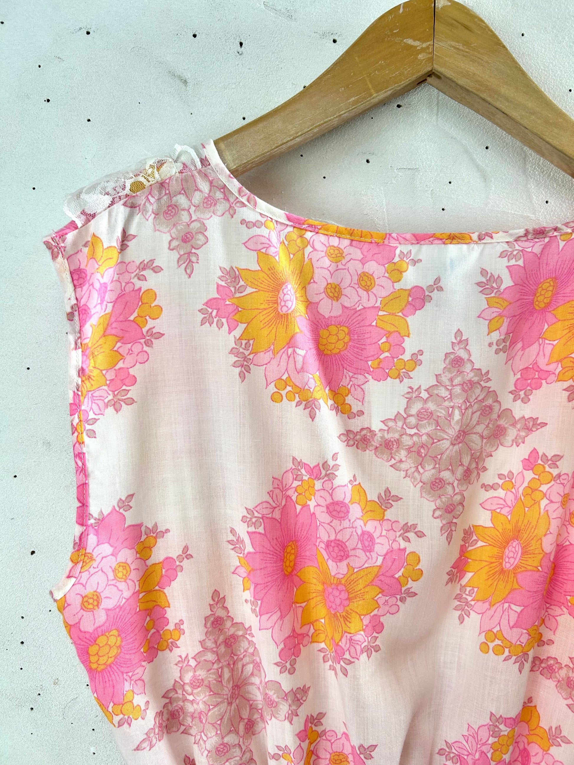 軽やかな生地感のボディにピンクフラワーブーケが映えるアイテム。