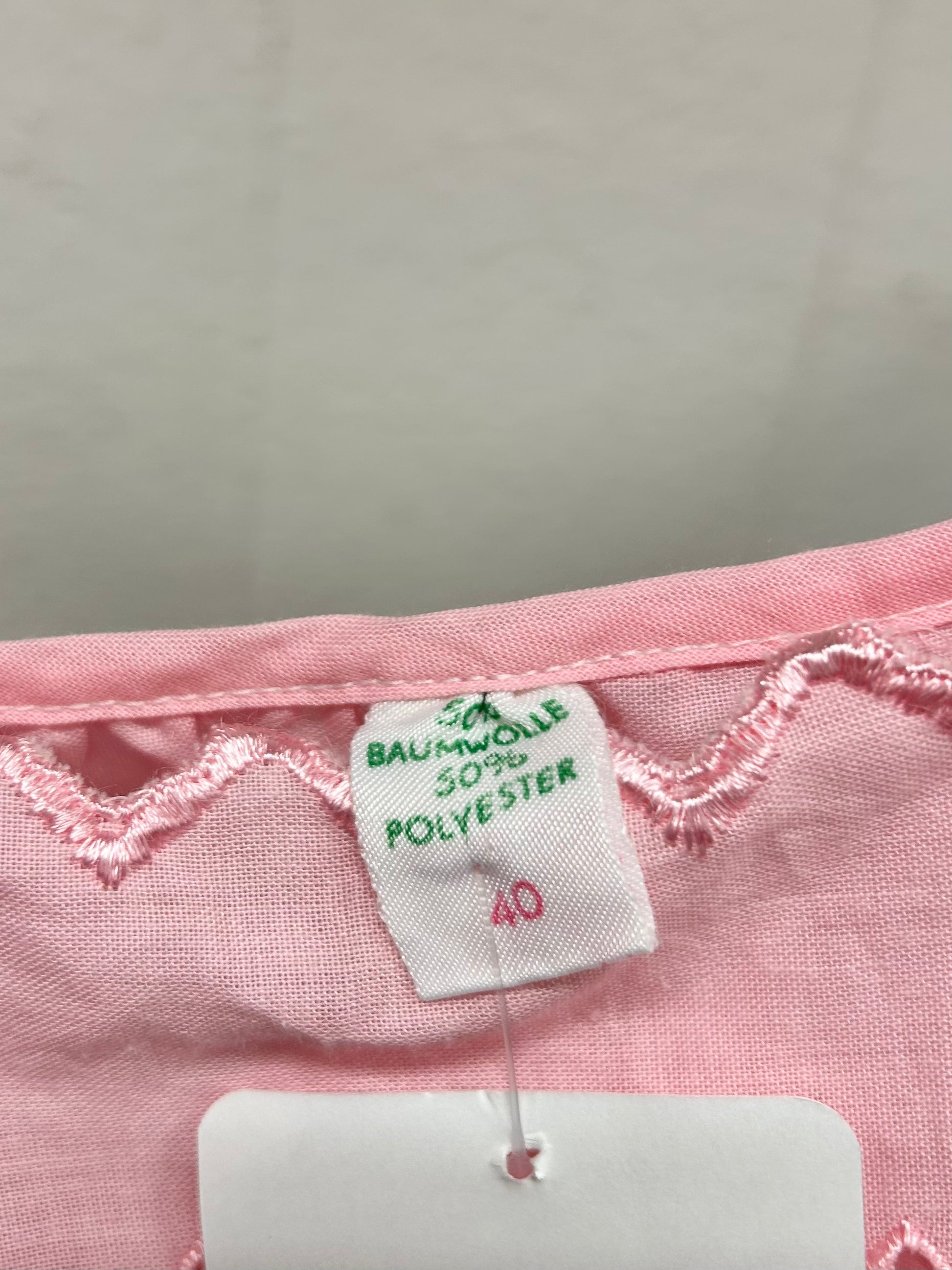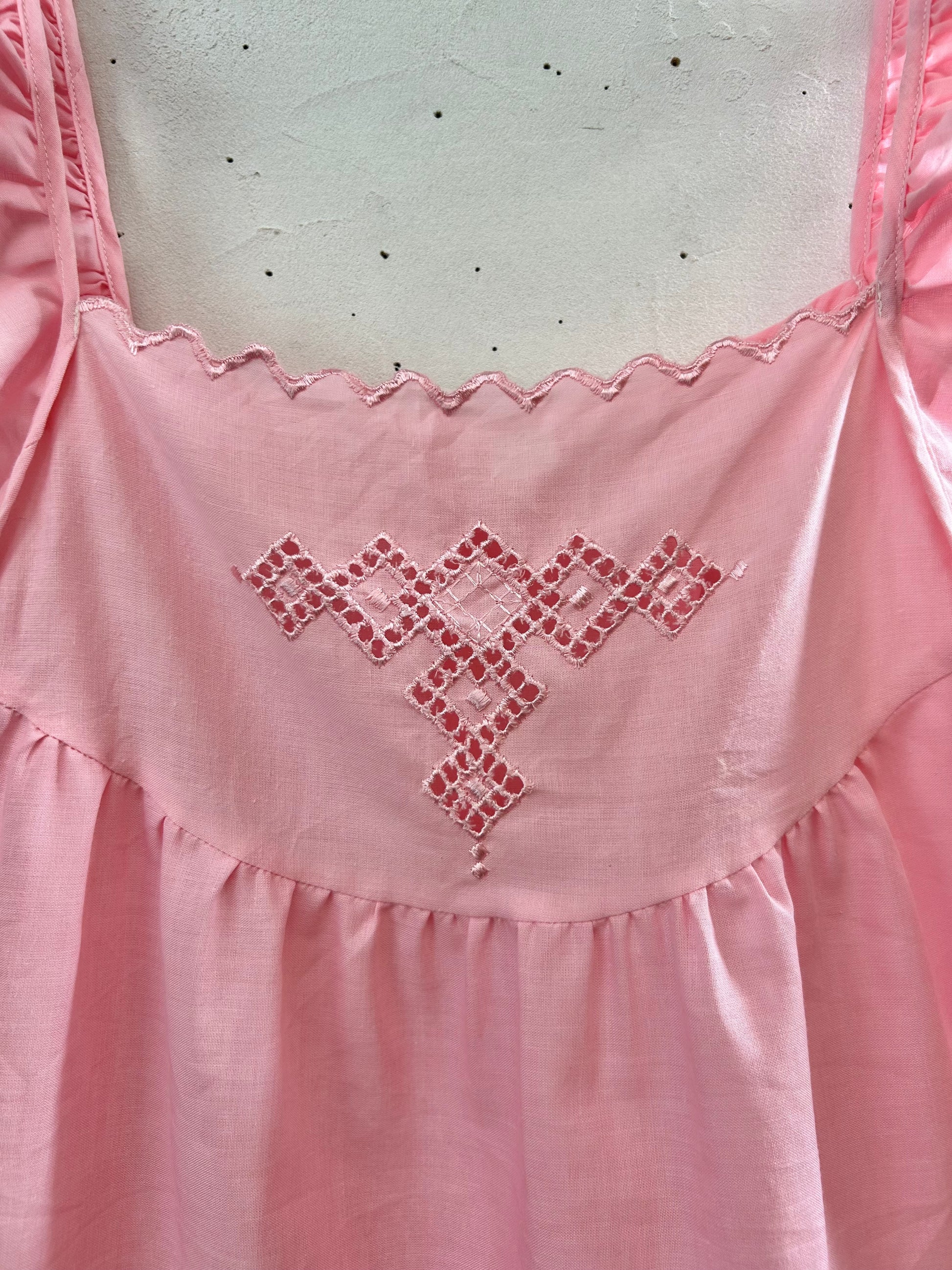 ピンクカラーと透かし刺繍やフリルがキュートな1着。