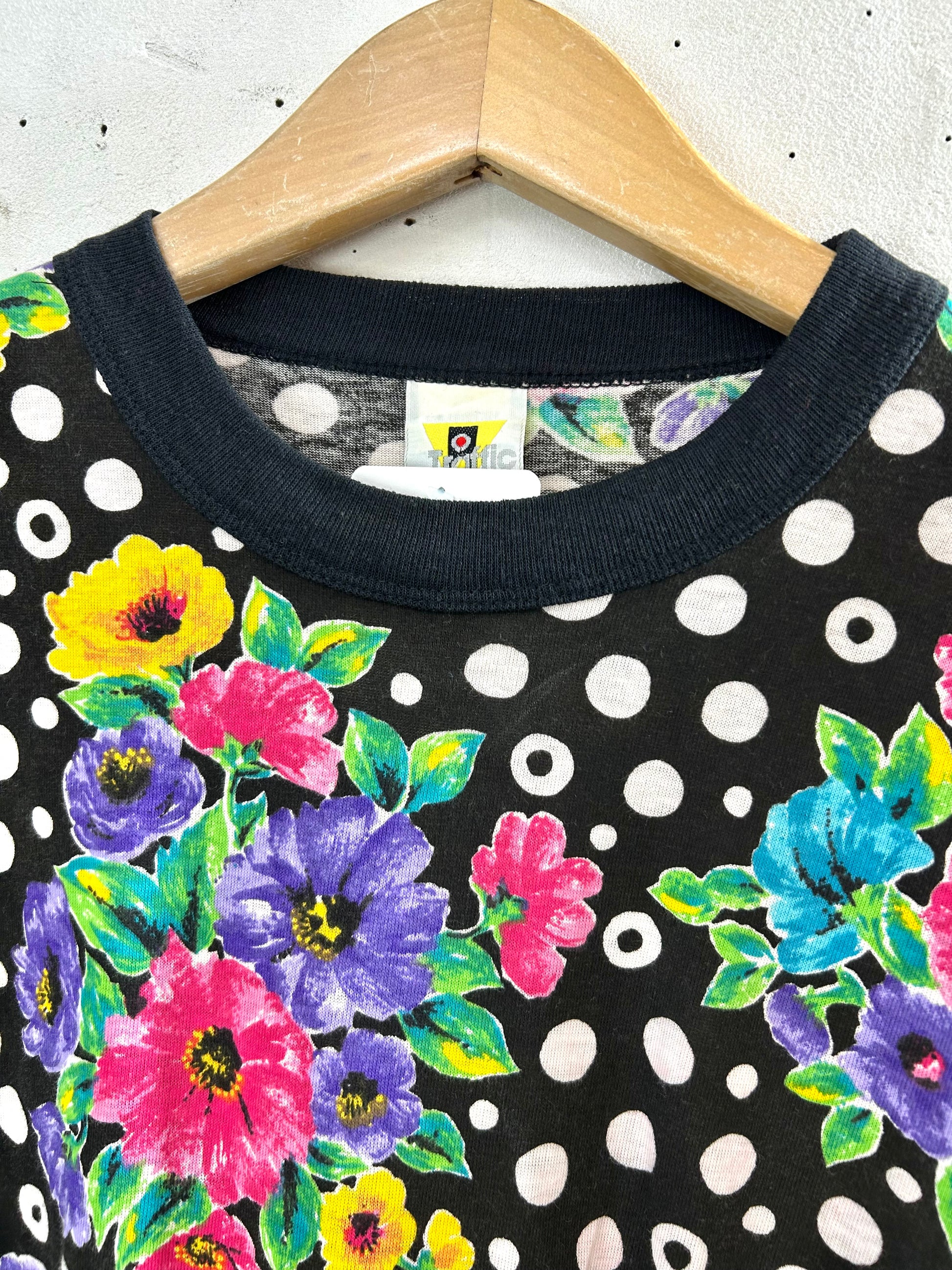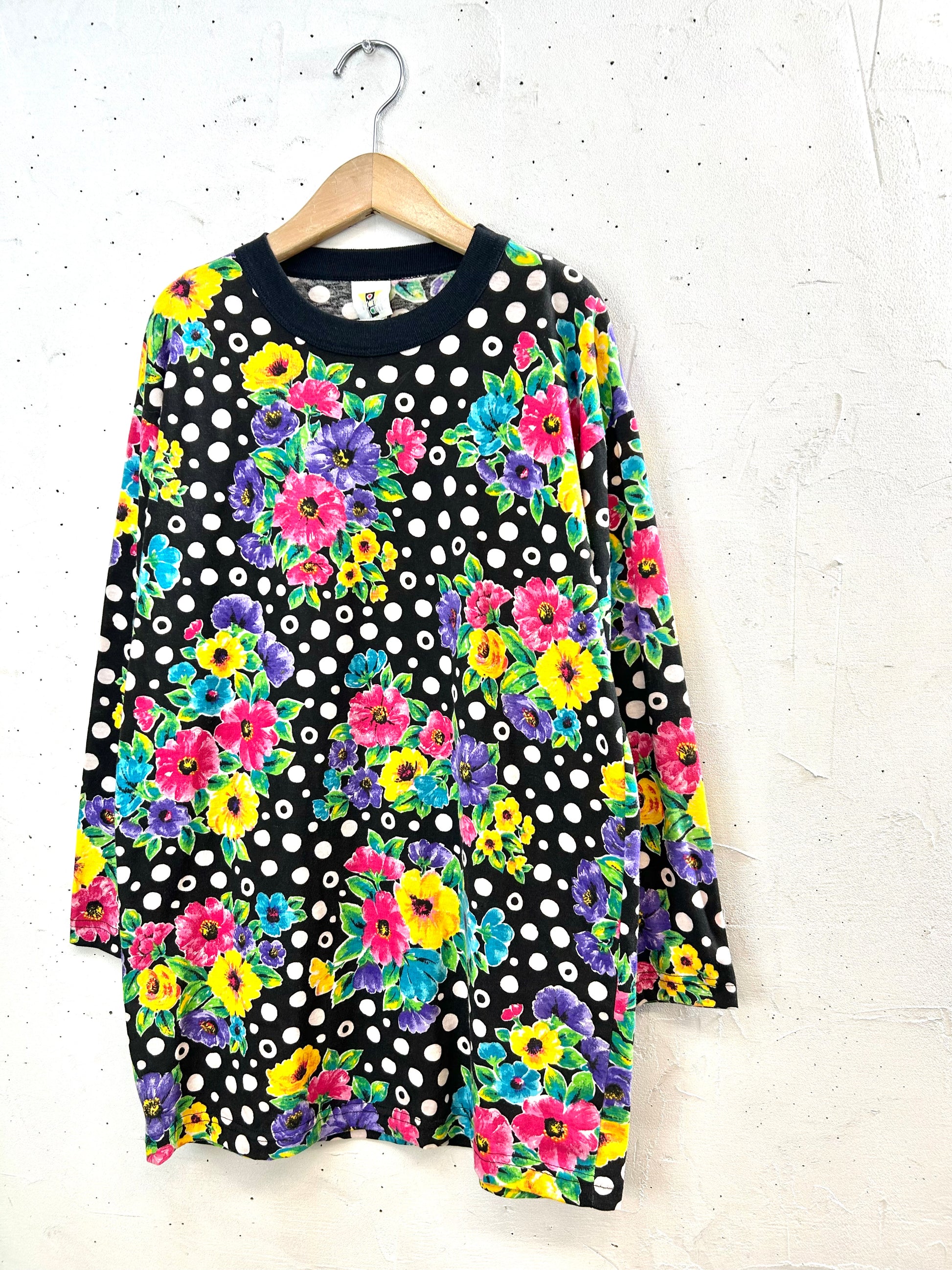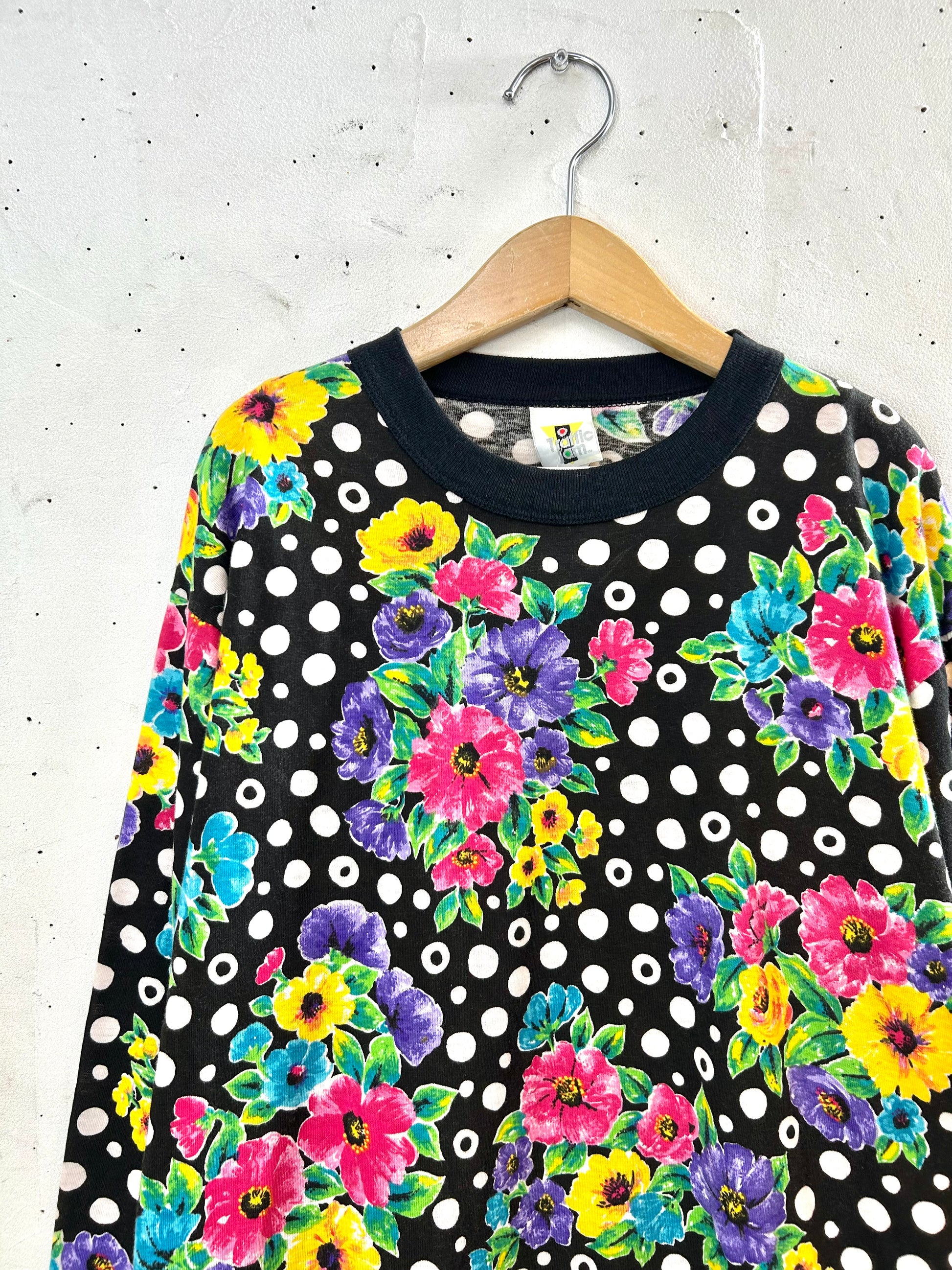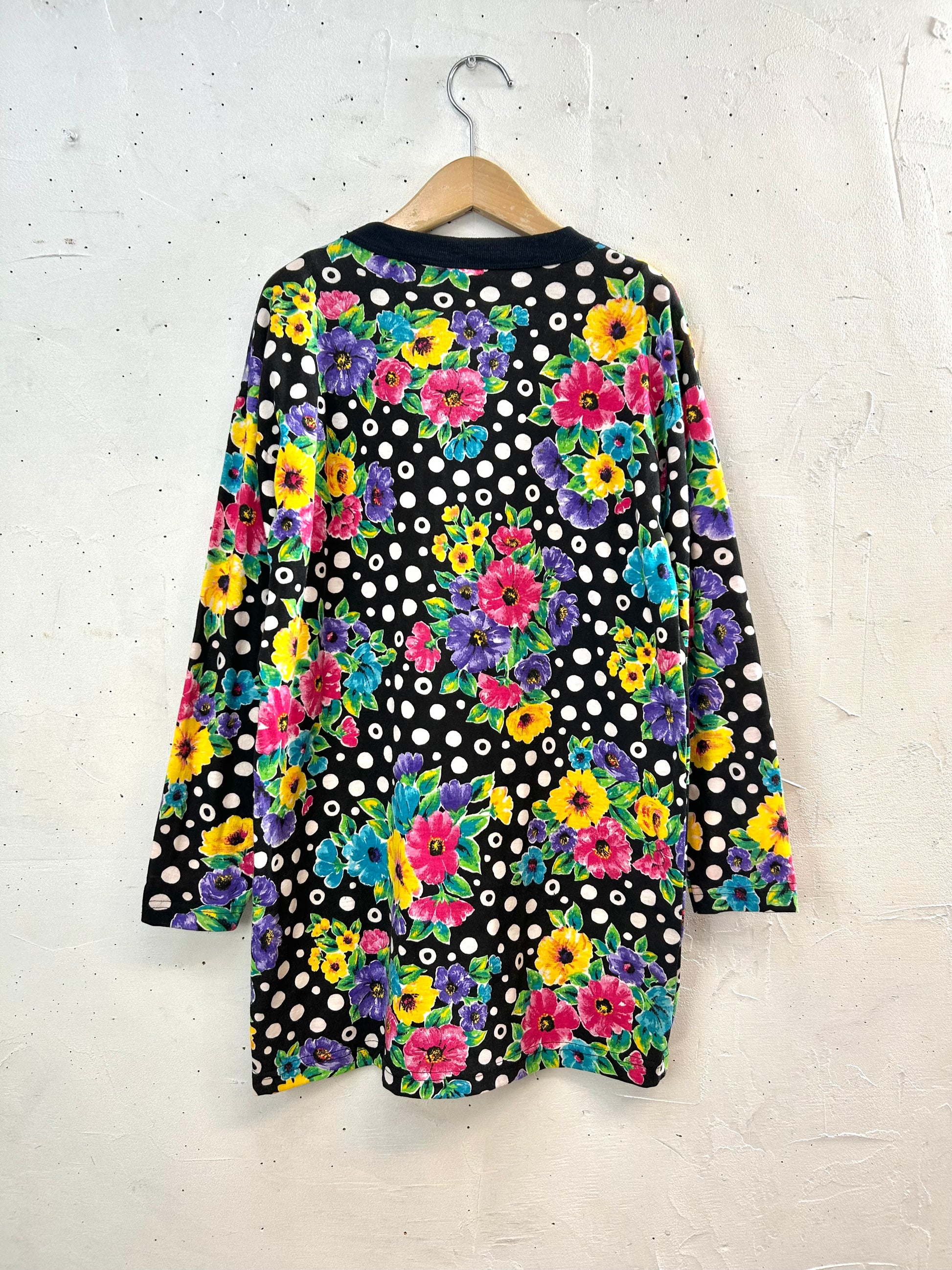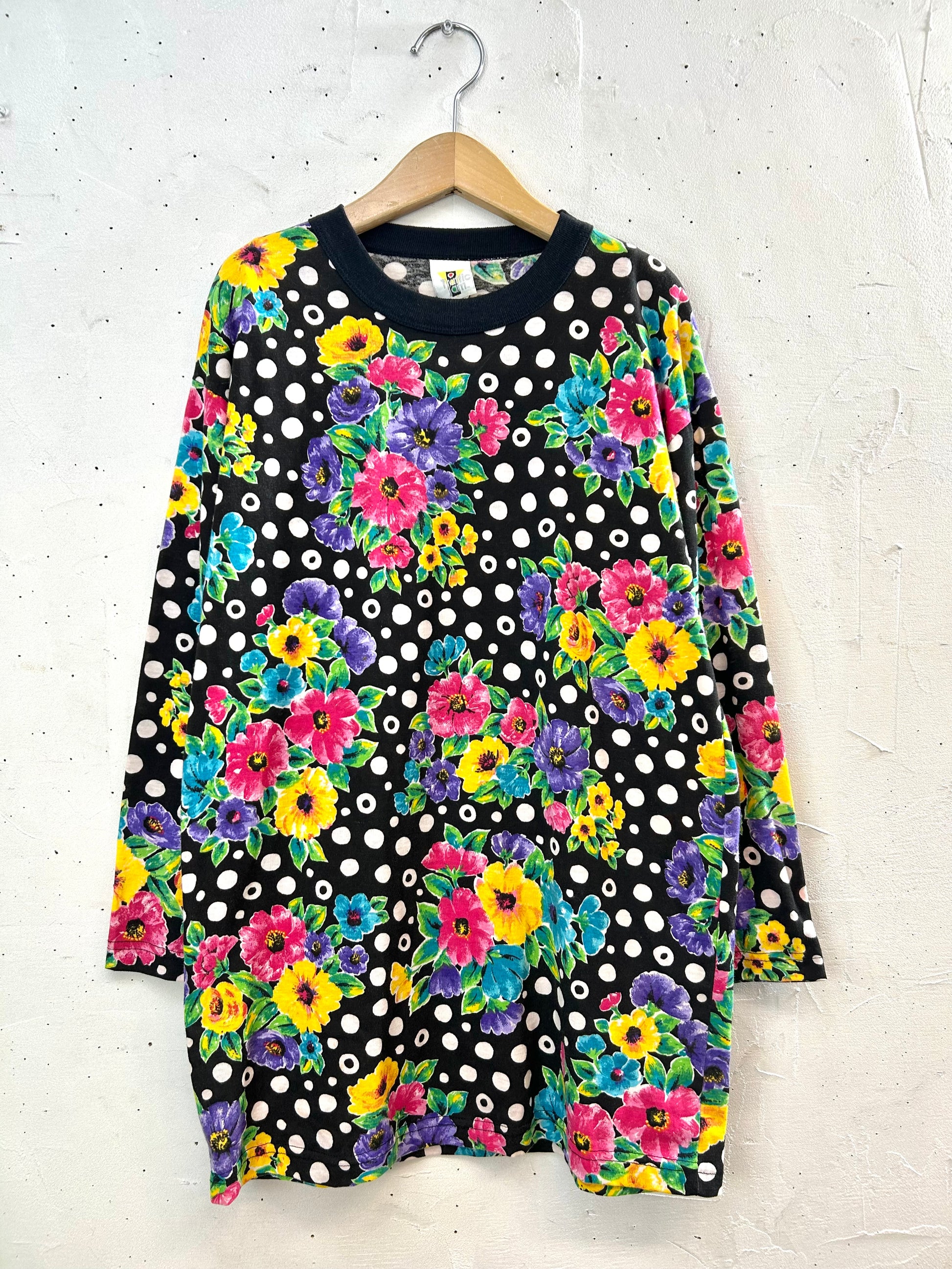ブラックドットボディーにビビットカラーのフラワーパターンがこれからの季節にぴったりの一着。