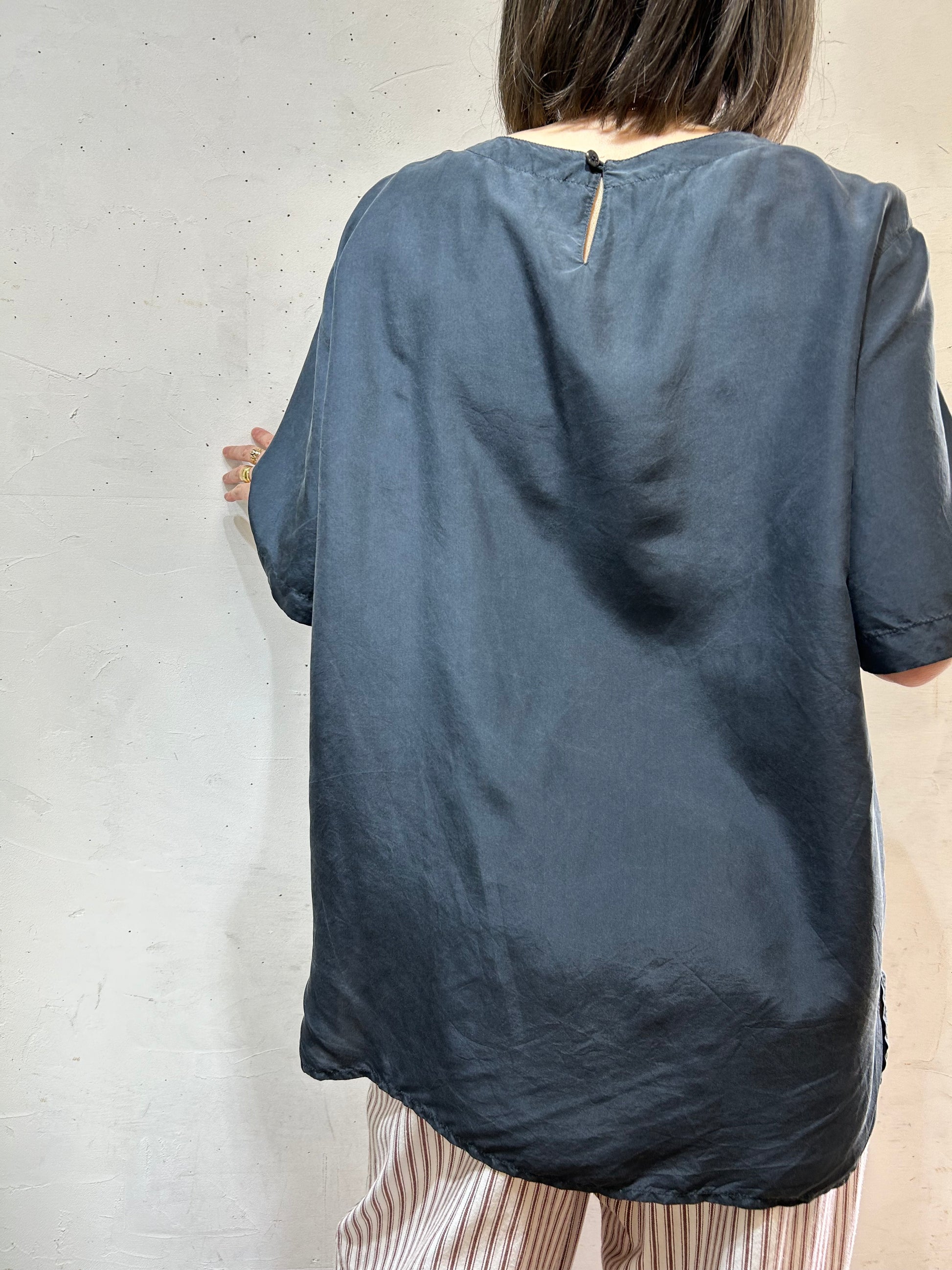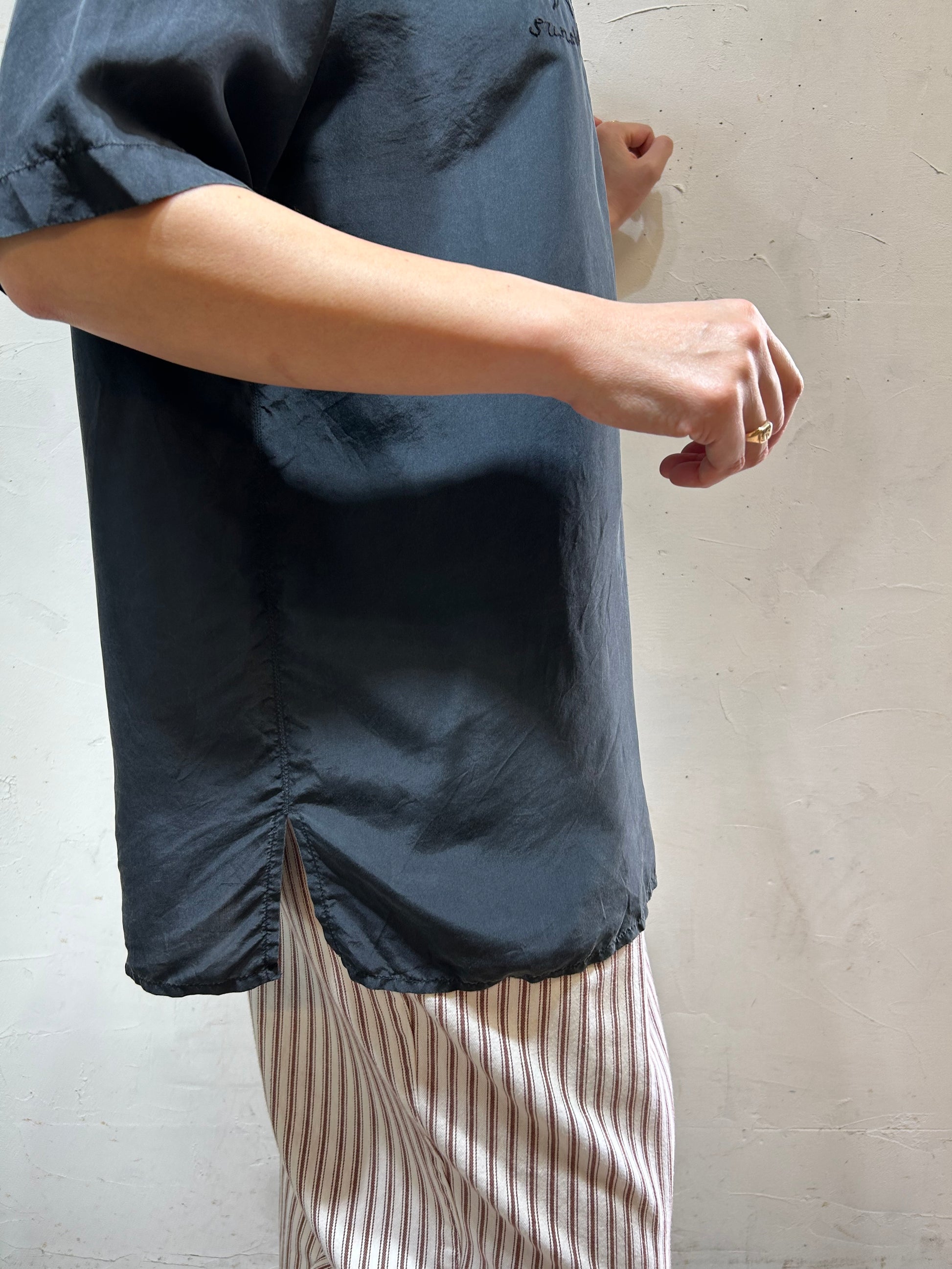 ゆったりとしたラフなシルエットで着心地もよく、シルク素材ならではなのマットな質感で品もあり、様々なアイテムと合わせてお楽しみ頂けます。