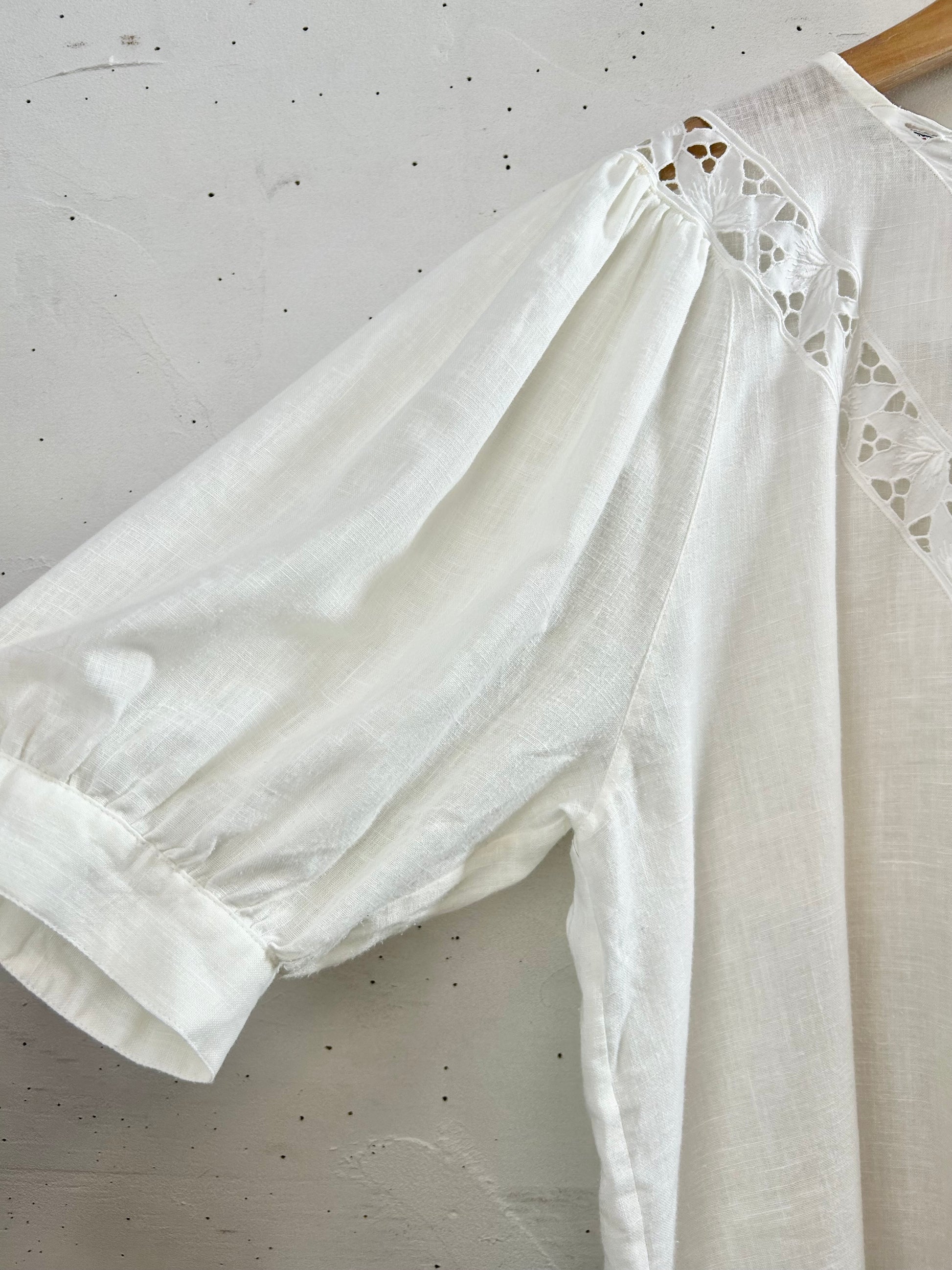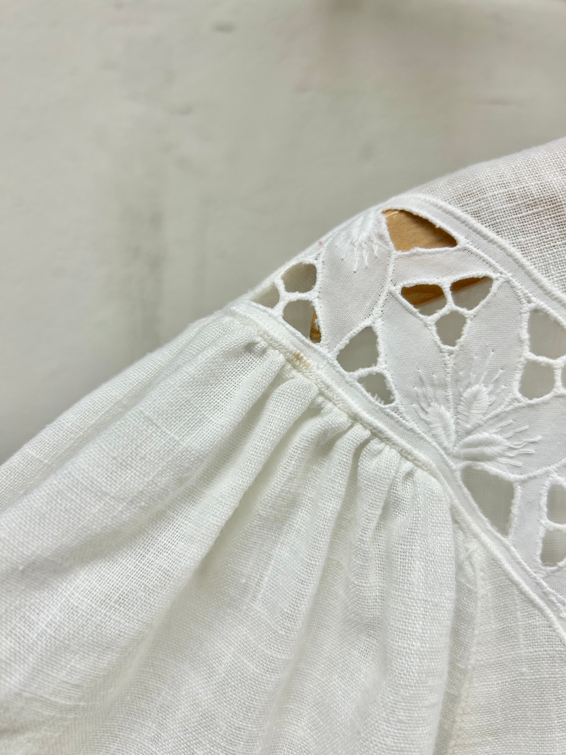 V字に施されたカットワークとボリューミーな袖のシルエットが可愛いらしい一着。