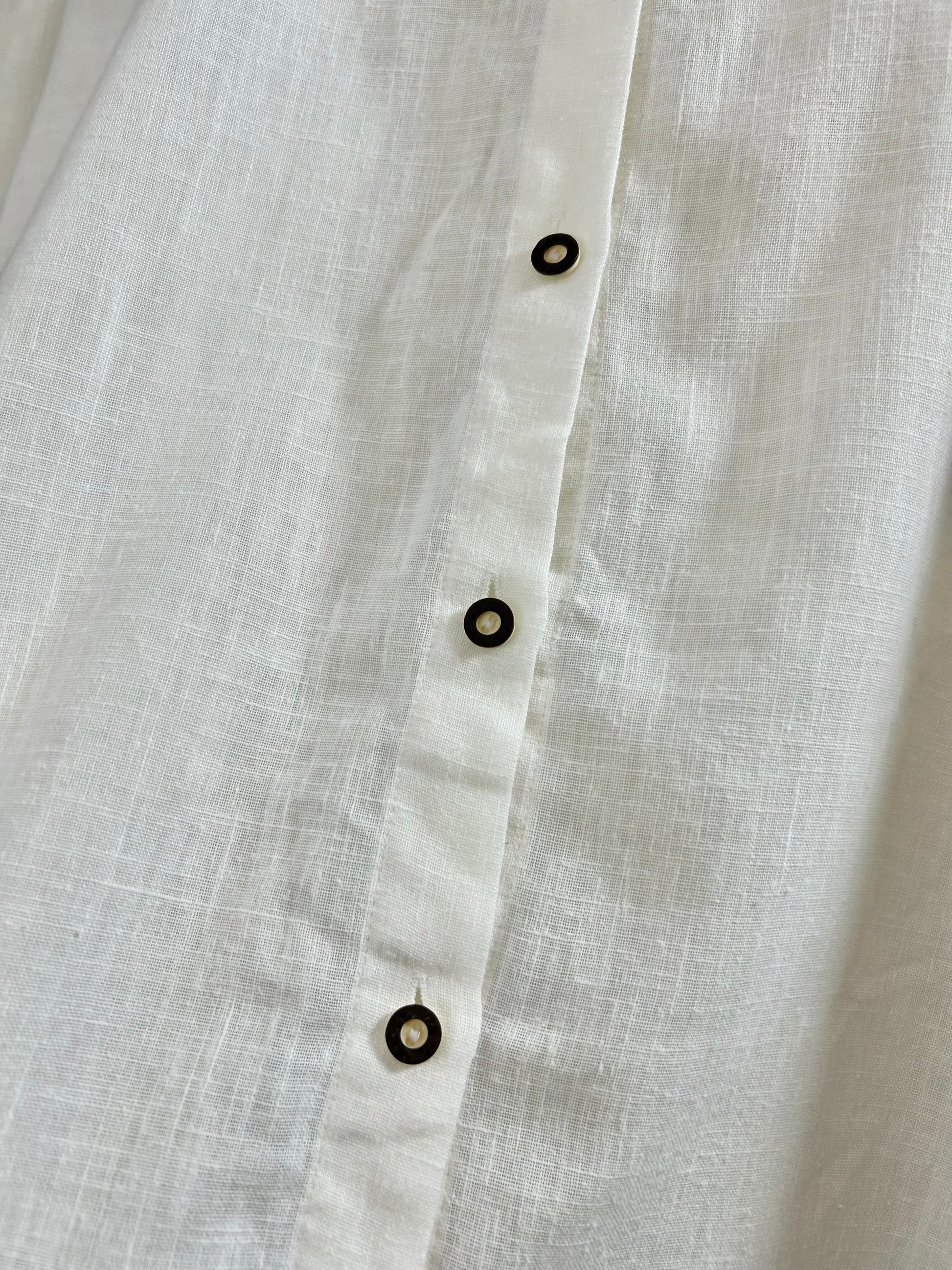 バックボタンでどこから見ても抜かりなく、コットン混紡の柔らかく肌馴染みの良い生地感で着心地もとても良いです。
