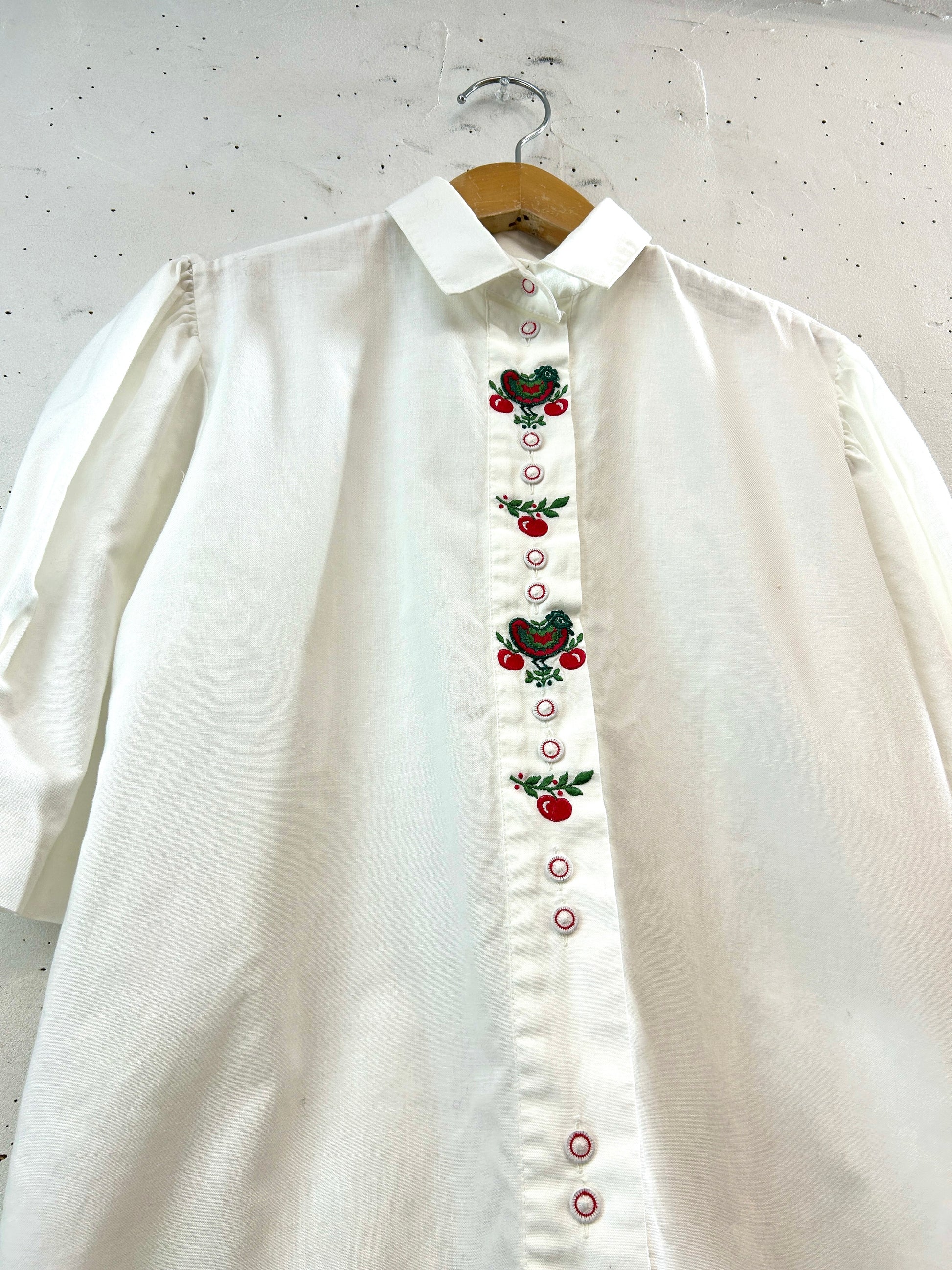 こちらのブラウスは、ホワイトボディーのフロントに鳥とフルーツの刺繍が施され、とても存在感のある素晴らしい一着。