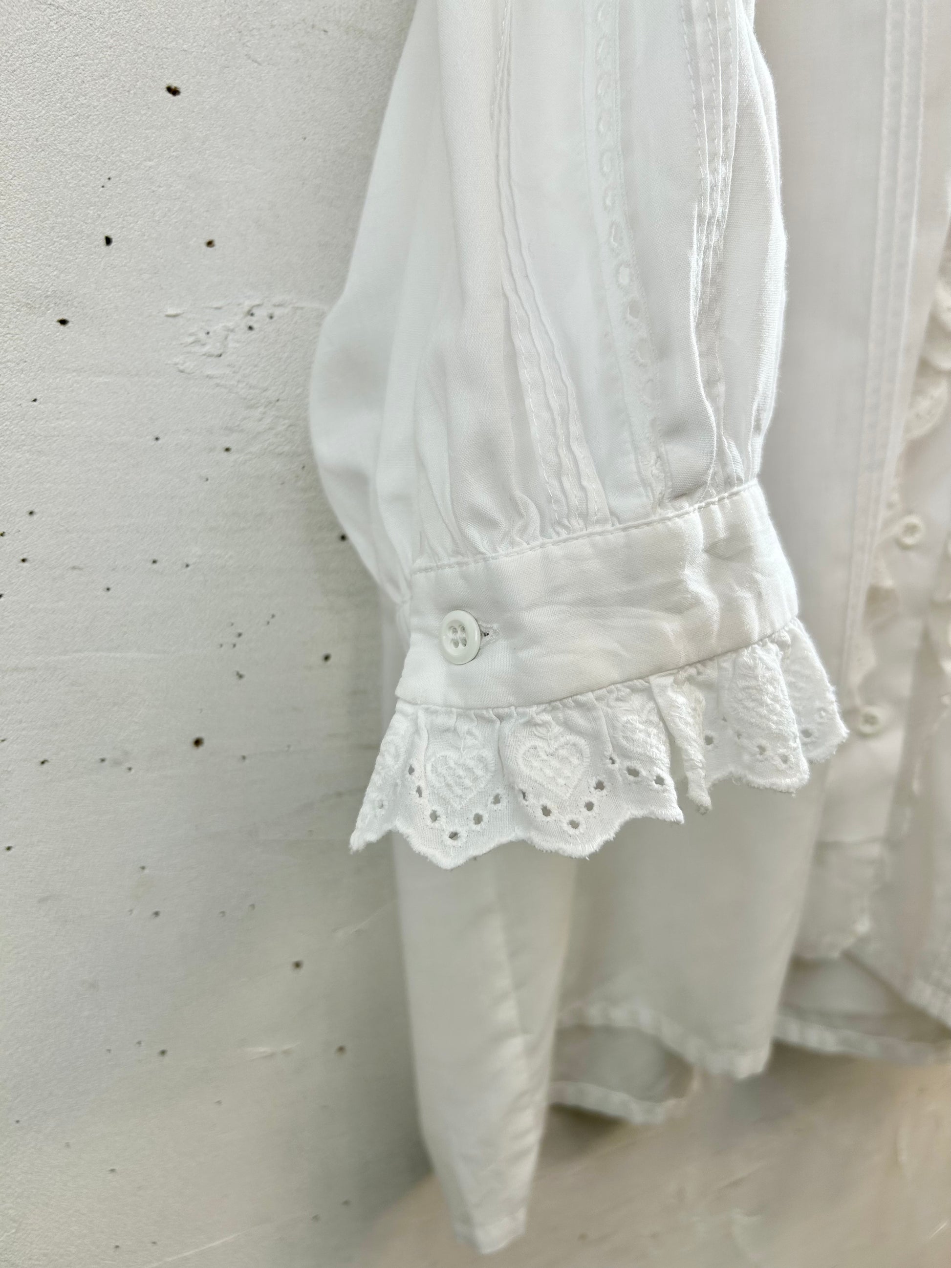 ハートのカットワークレースをたっぷりと施した可愛らしい一着。