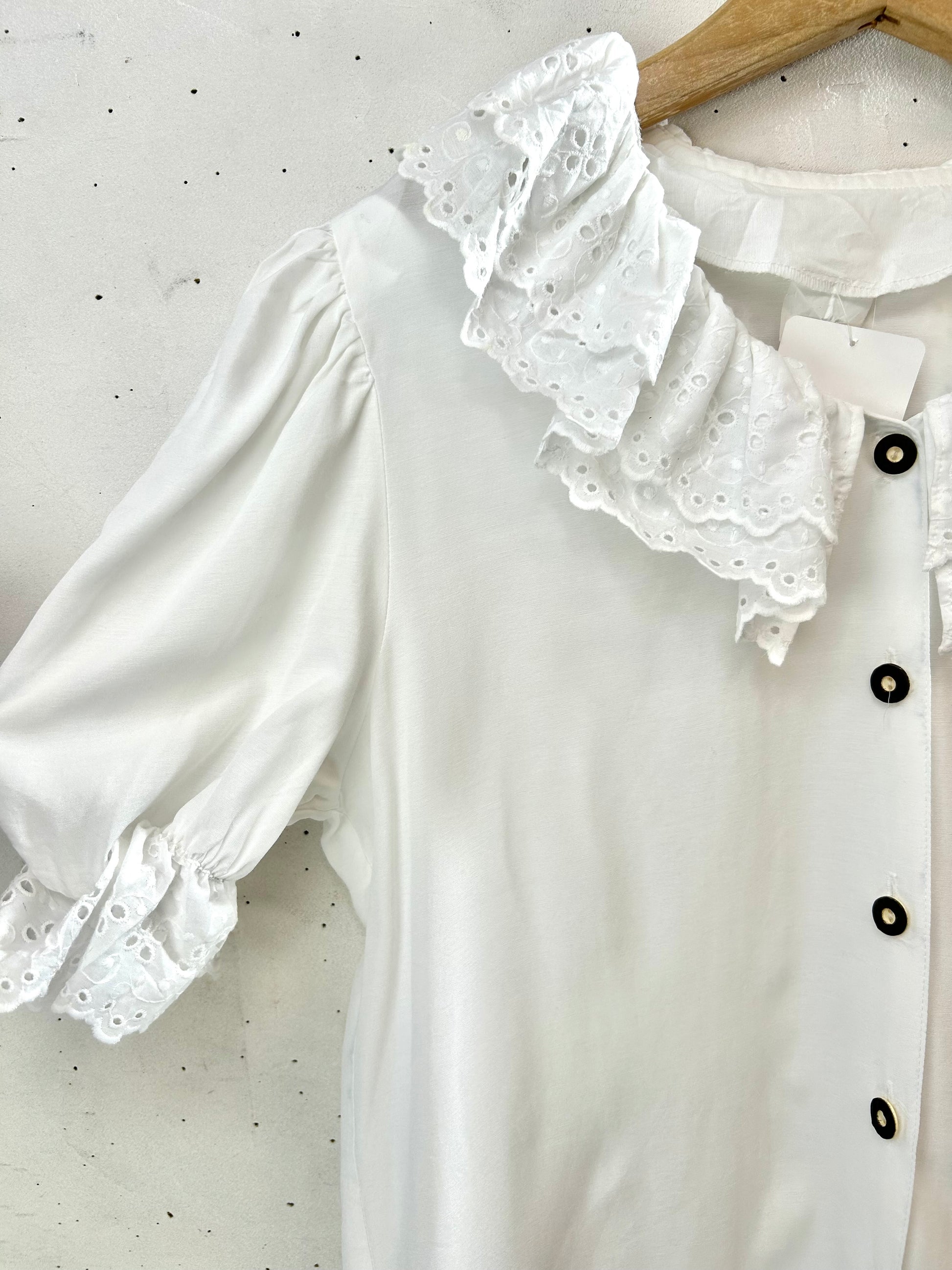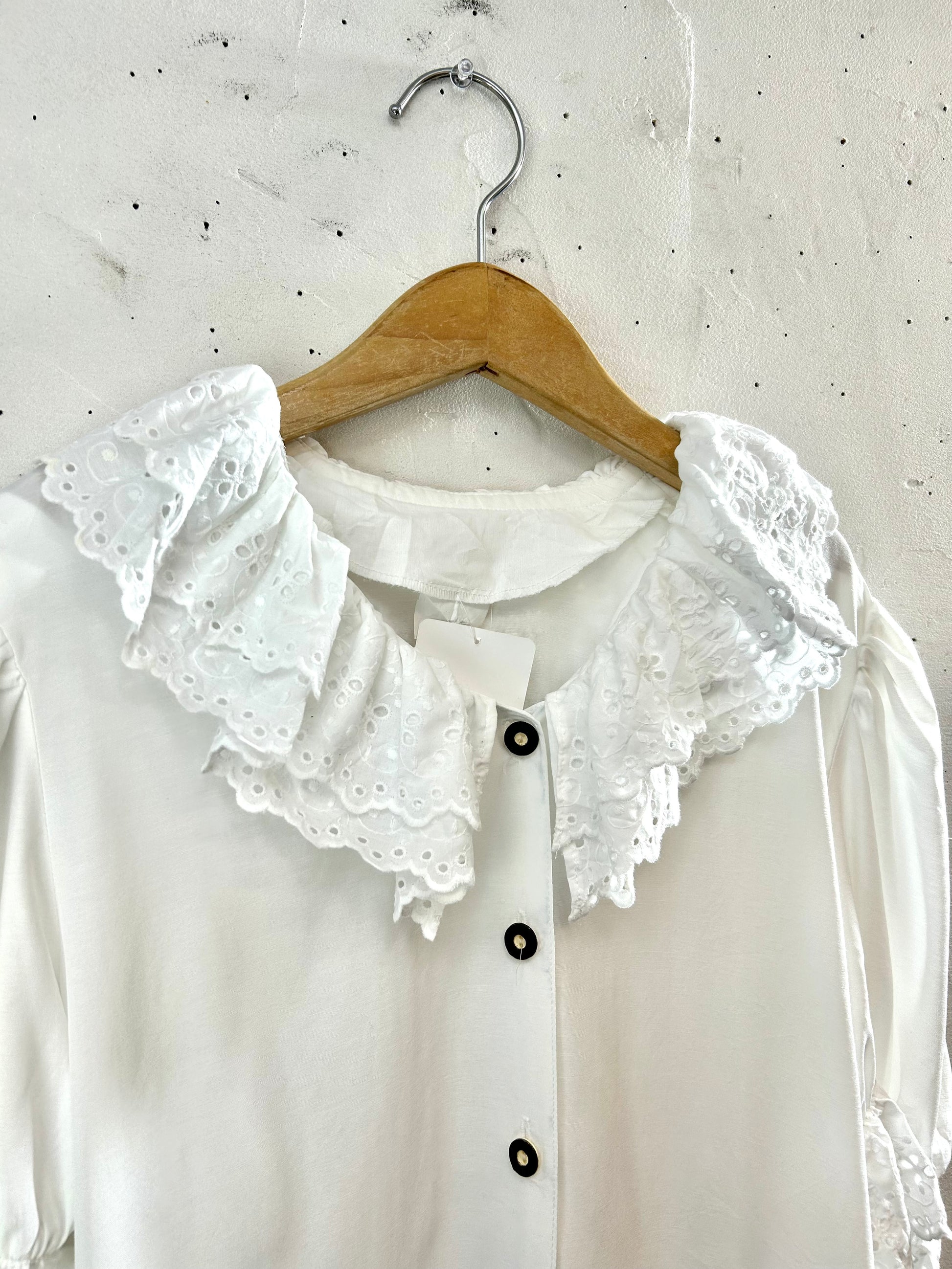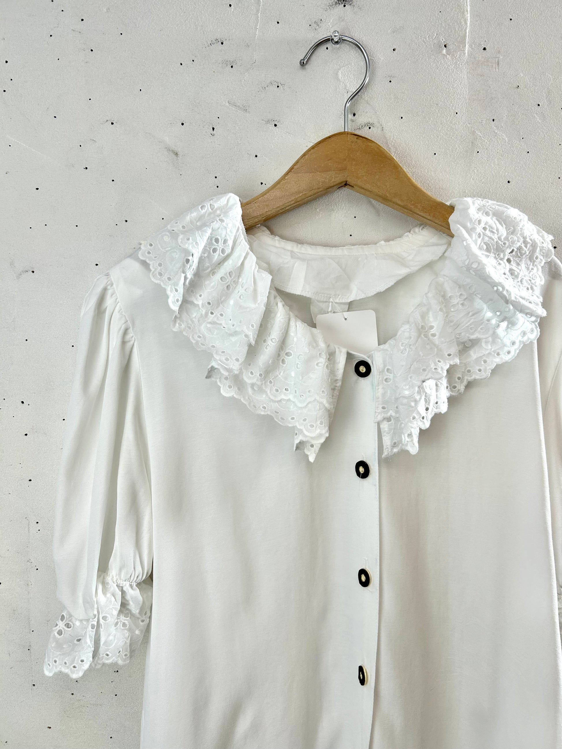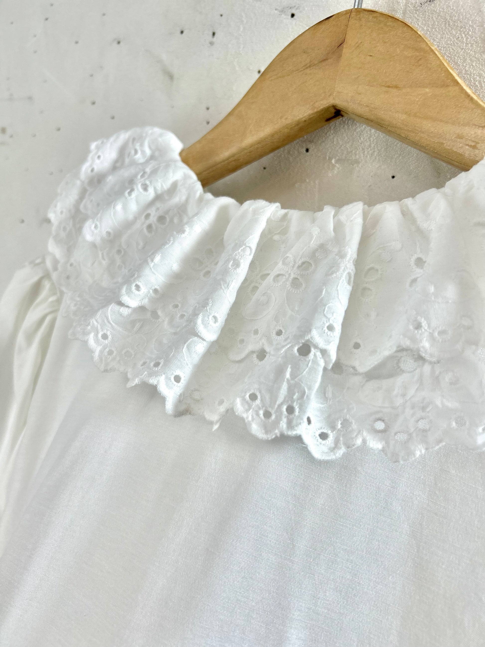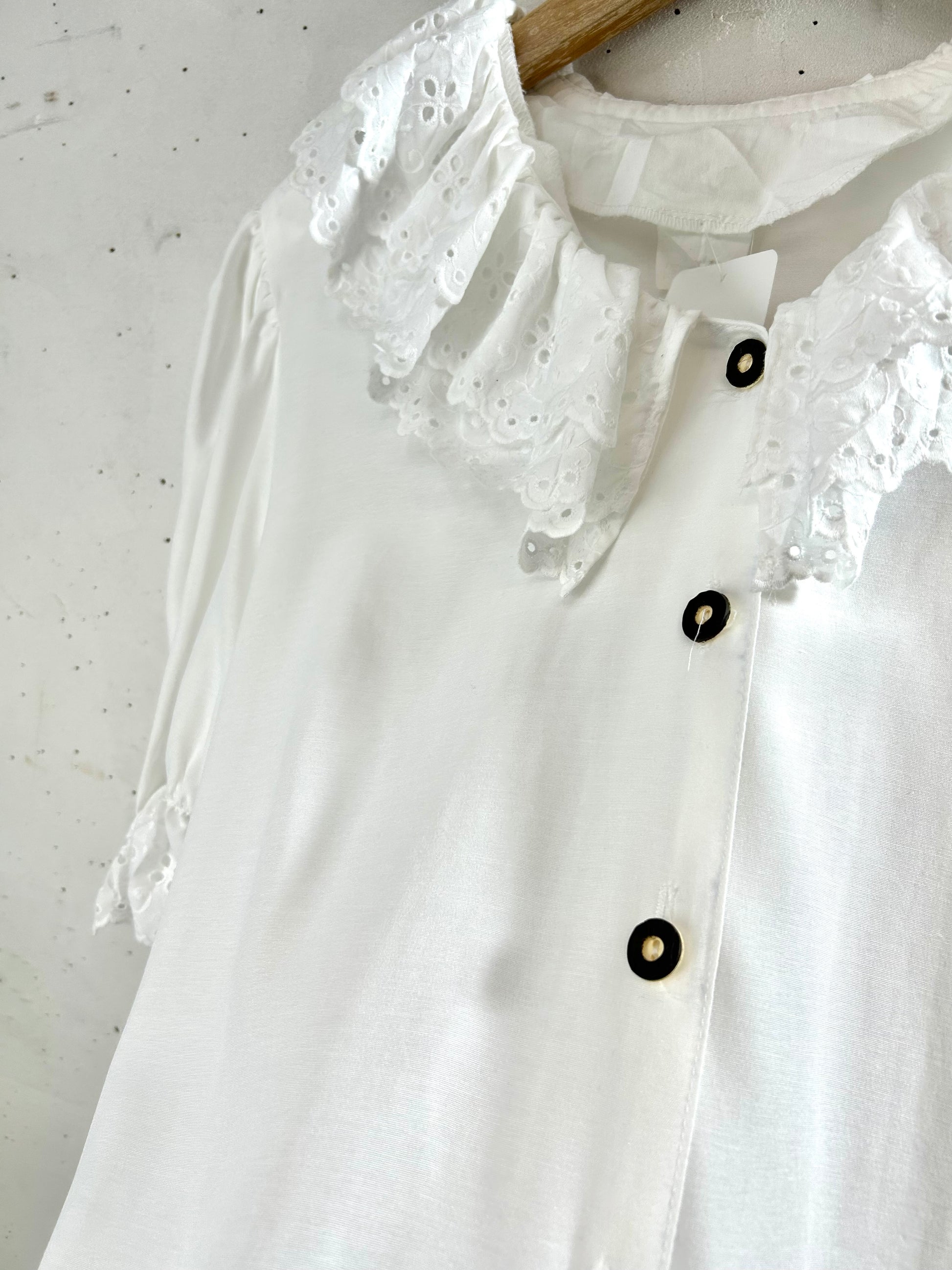 二重に重ねられたアイレットレースの襟に雰囲気あり、チロル特有のボタンもアクセントとなり素敵です。