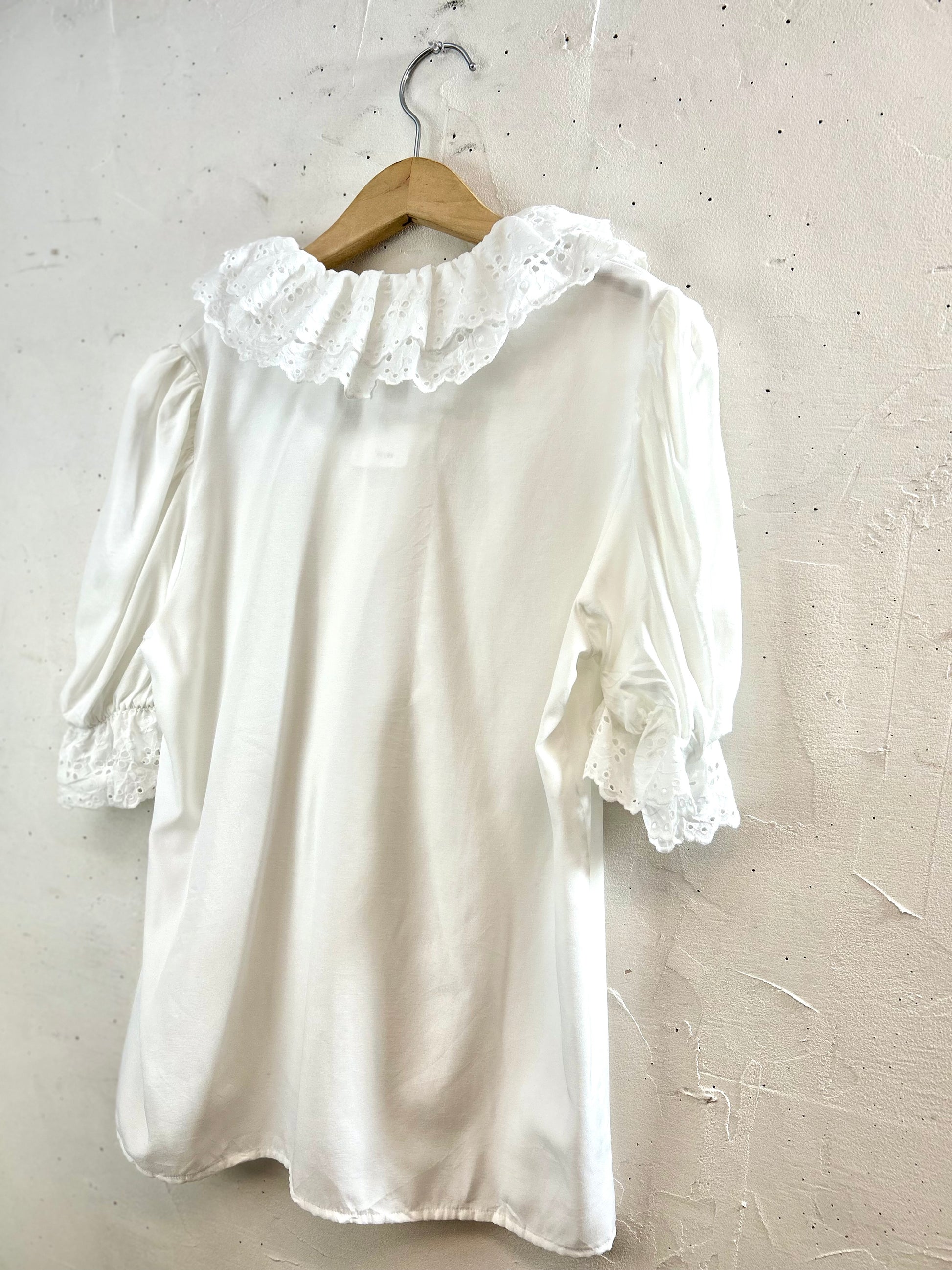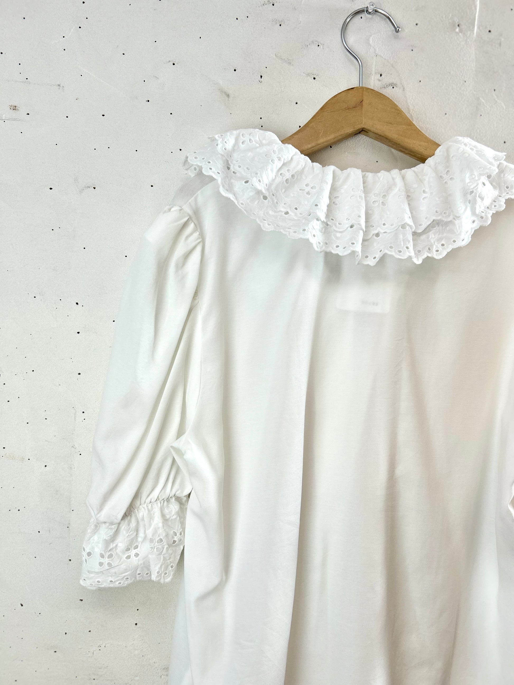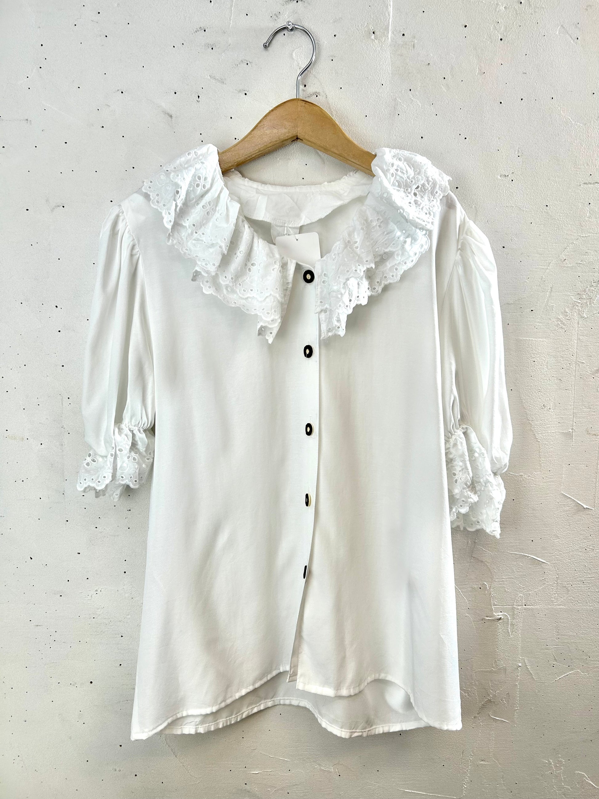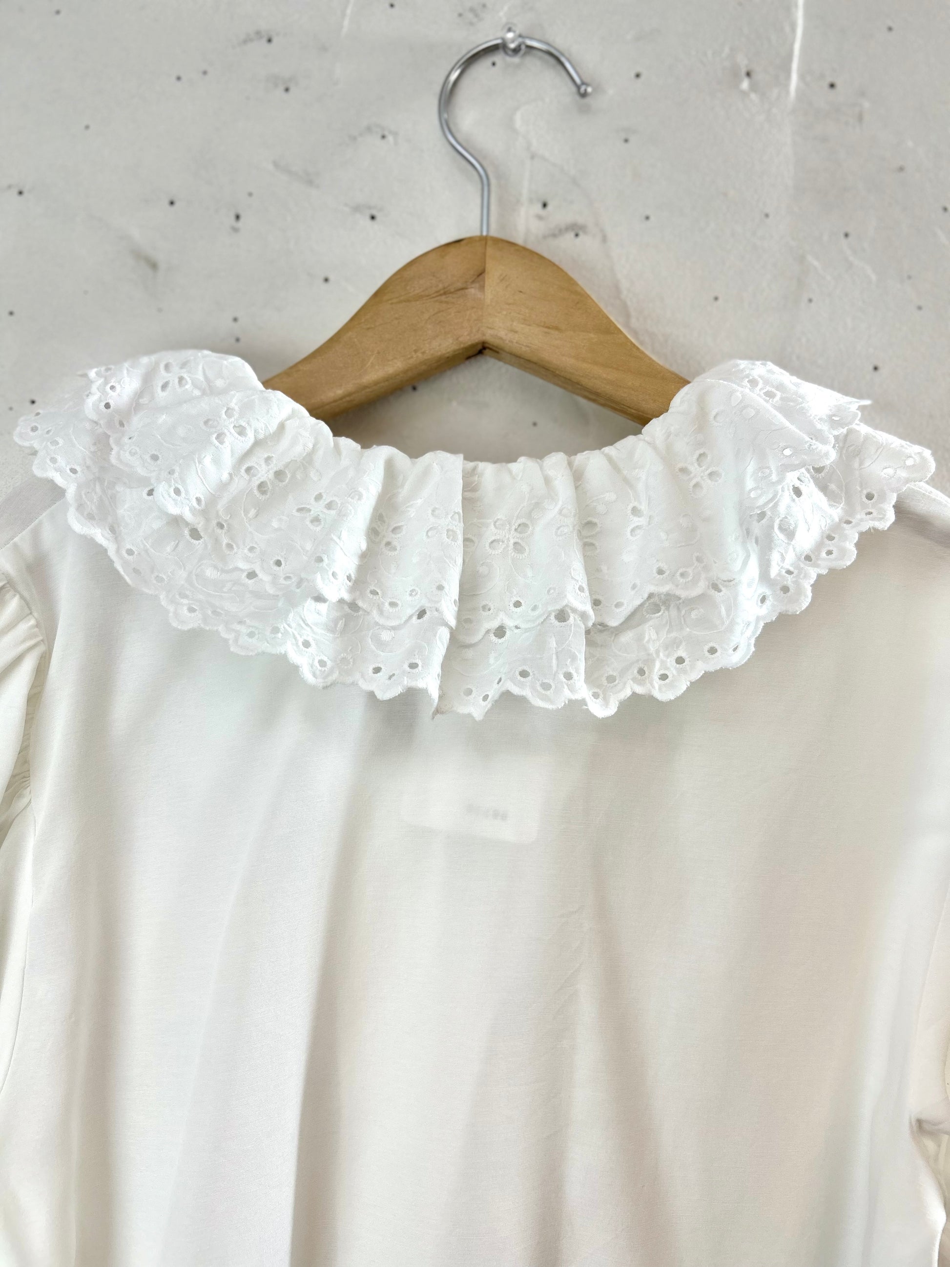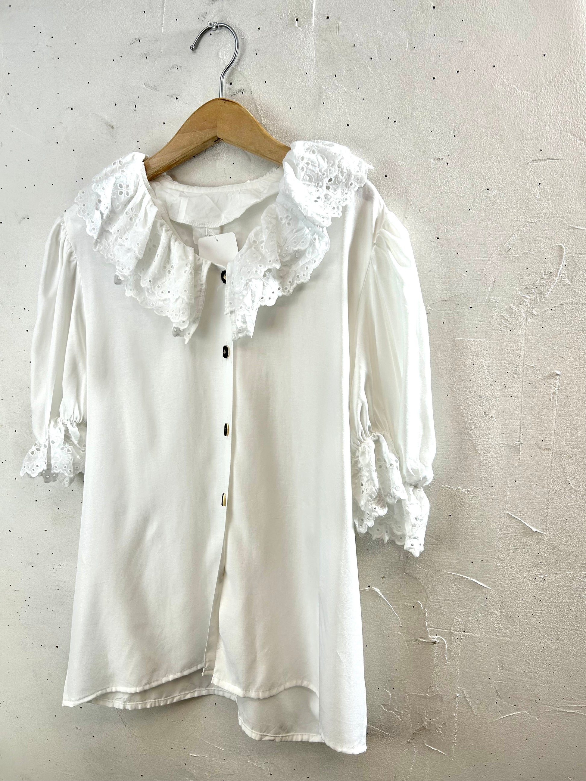 二重に重ねられたアイレットレースの襟に雰囲気あり、チロル特有のボタンもアクセントとなり素敵です。