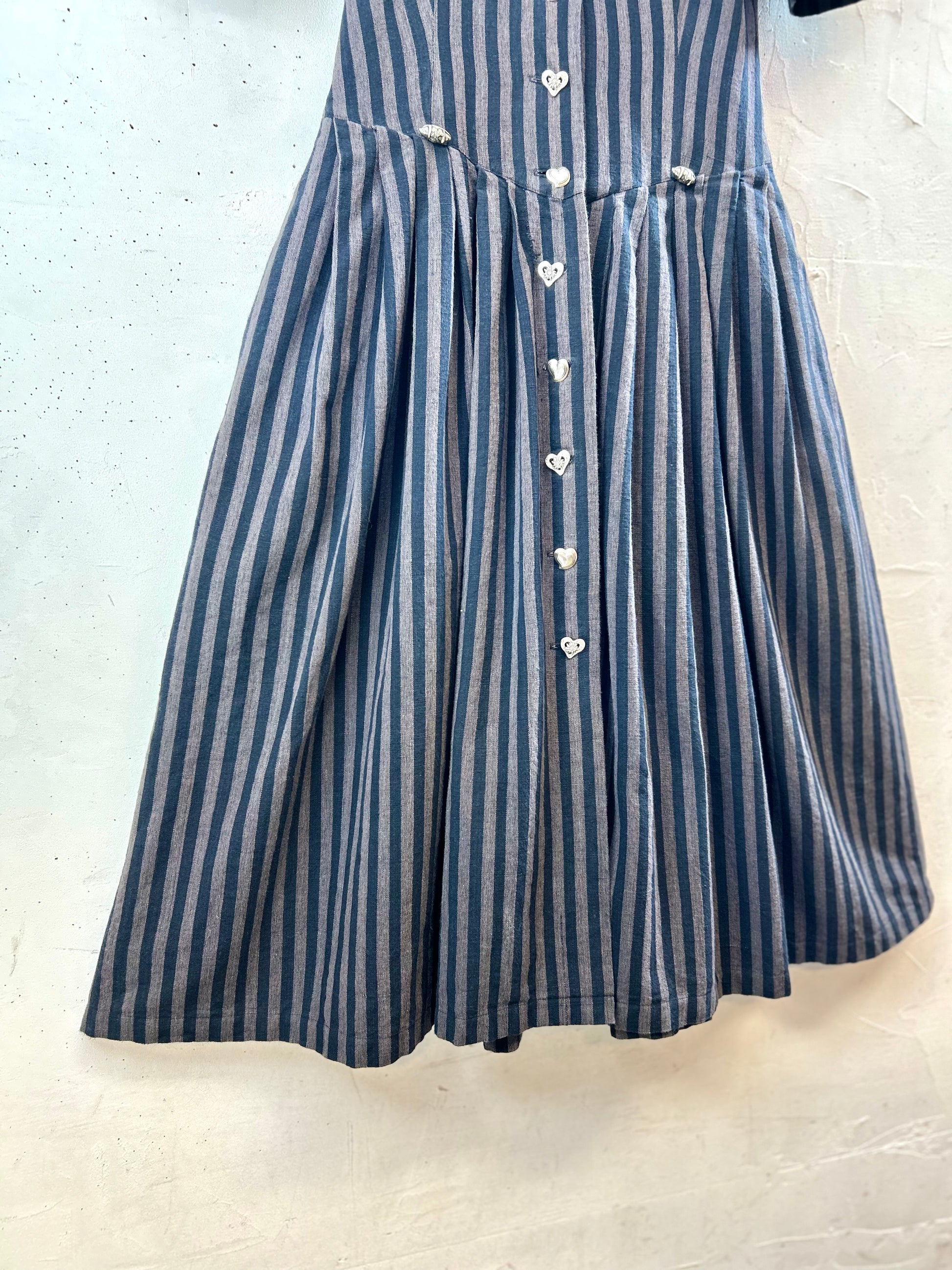 こちらのドレスはブラックとグレージュカラーのストライプにチロルらしい装飾が素敵な1着。