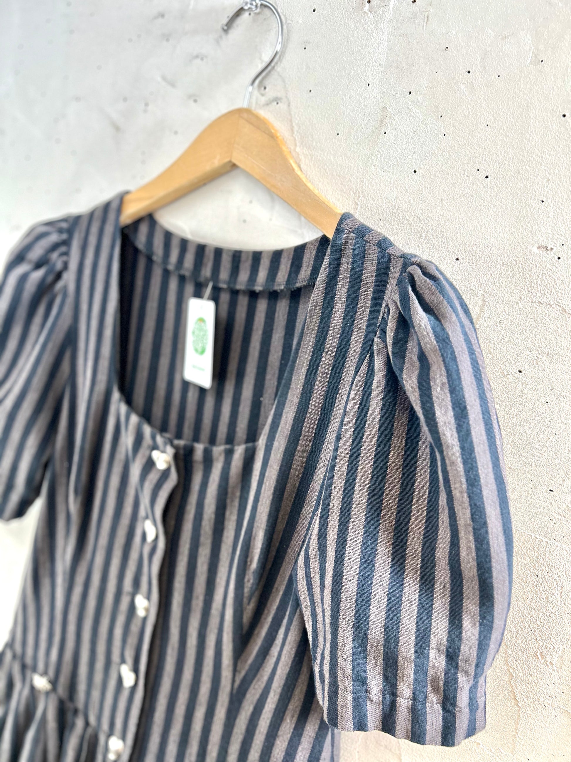 size:表記不明、肩幅37cm、身幅45cm、ウエスト切替82cm、袖丈33cm、ウエスト切替〜裾73cm、着丈120cm