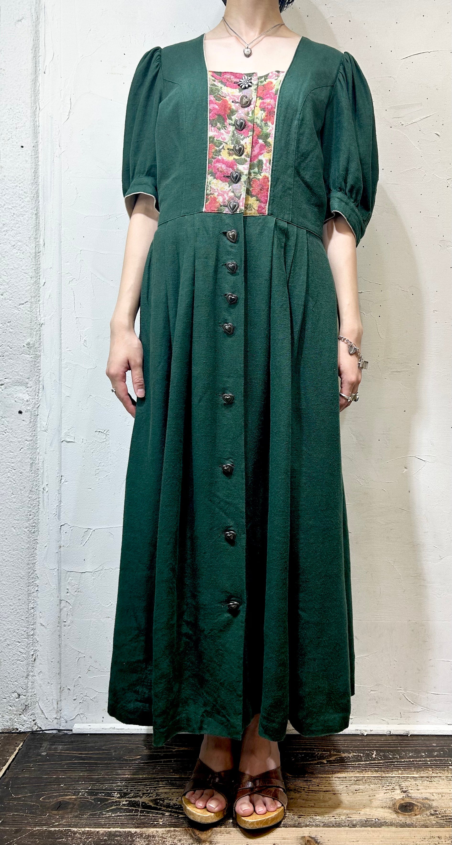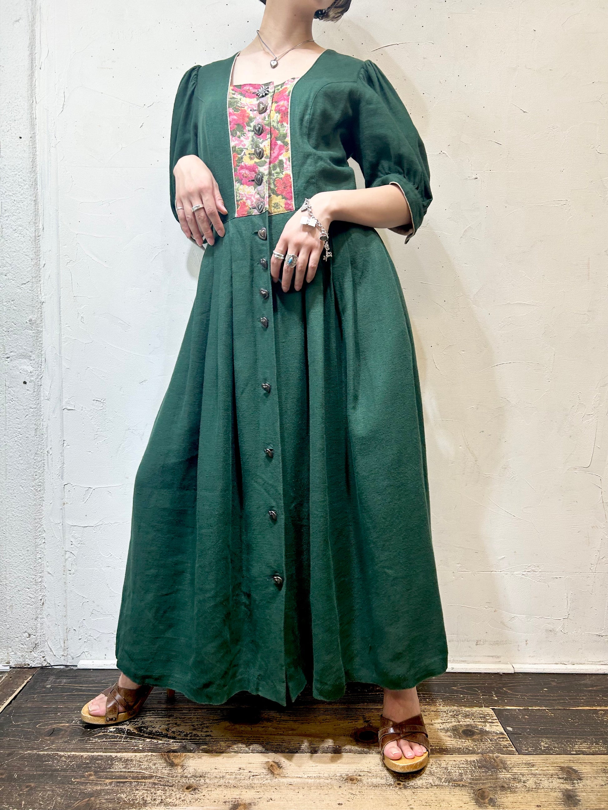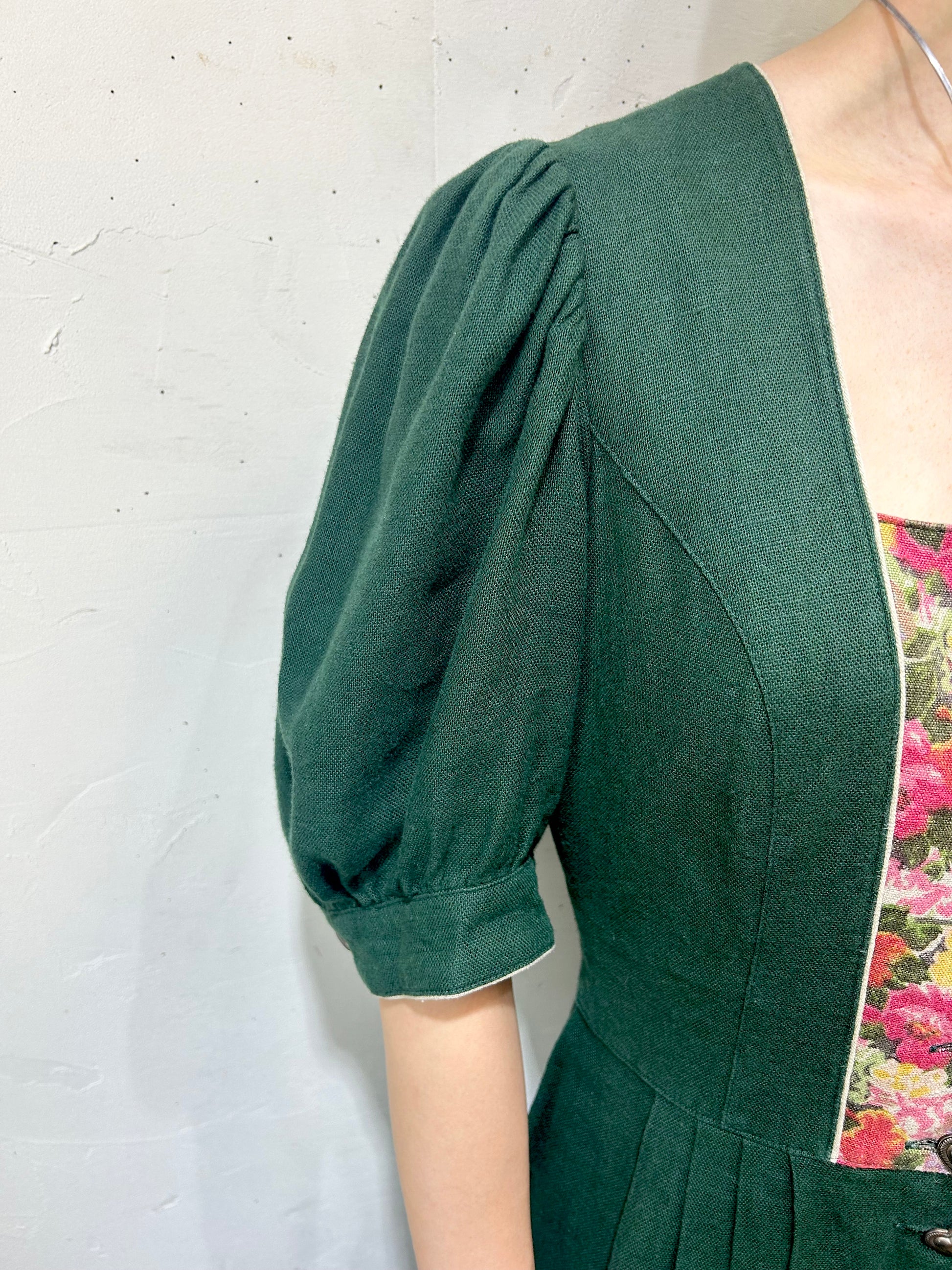 こちらのドレスはトップグリーンボディにフラワー生地の切り替えとなったコントラストが目を惹く一着。