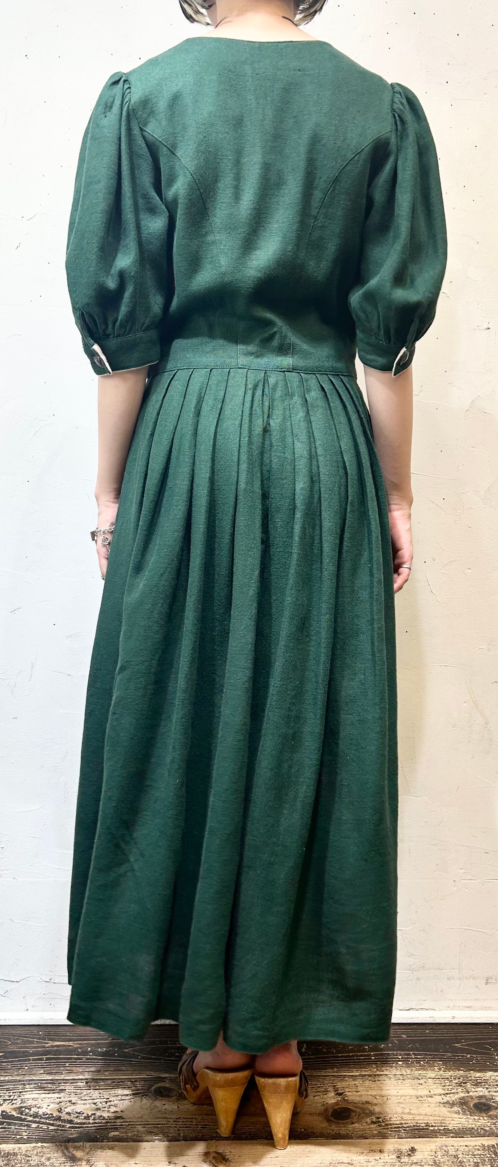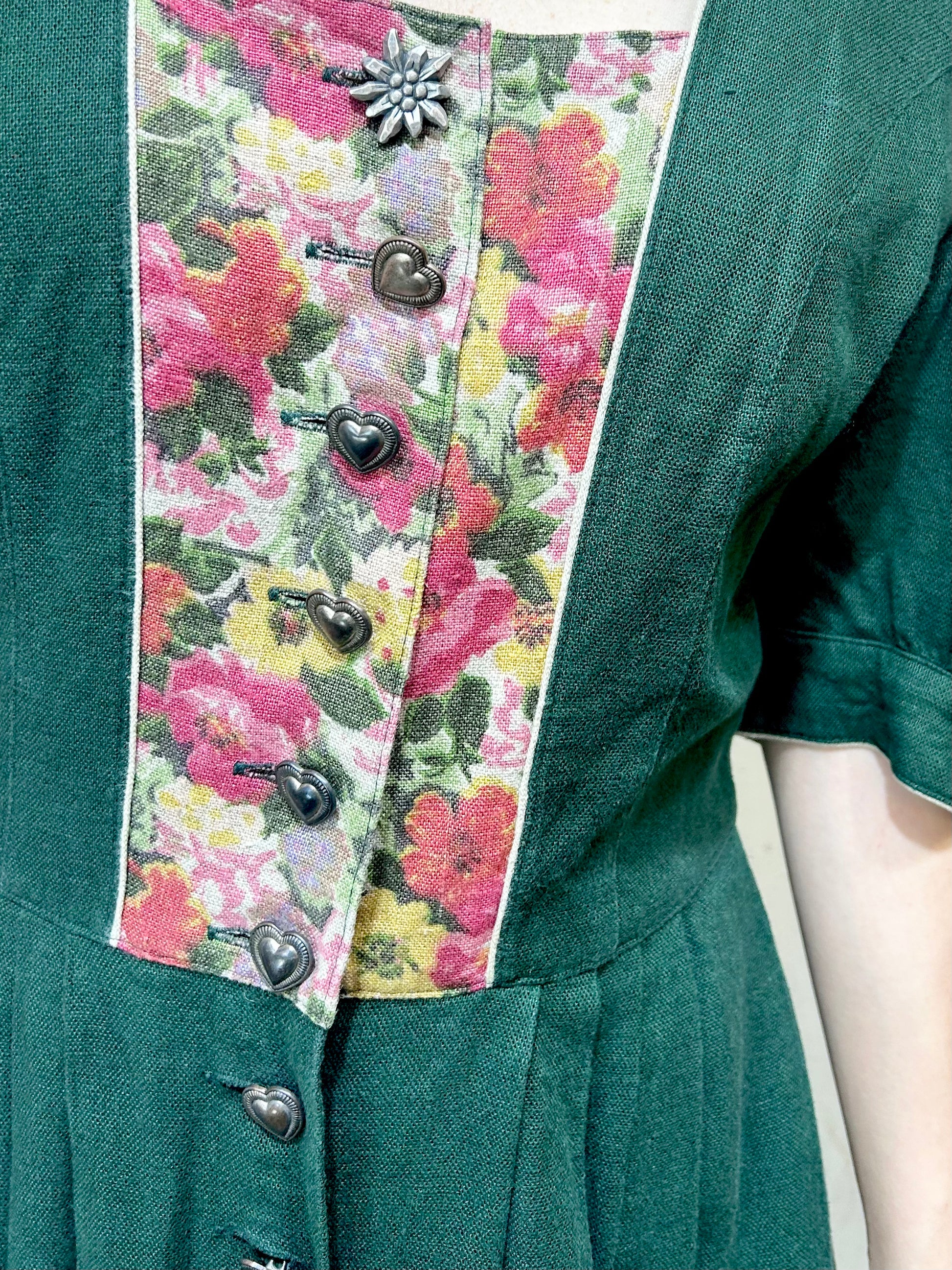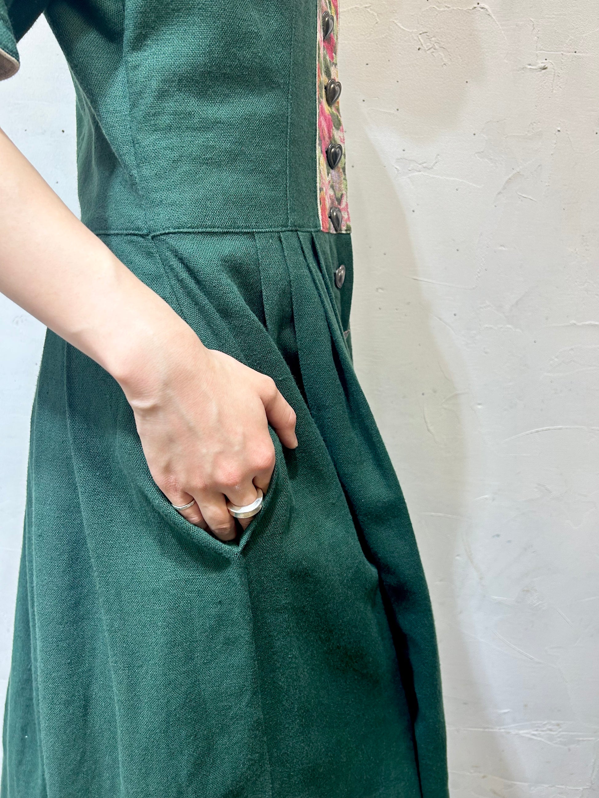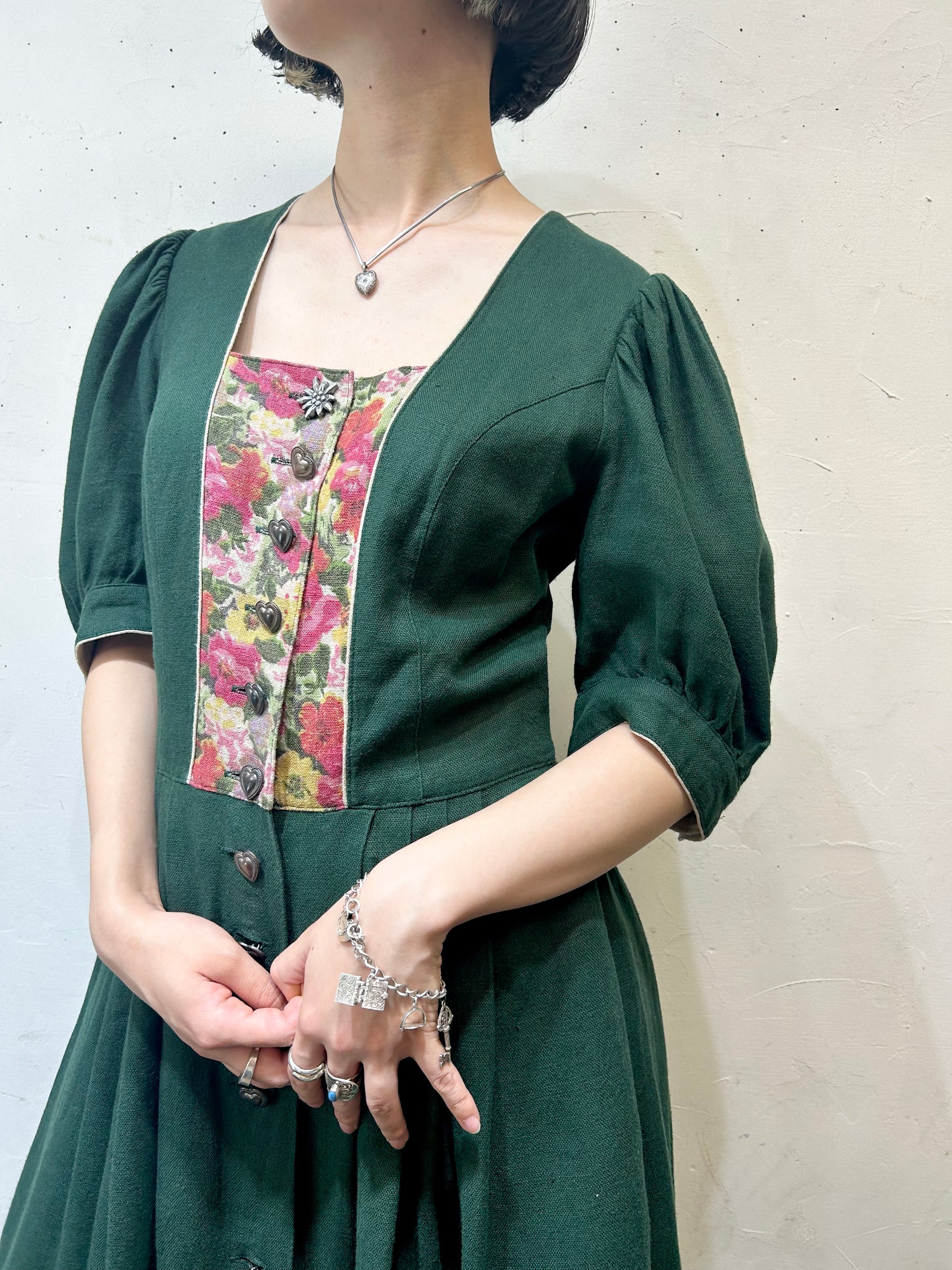 こちらのドレスはトップグリーンボディにフラワー生地の切り替えとなったコントラストが目を惹く一着。