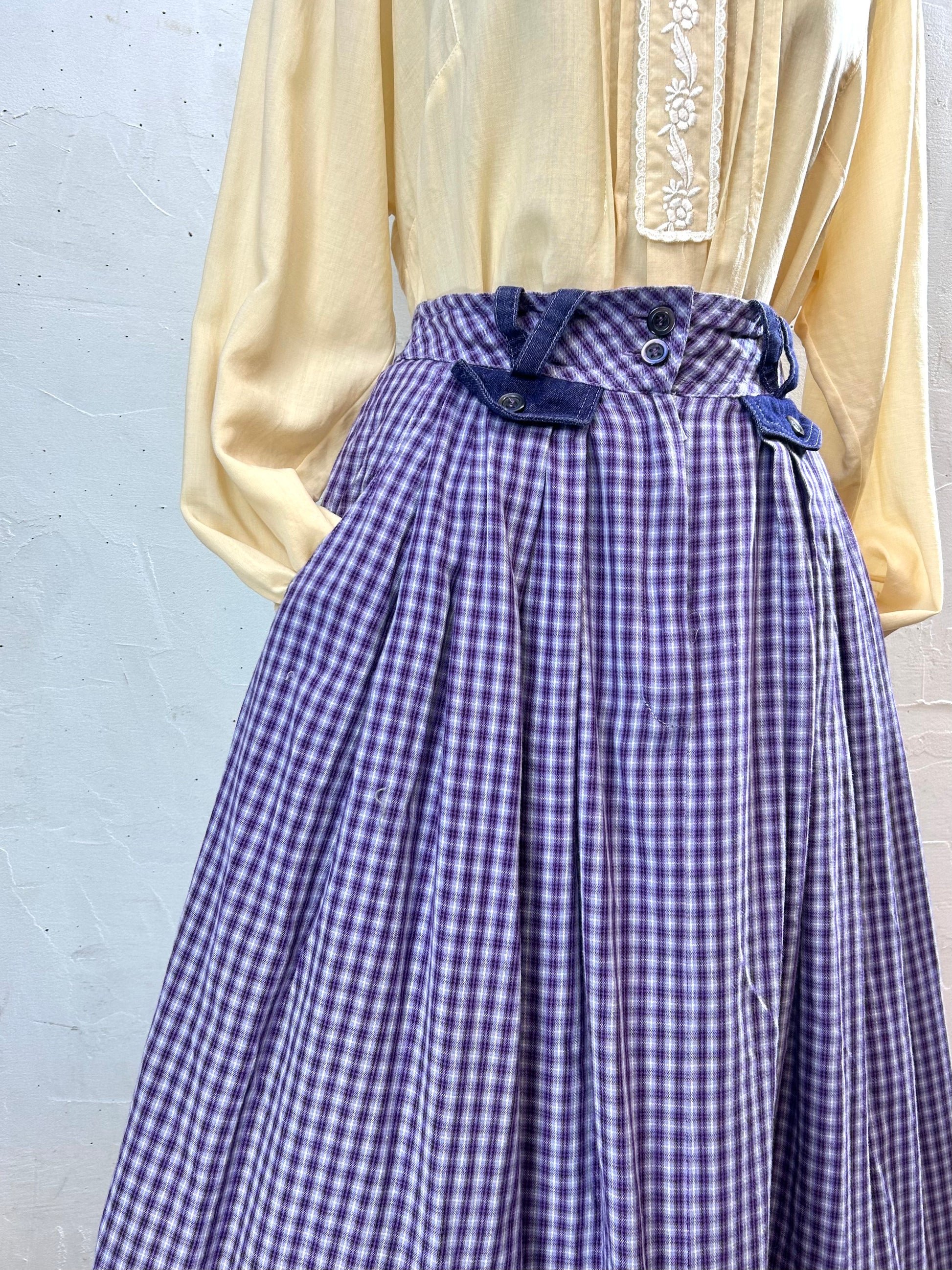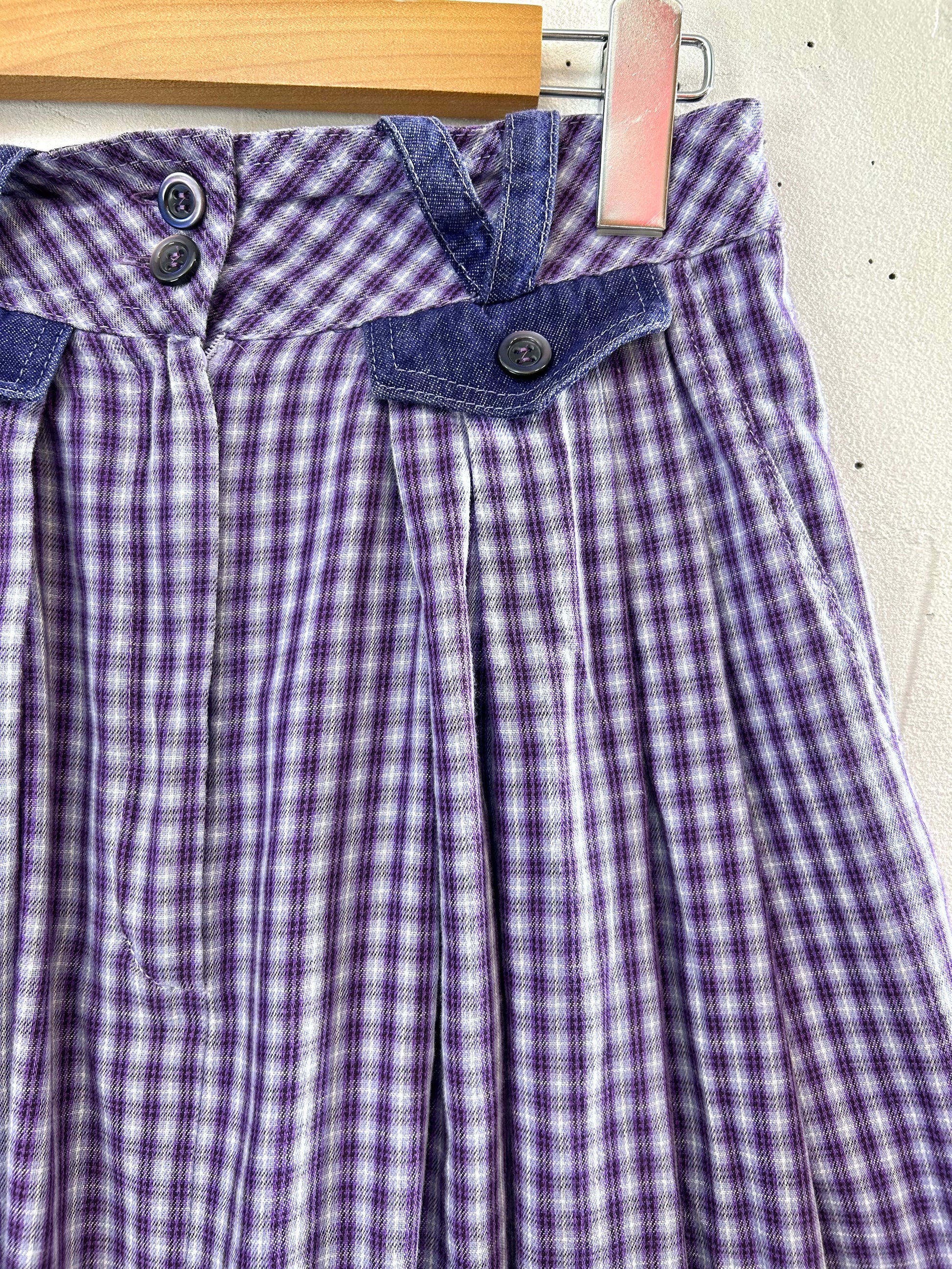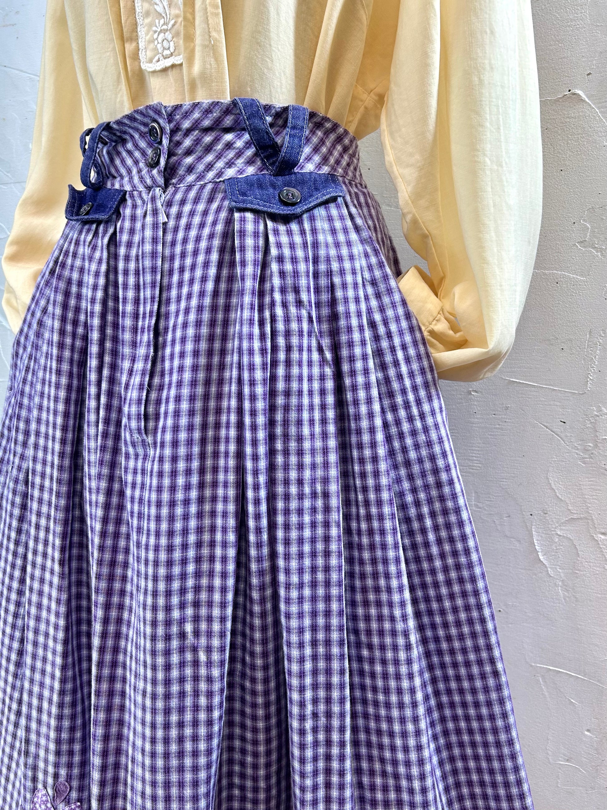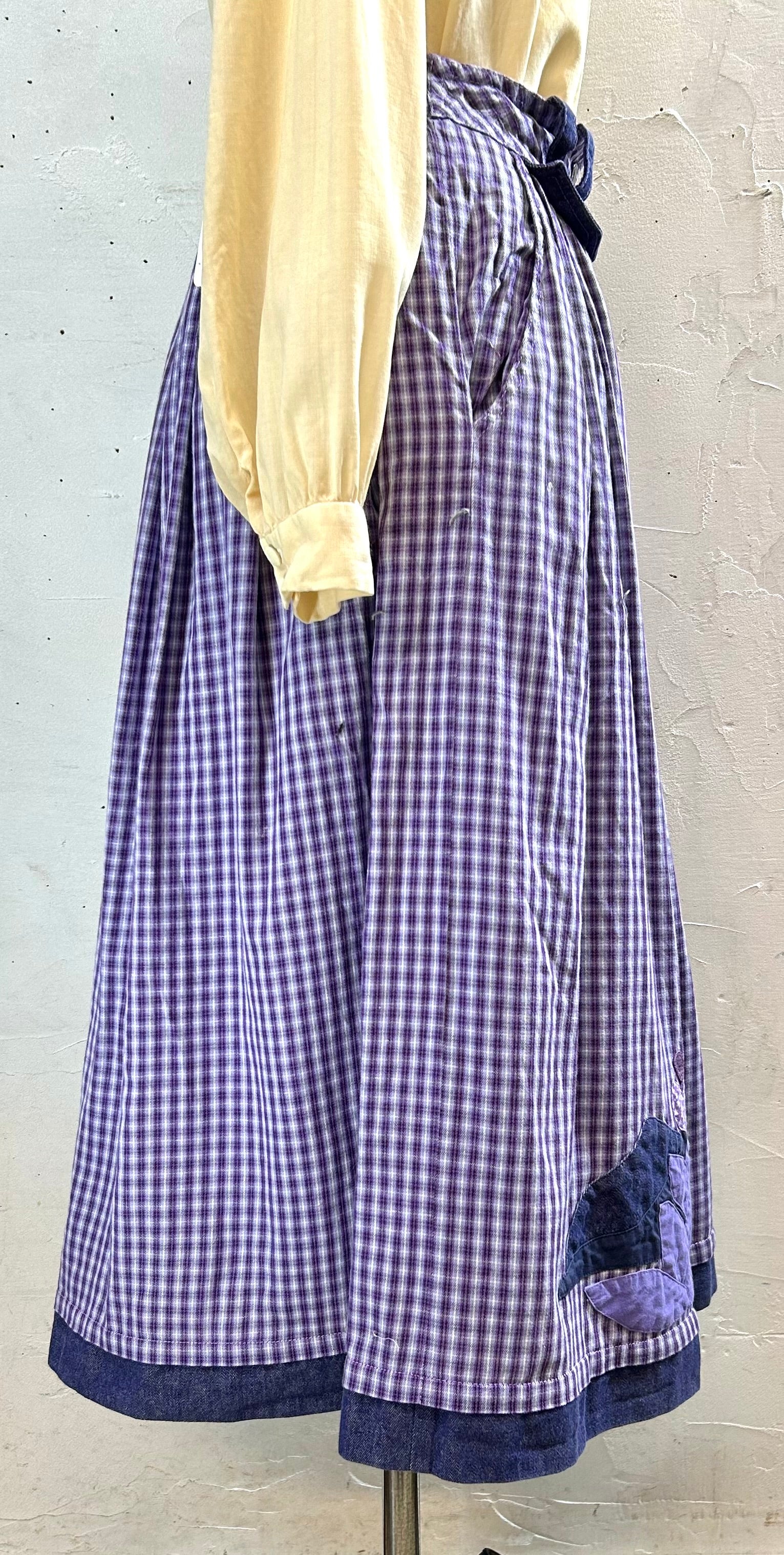 こちらのスカートは、パープルの伝統的なチェック柄にデニム生地を使った装飾がデザイン性の高いチロルらしい一着。