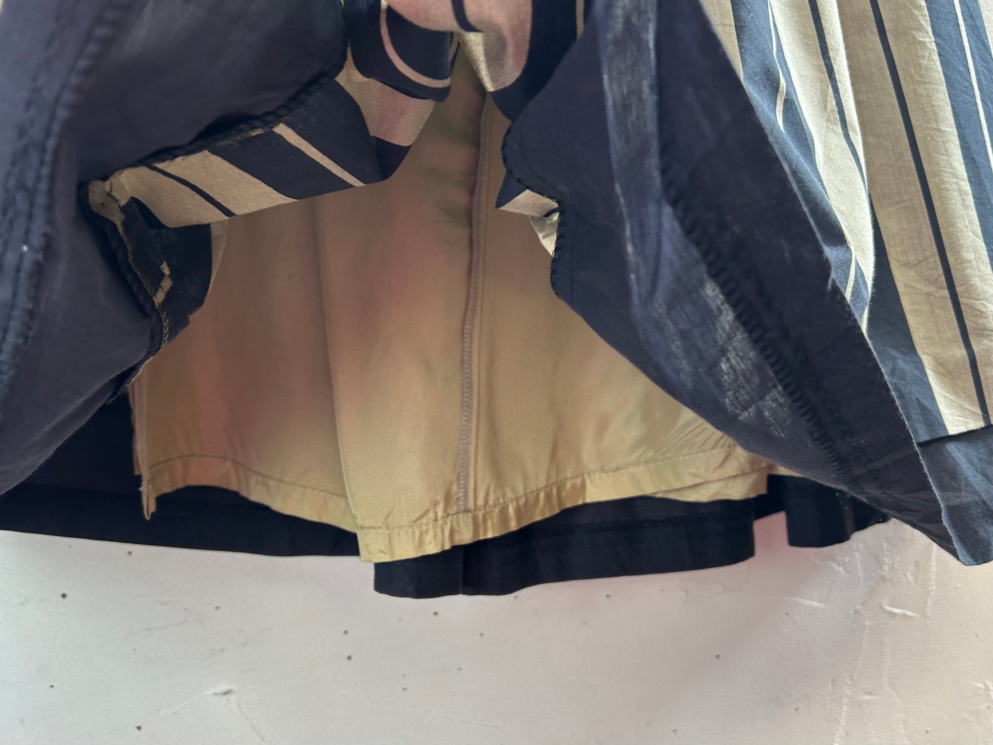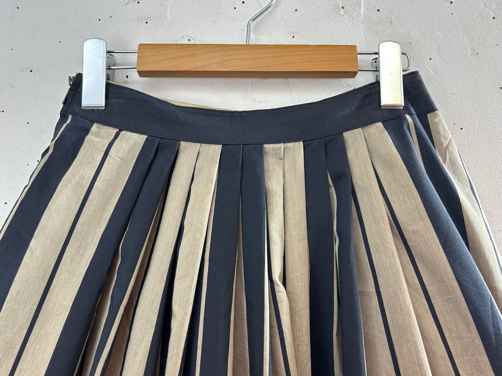 こちらのスカートは、様々な太さのストライプパターンが素敵な一着。