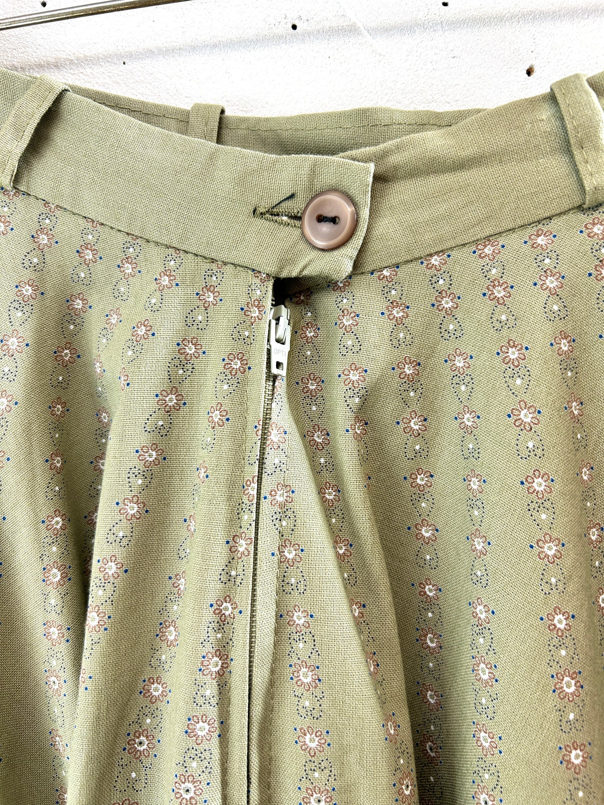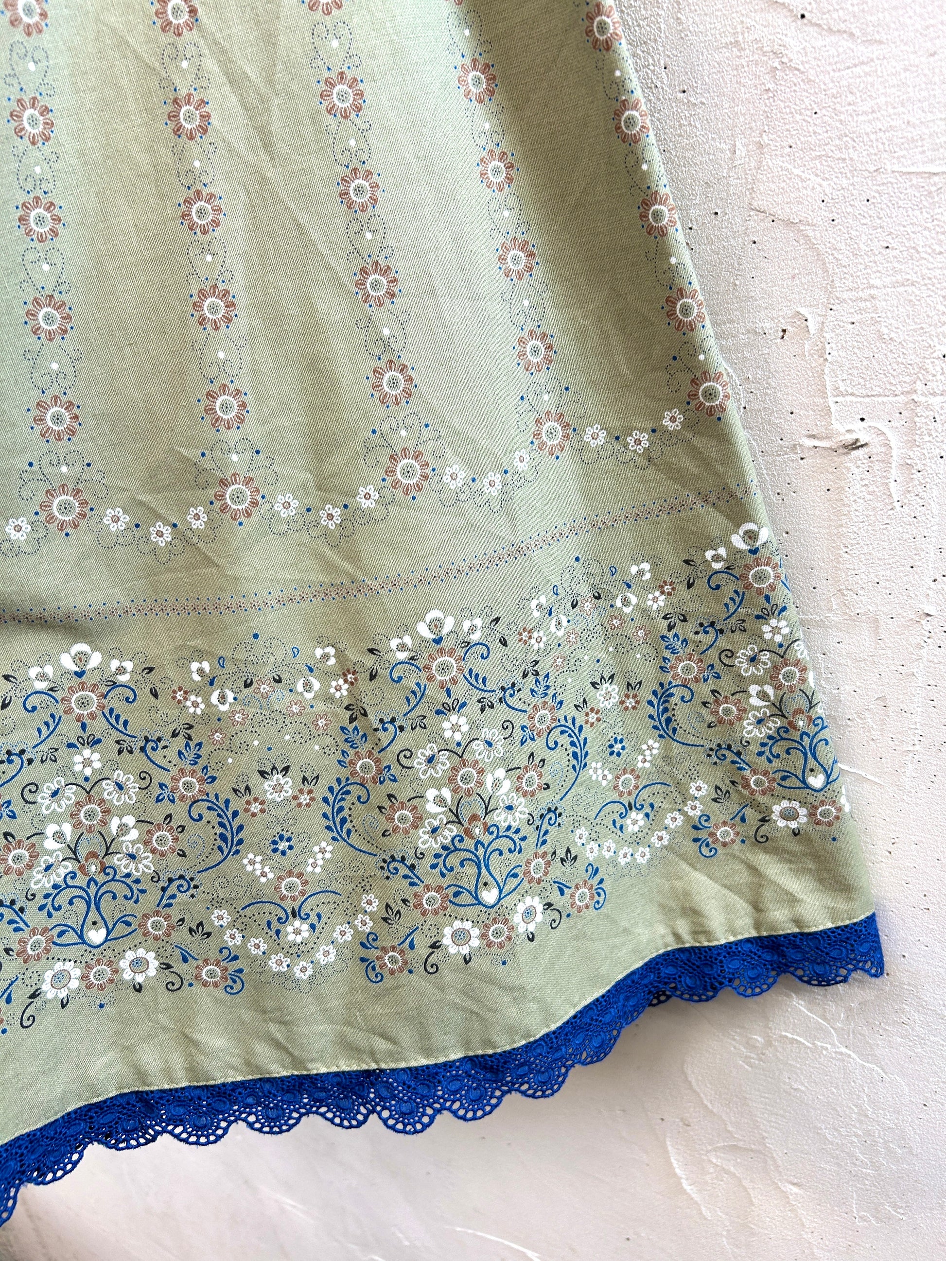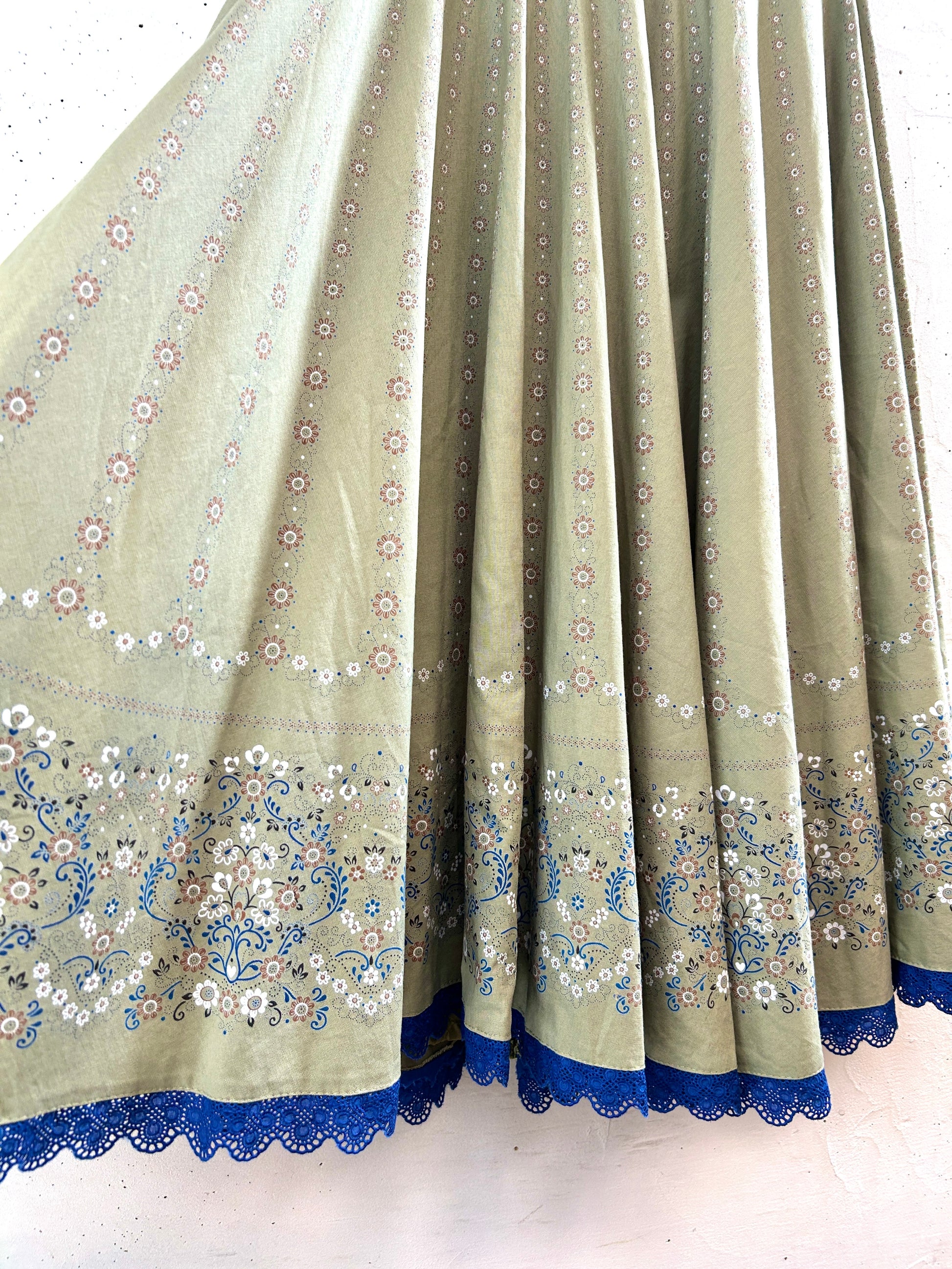 こちらのスカートは、淡い若草色に花柄ストライプ、裾にかけての花柄のデザインがチロルらしい一着。