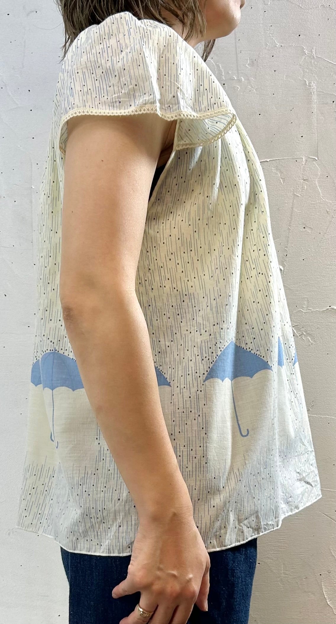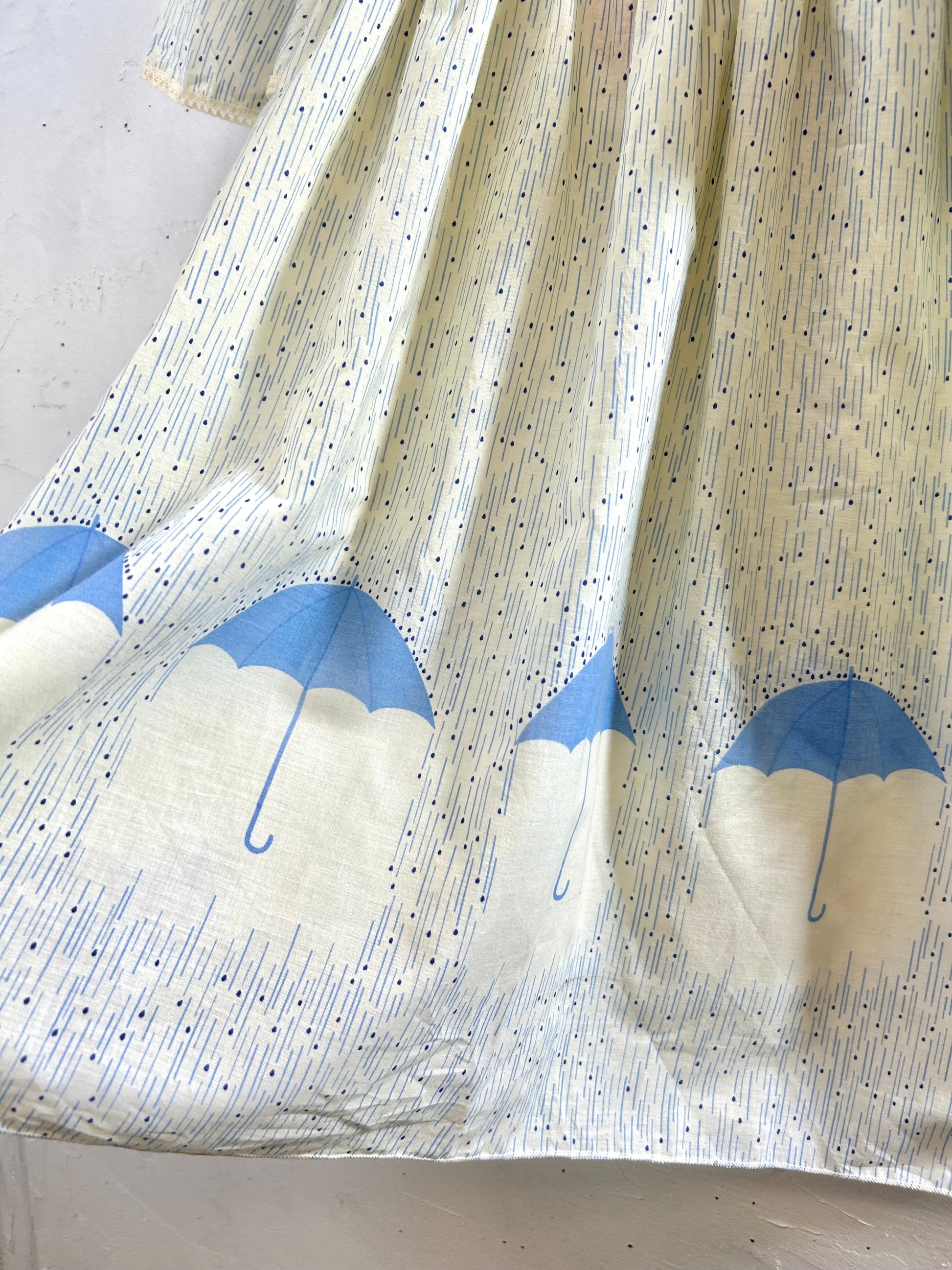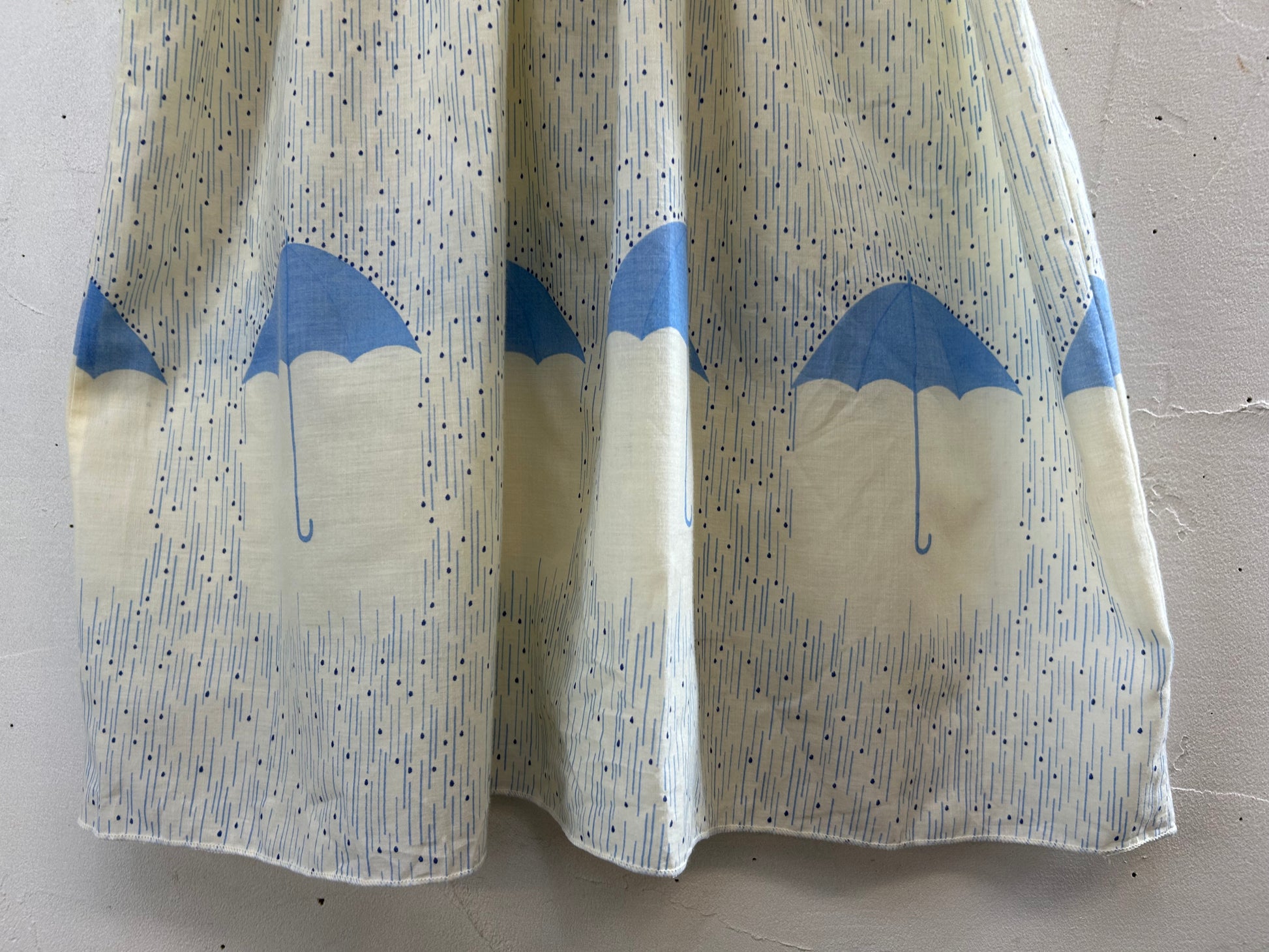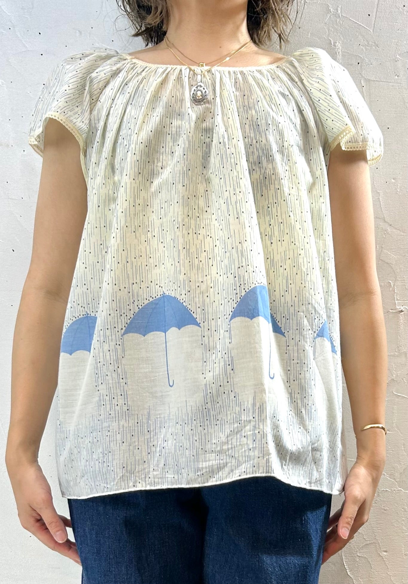 肌馴染みの良い生成りに傘が並んだユニークな1着。