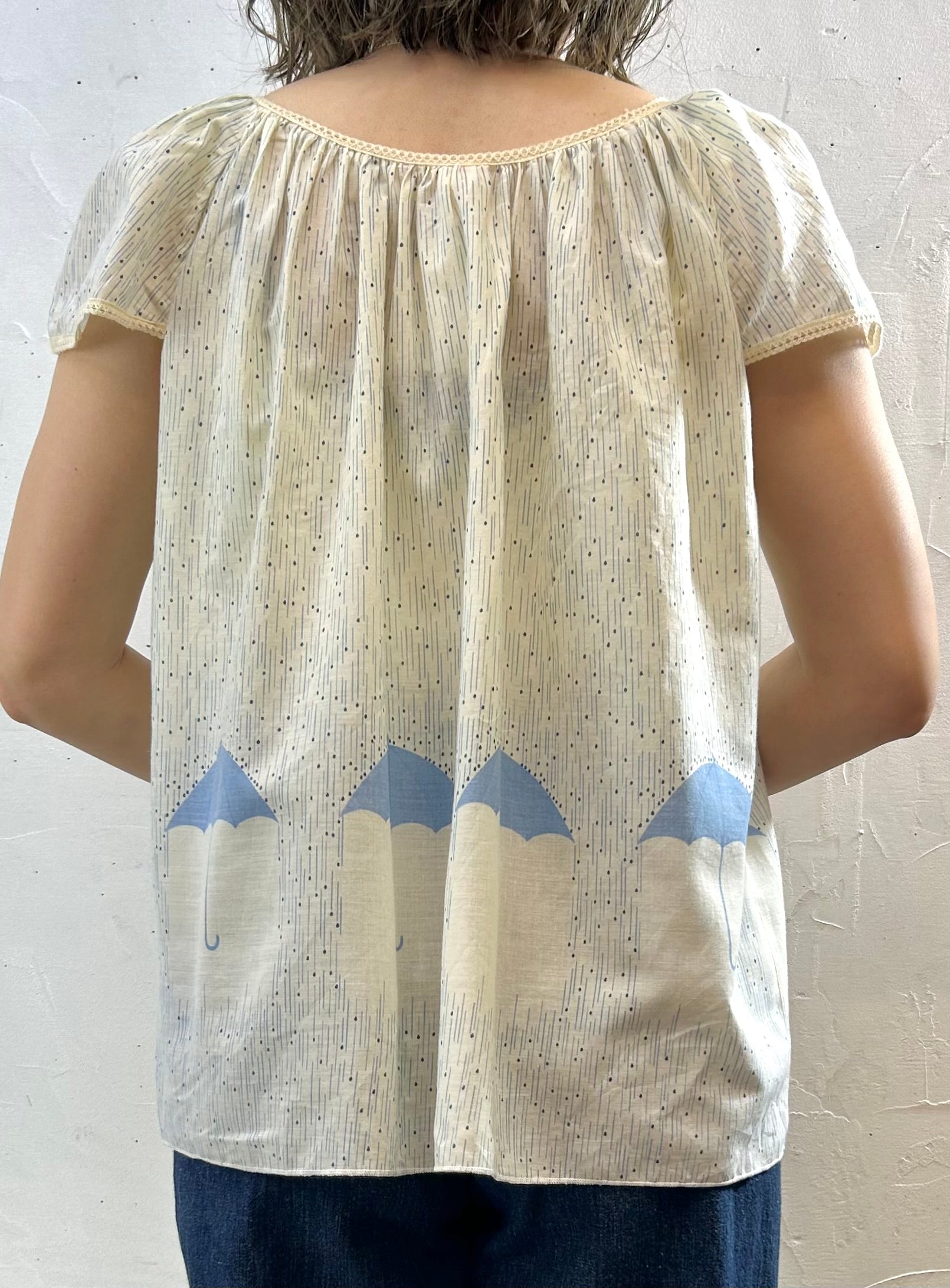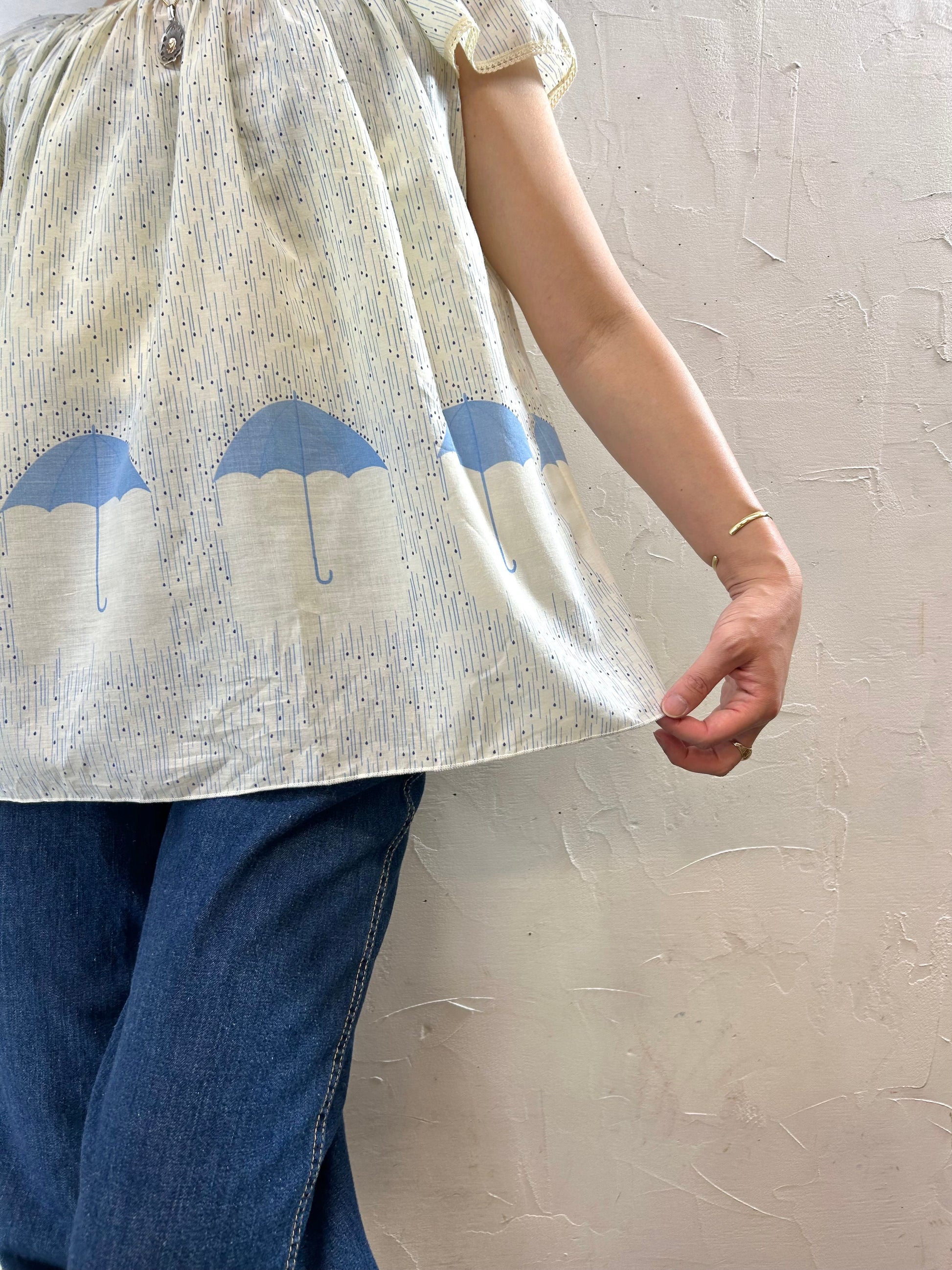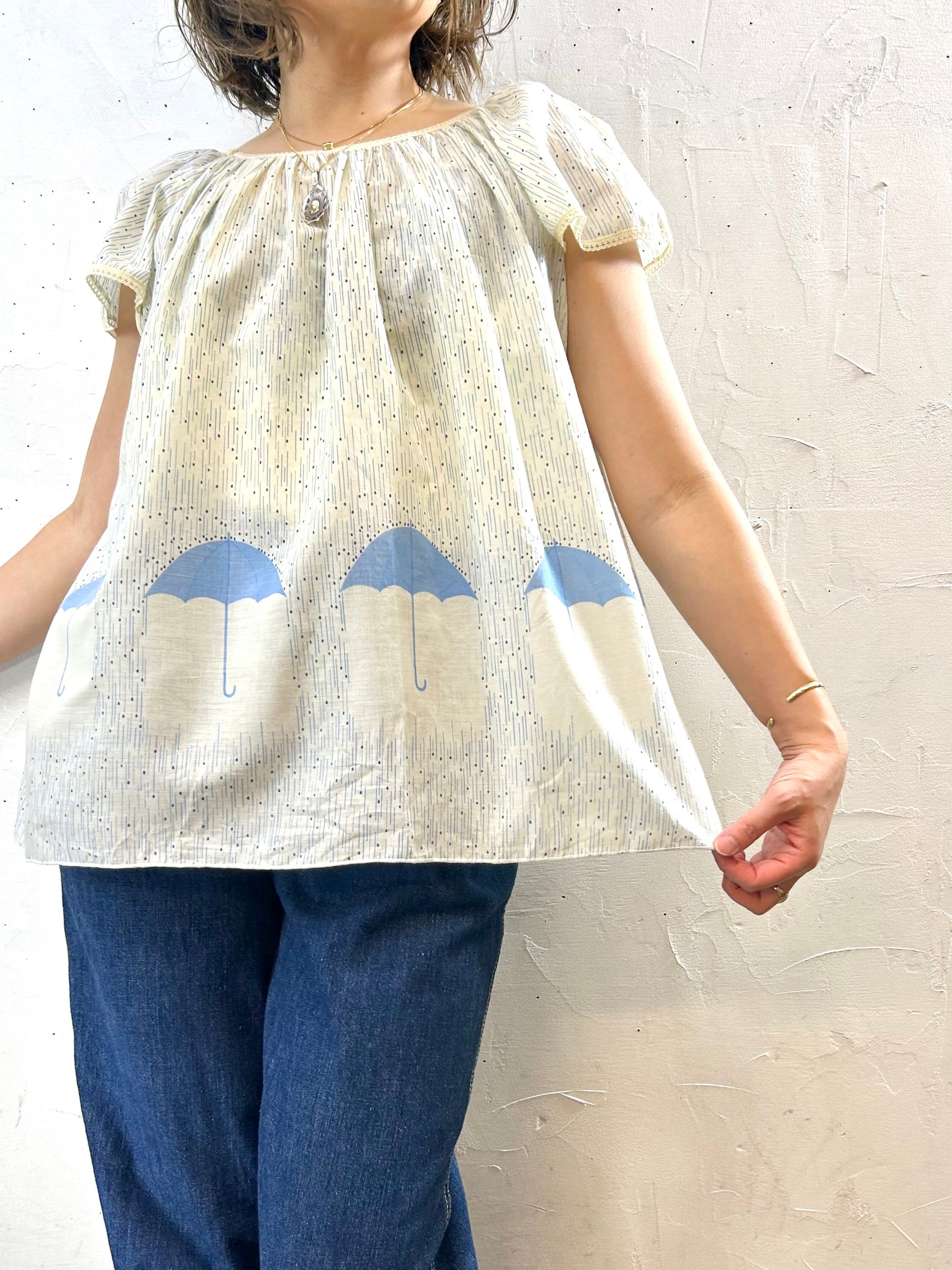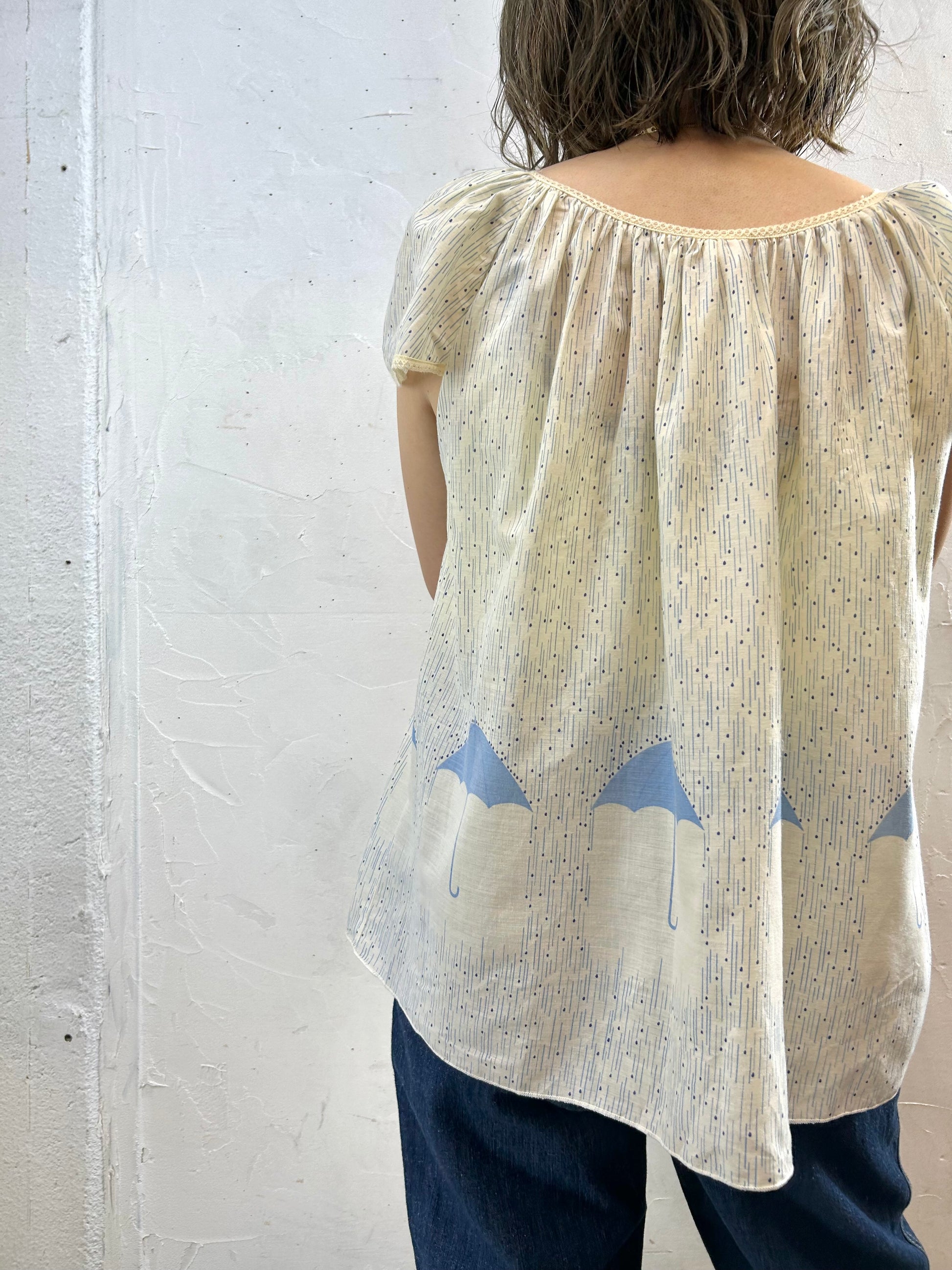 肌馴染みの良い生成りに傘が並んだユニークな1着。