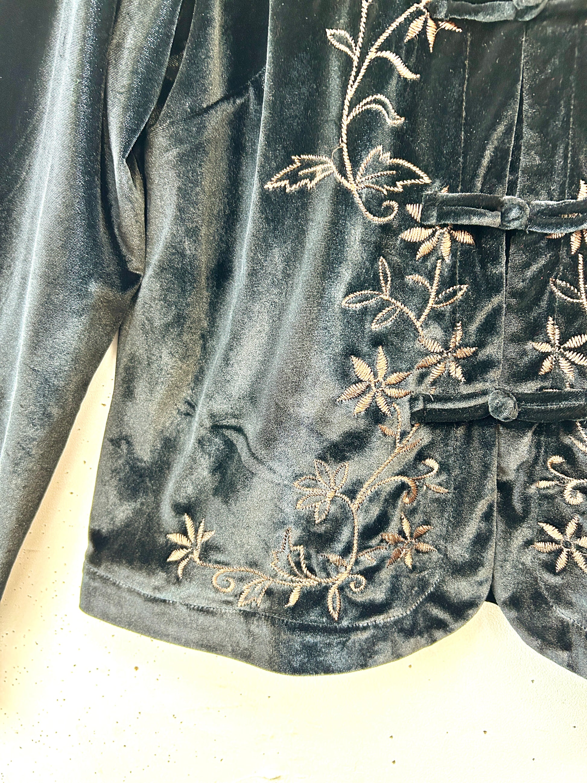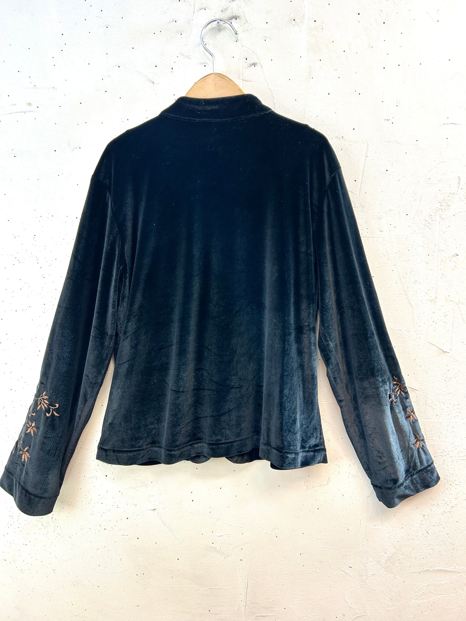 ブラックのベロアが上品で、ブラウンカラーの刺繍デザインが素敵な一着。
