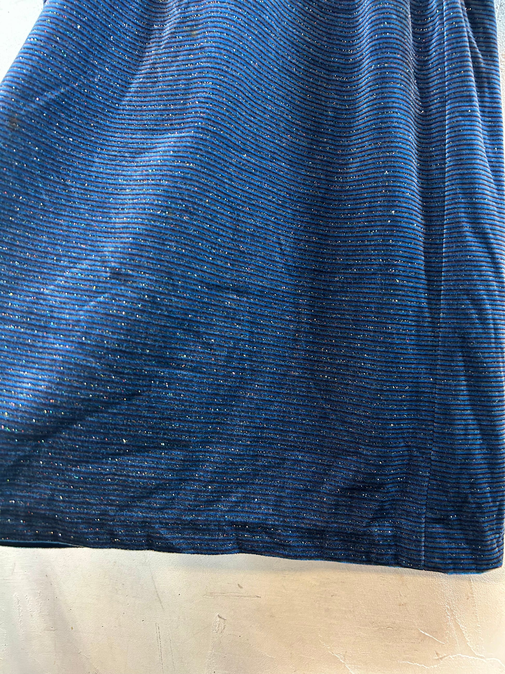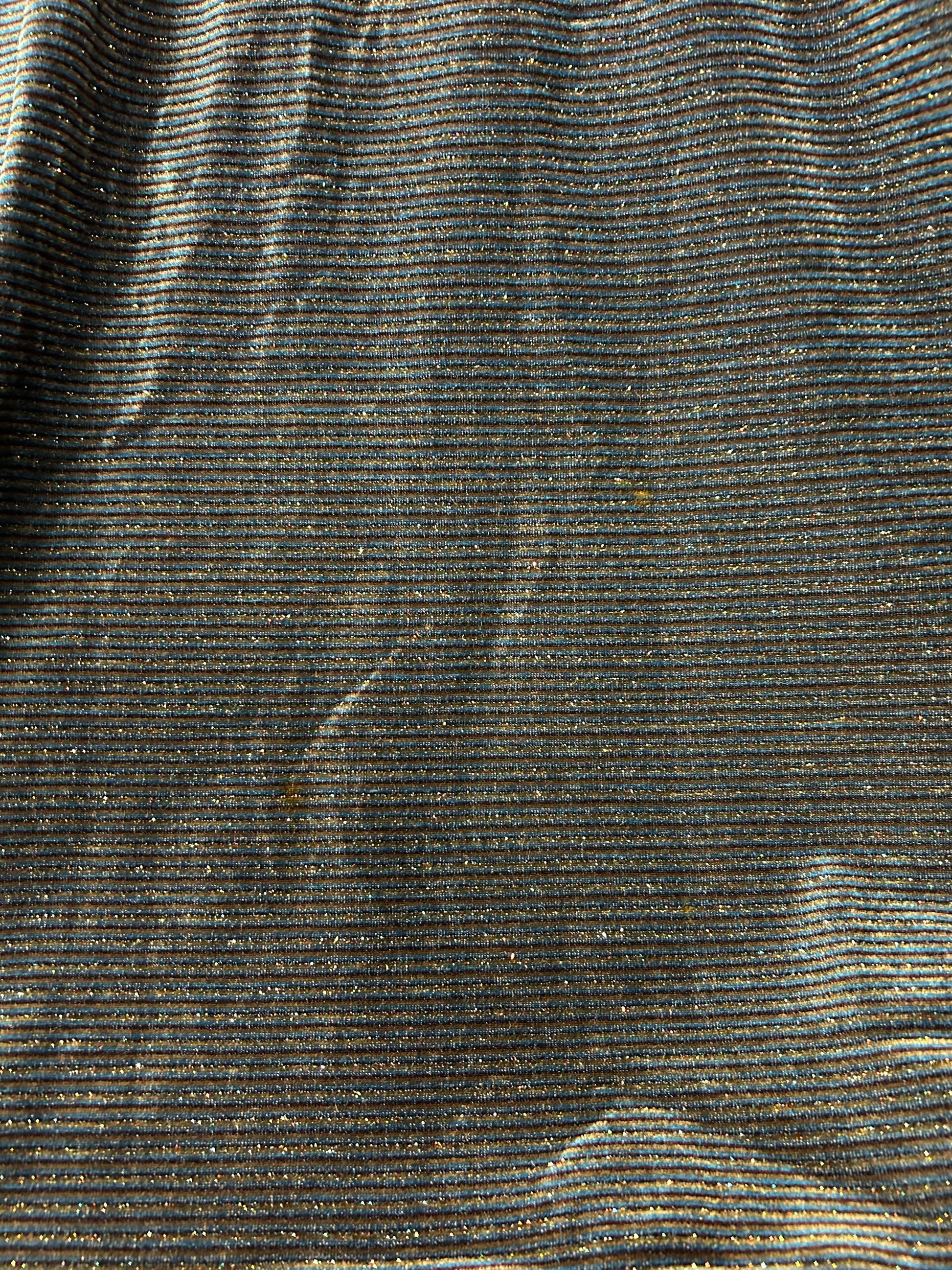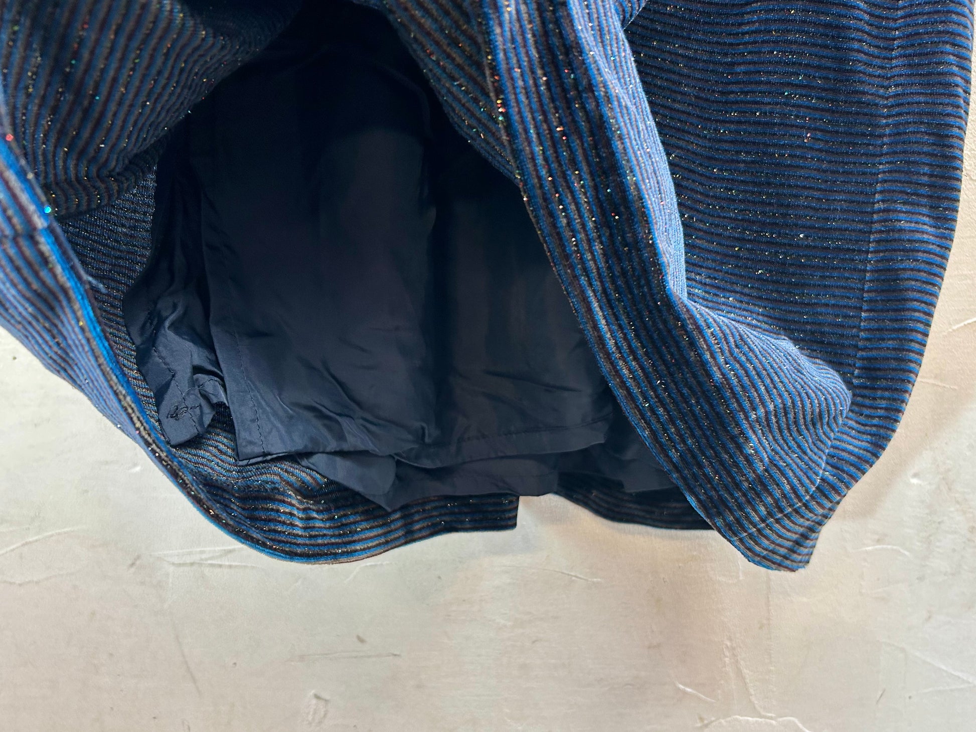 細かなボーダーボディにラメ糸が織り交ぜられ、キラキラとした夜空のような1着。