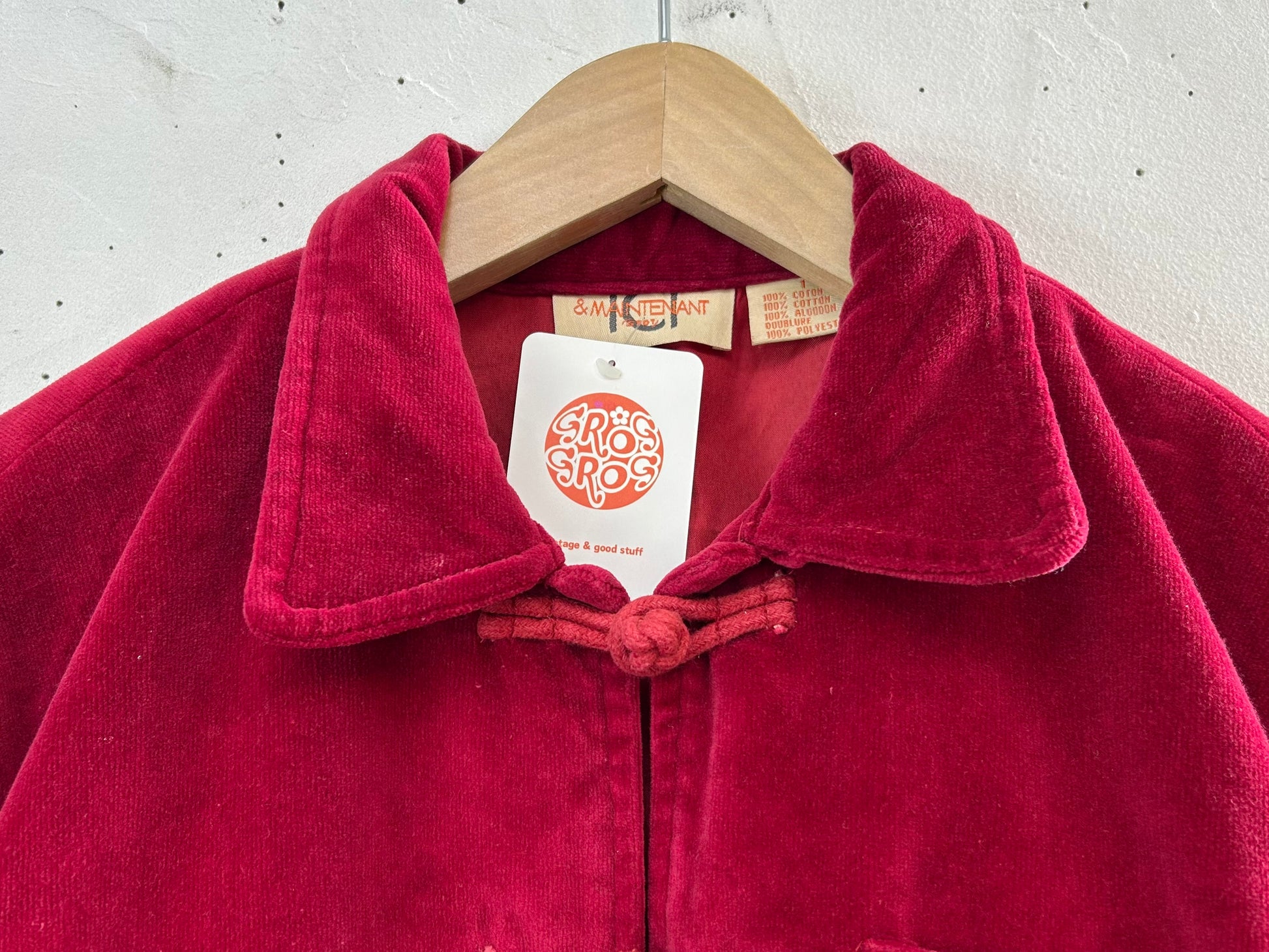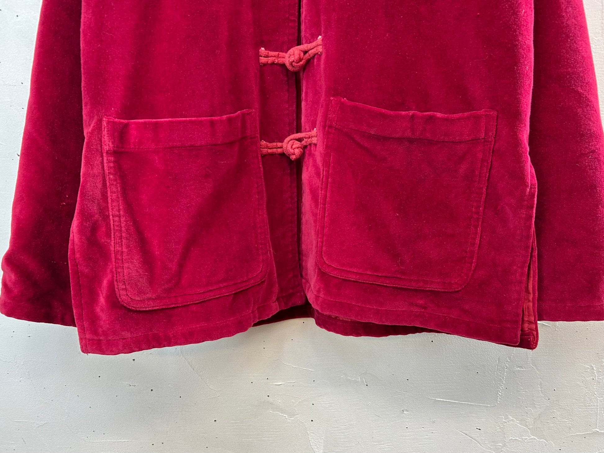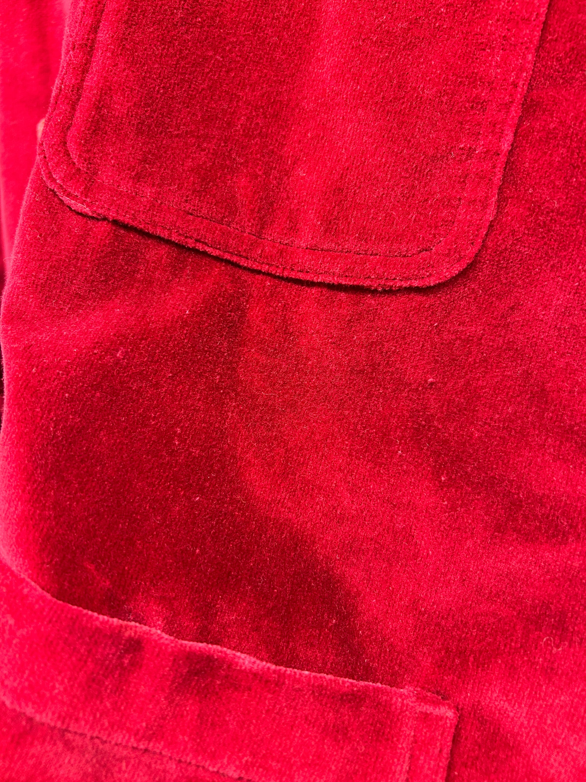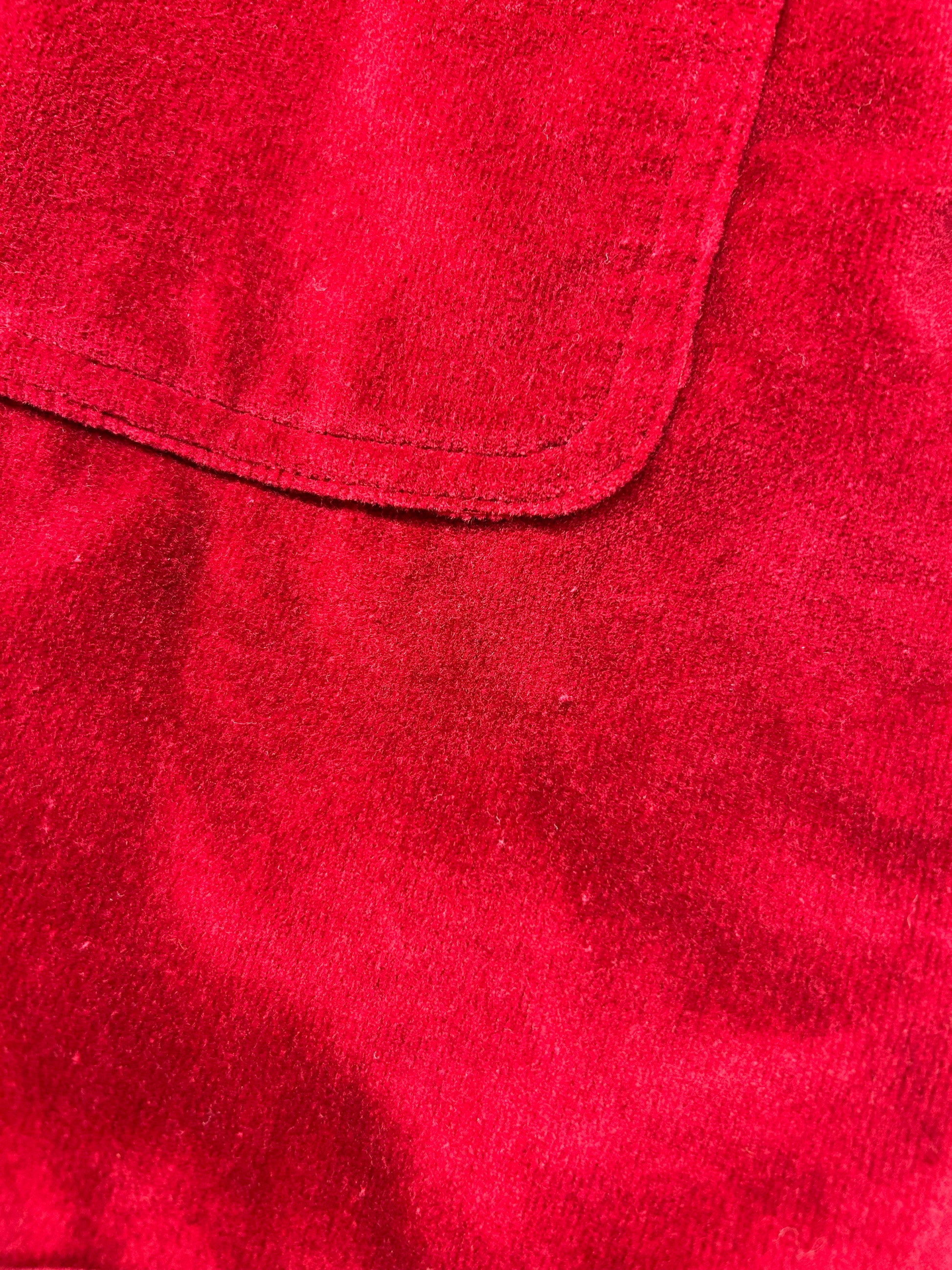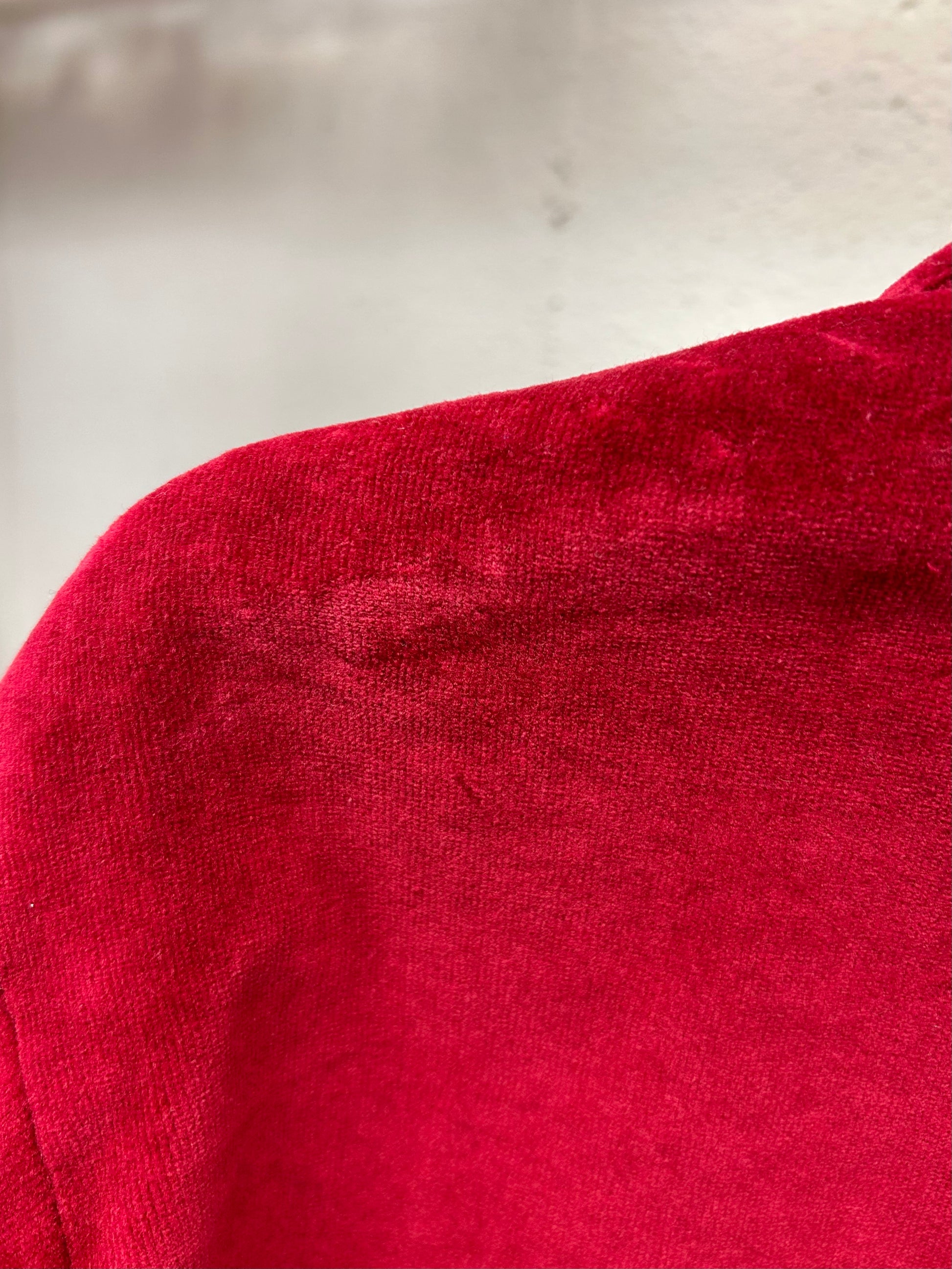 深みのあるレッドのベロアが上品で、フレンチチャイナのような3ポケットデザインが素敵な一着。