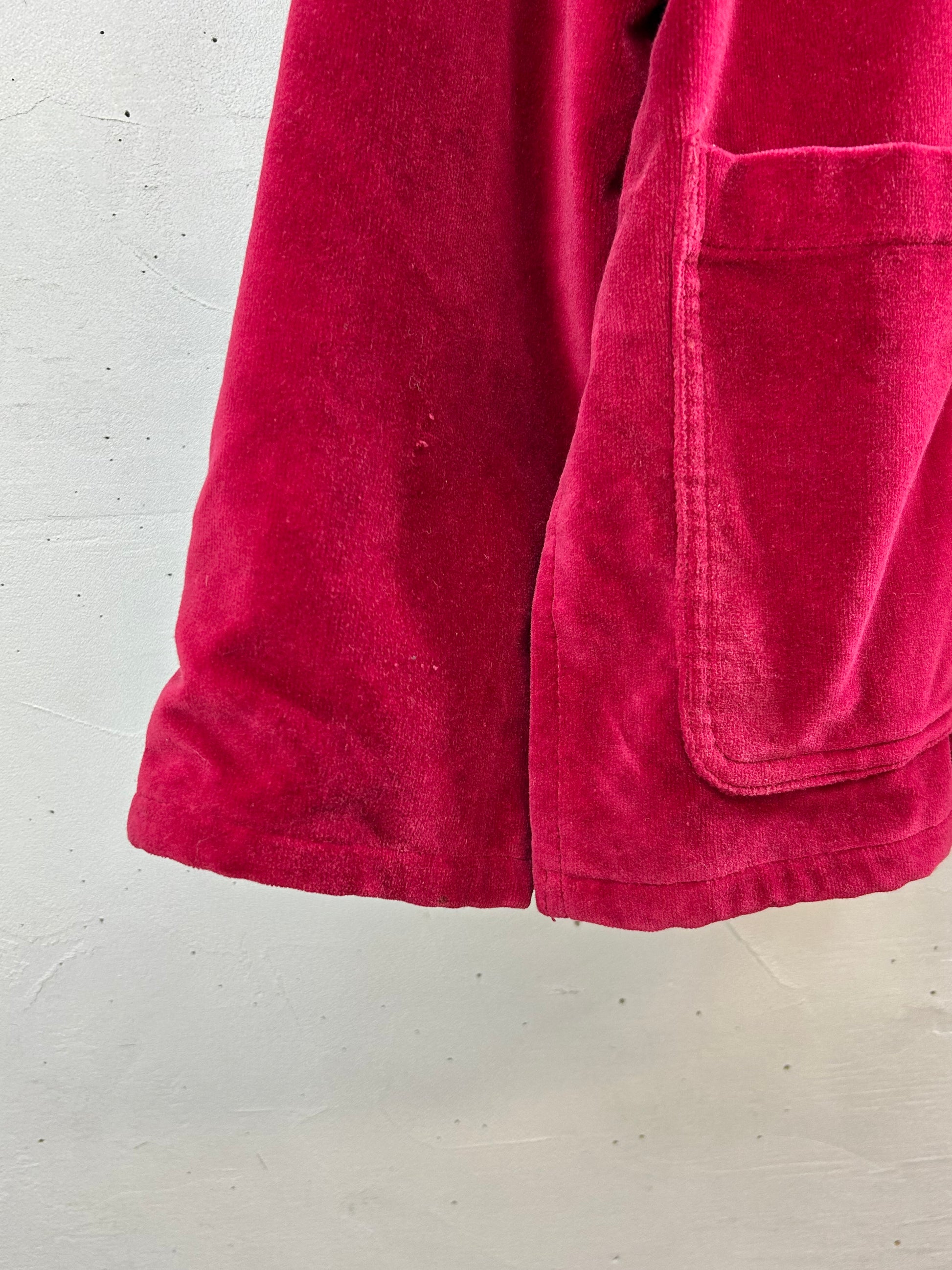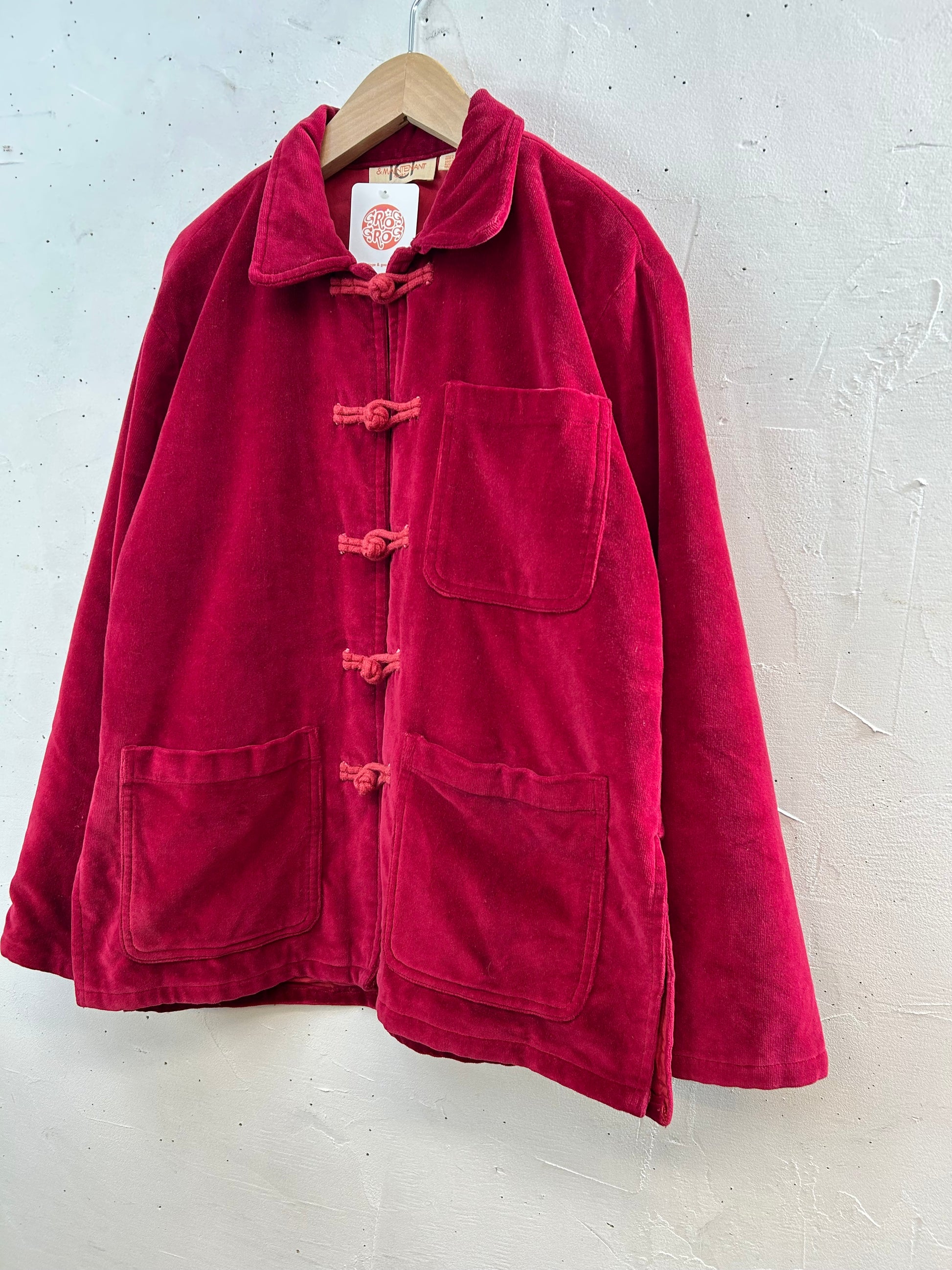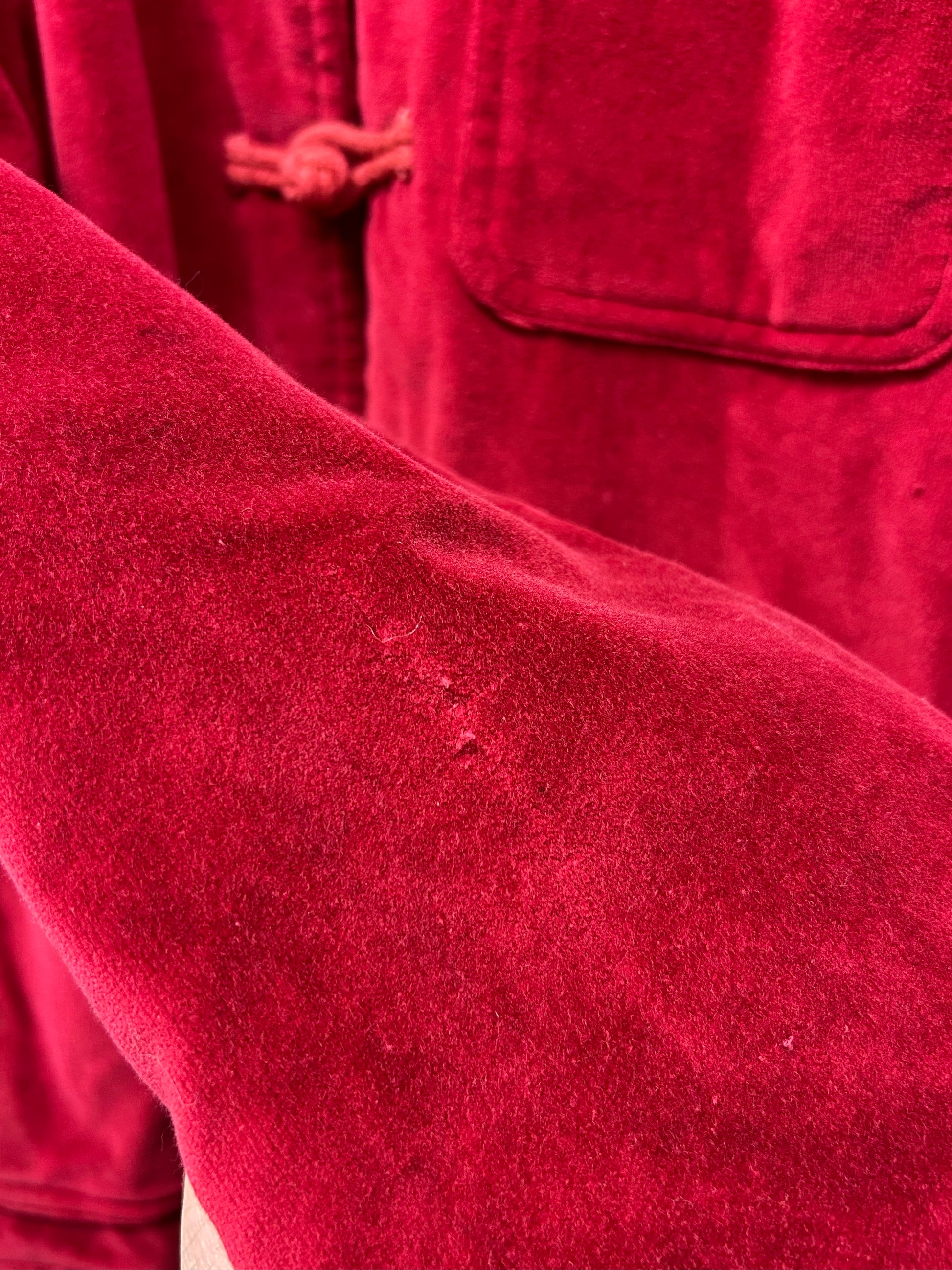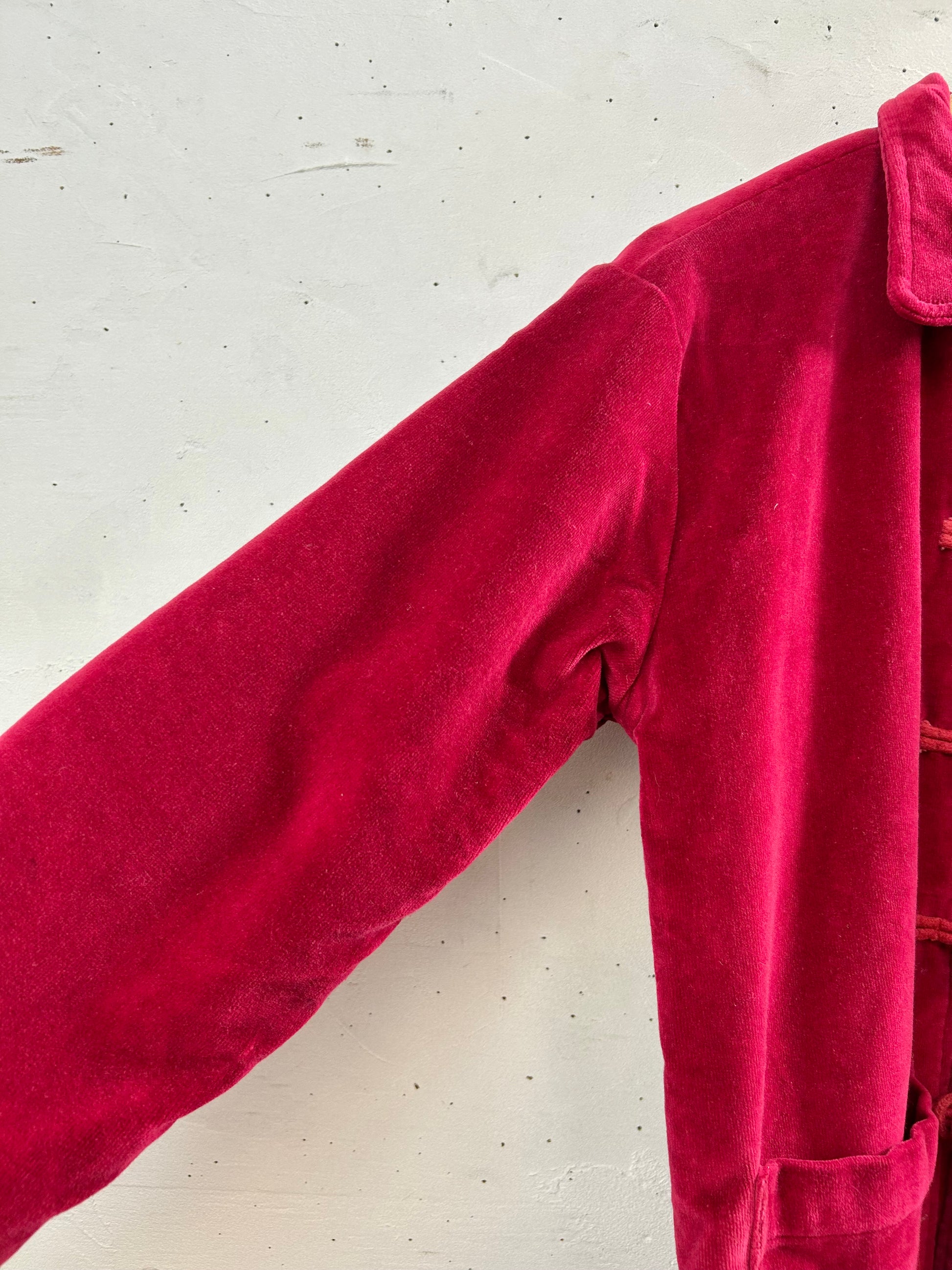 深みのあるレッドのベロアが上品で、フレンチチャイナのような3ポケットデザインが素敵な一着。