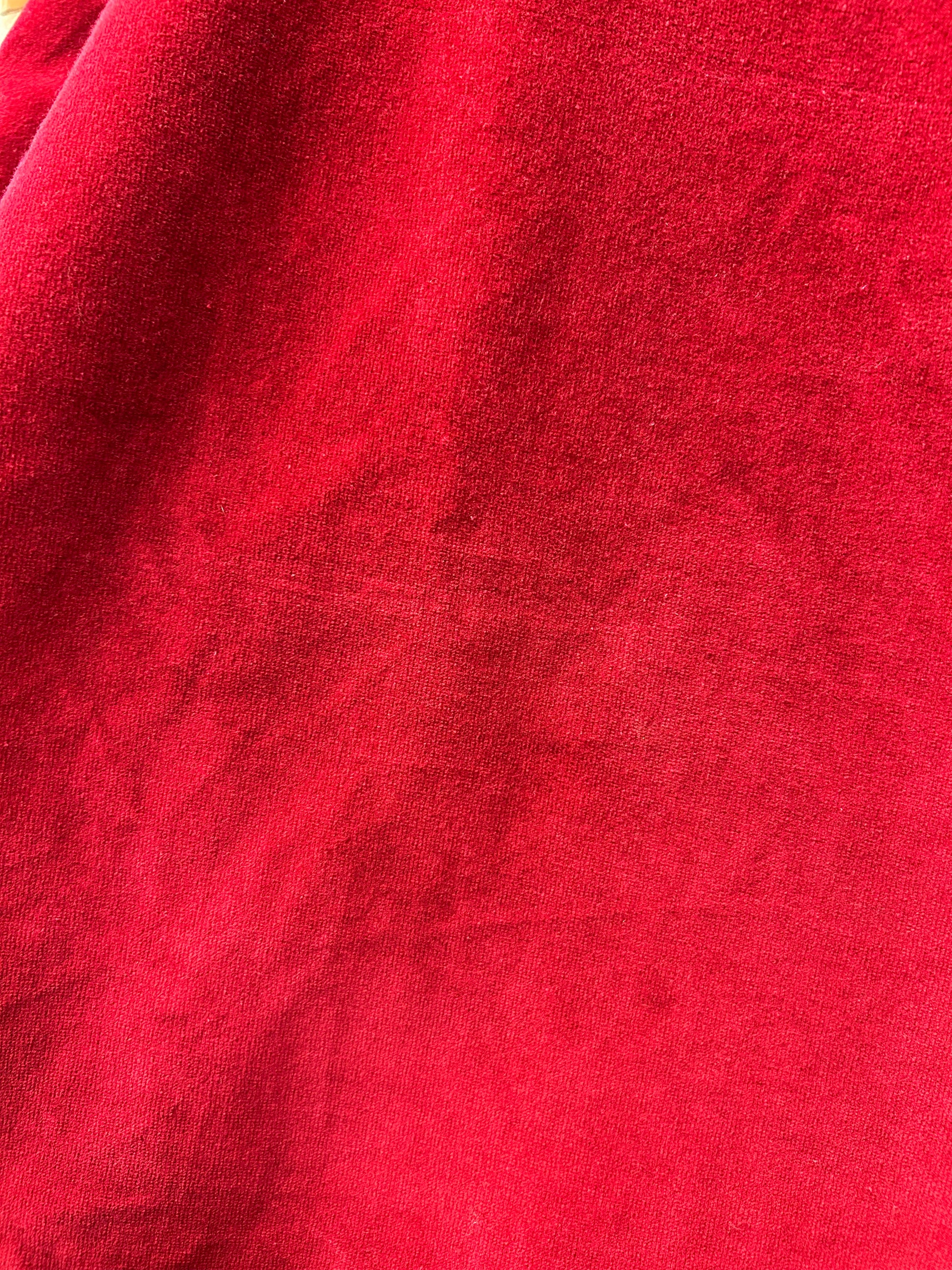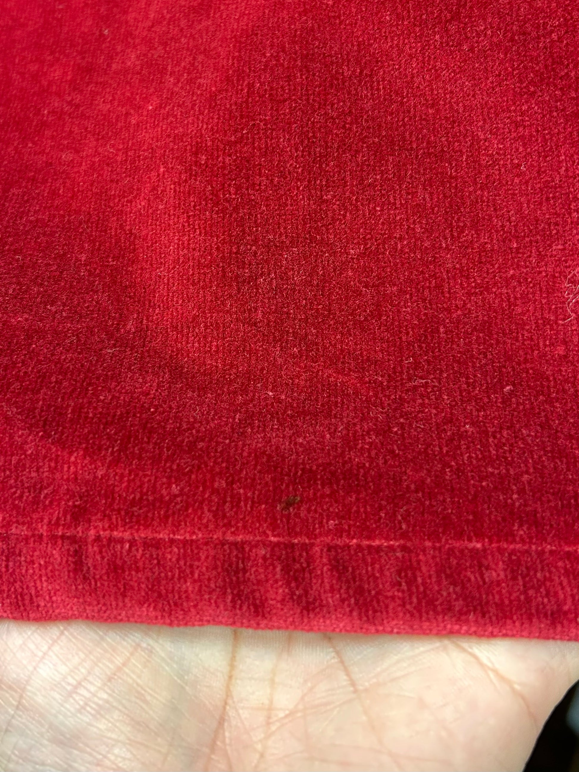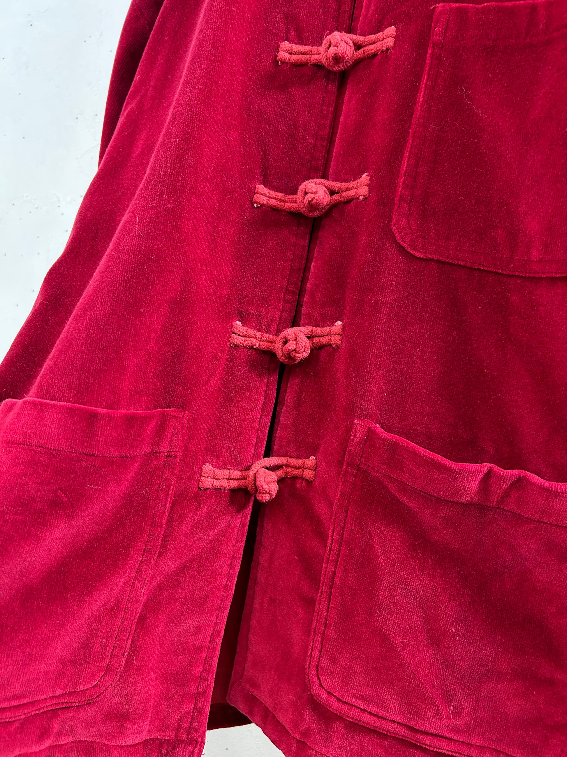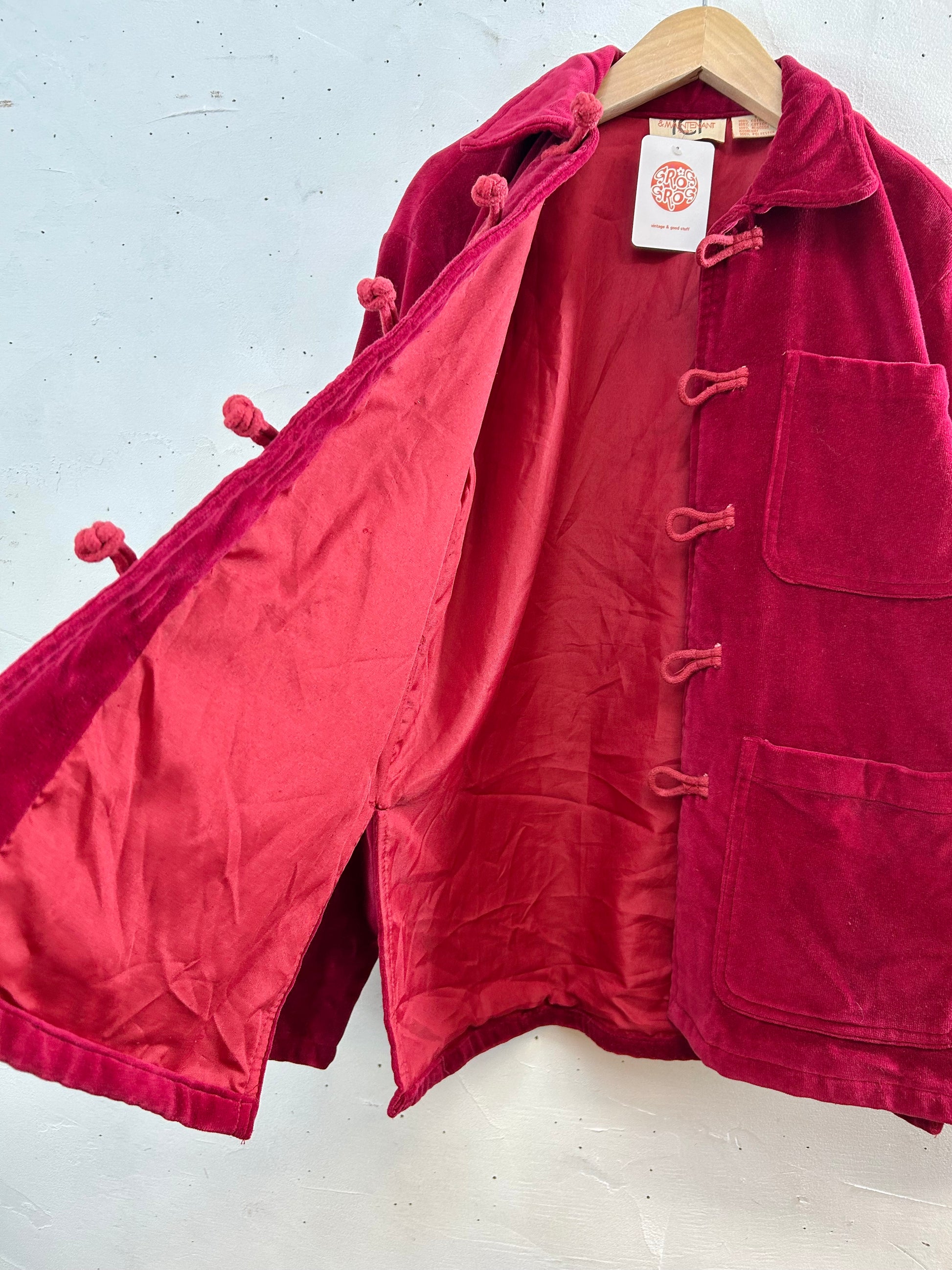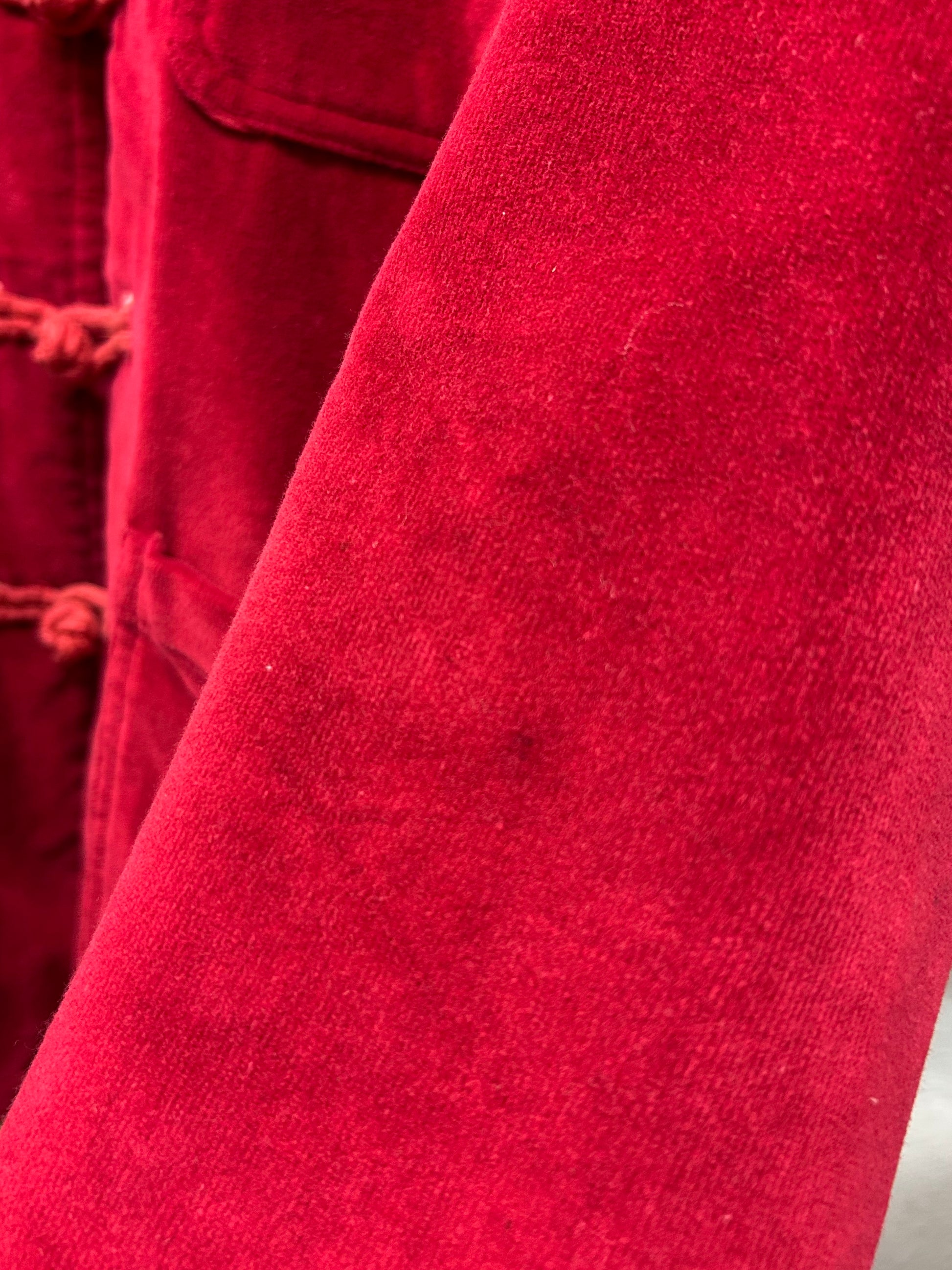 深みのあるレッドのベロアが上品で、フレンチチャイナのような3ポケットデザインが素敵な一着。
