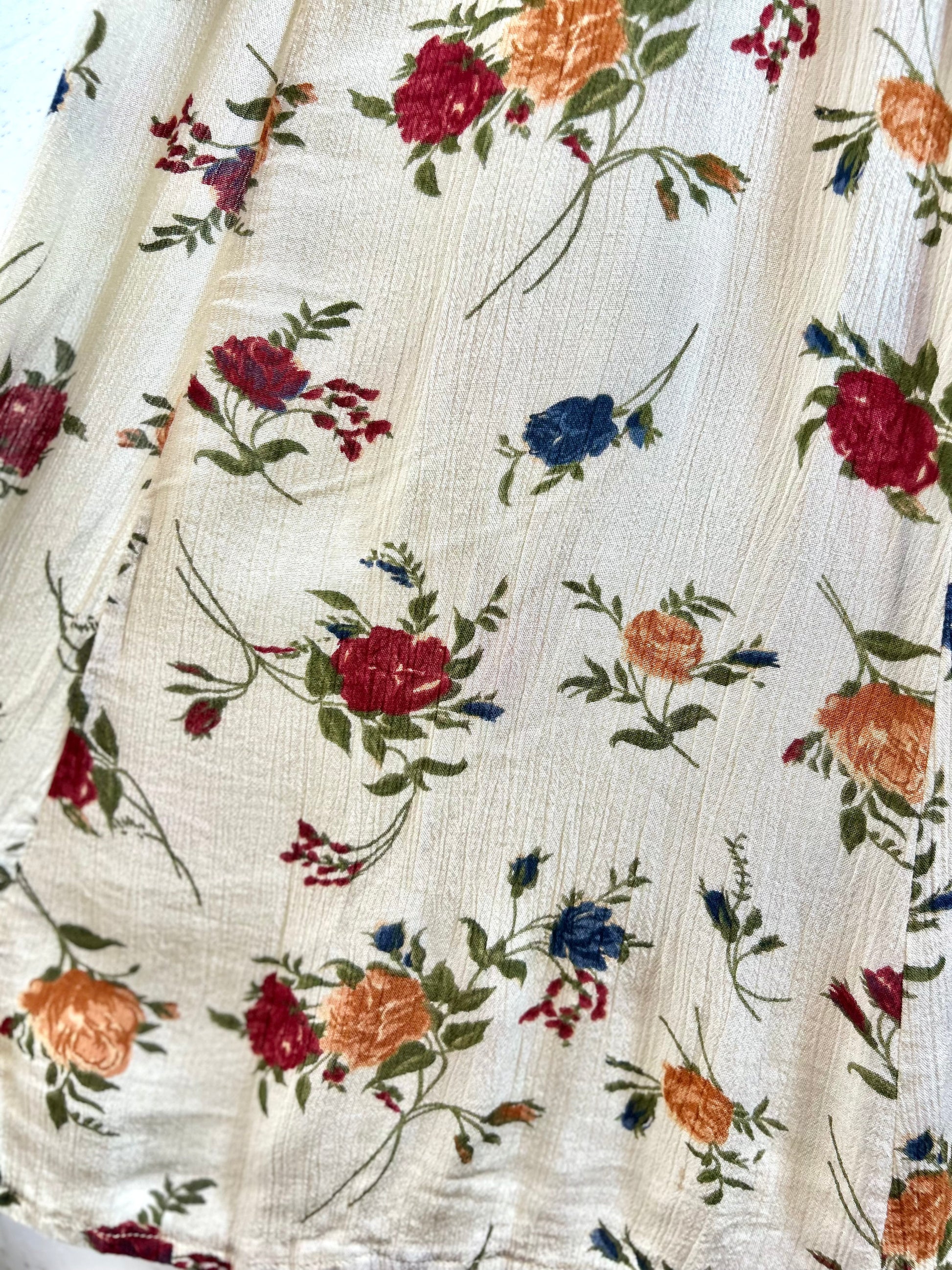 雰囲気のあるフラワーパターンとレイヤード風デザインで上品な一着。