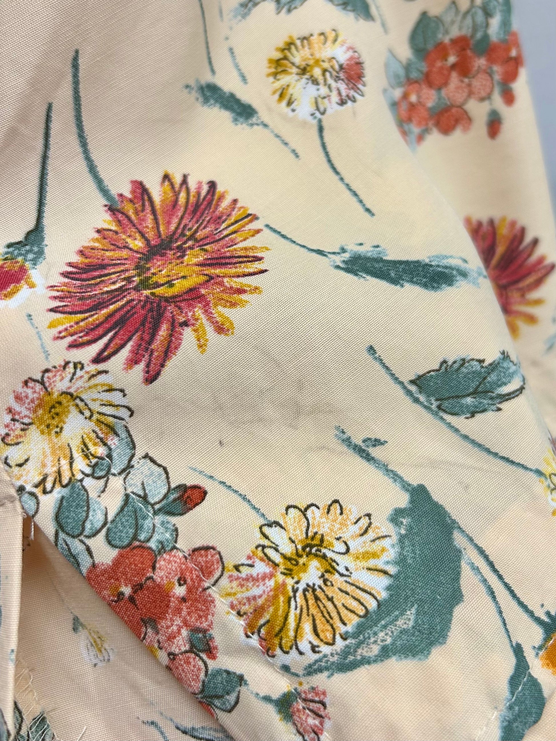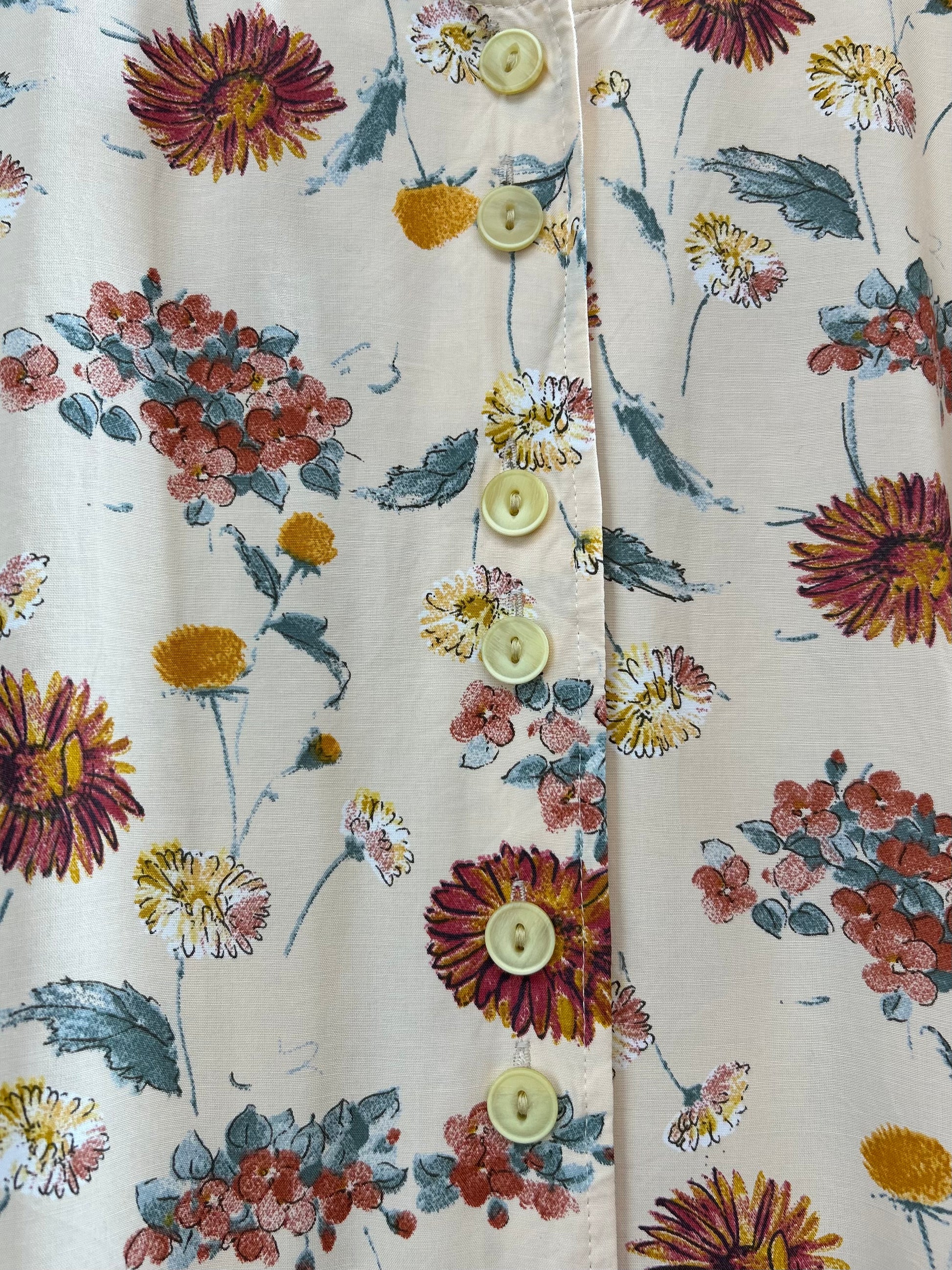 あたたかみのあるフラワーパターンが可愛いらしい一着。
