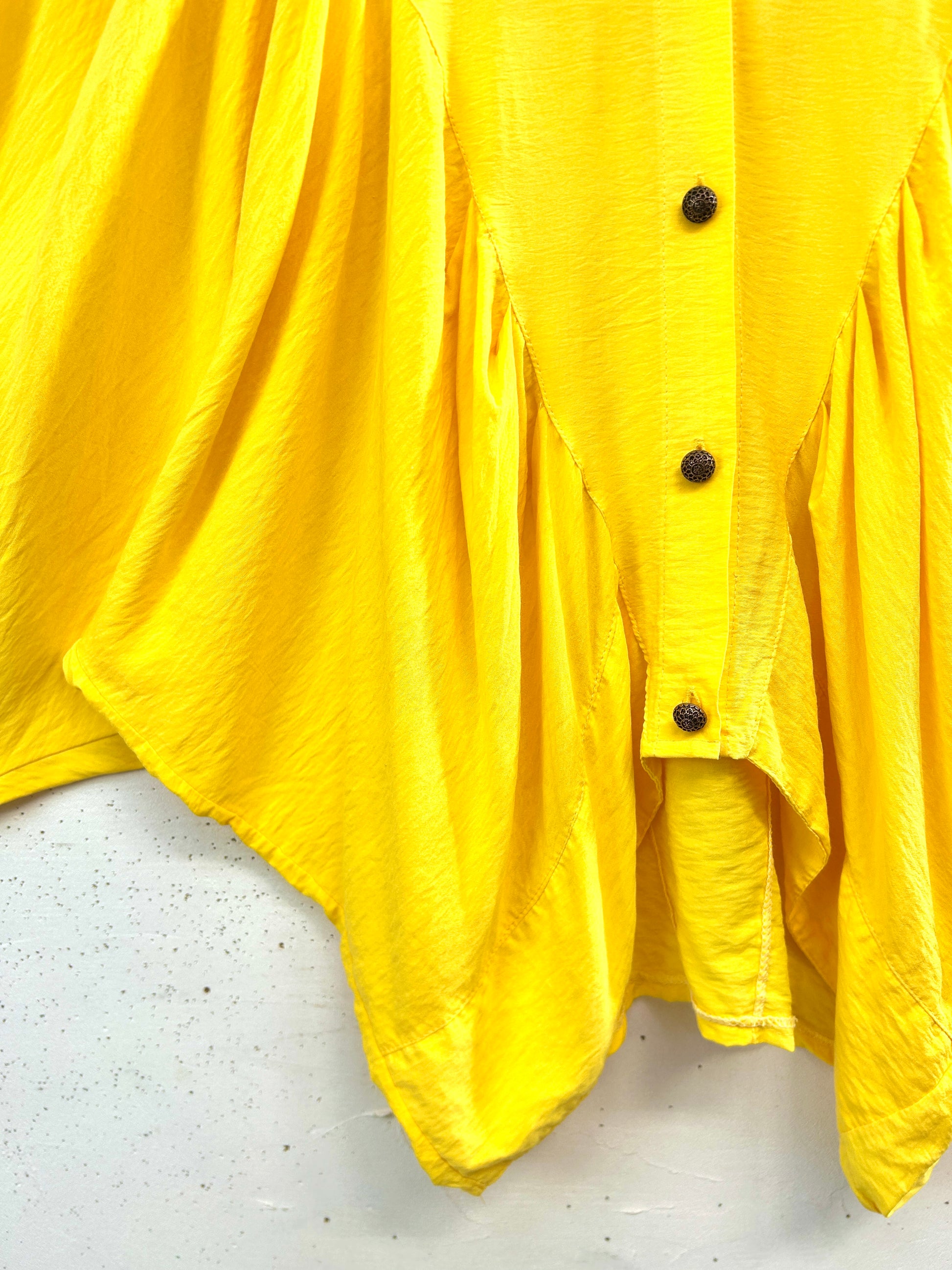 イエローカラーが目をひく、形の面白い雰囲気抜群の1着。