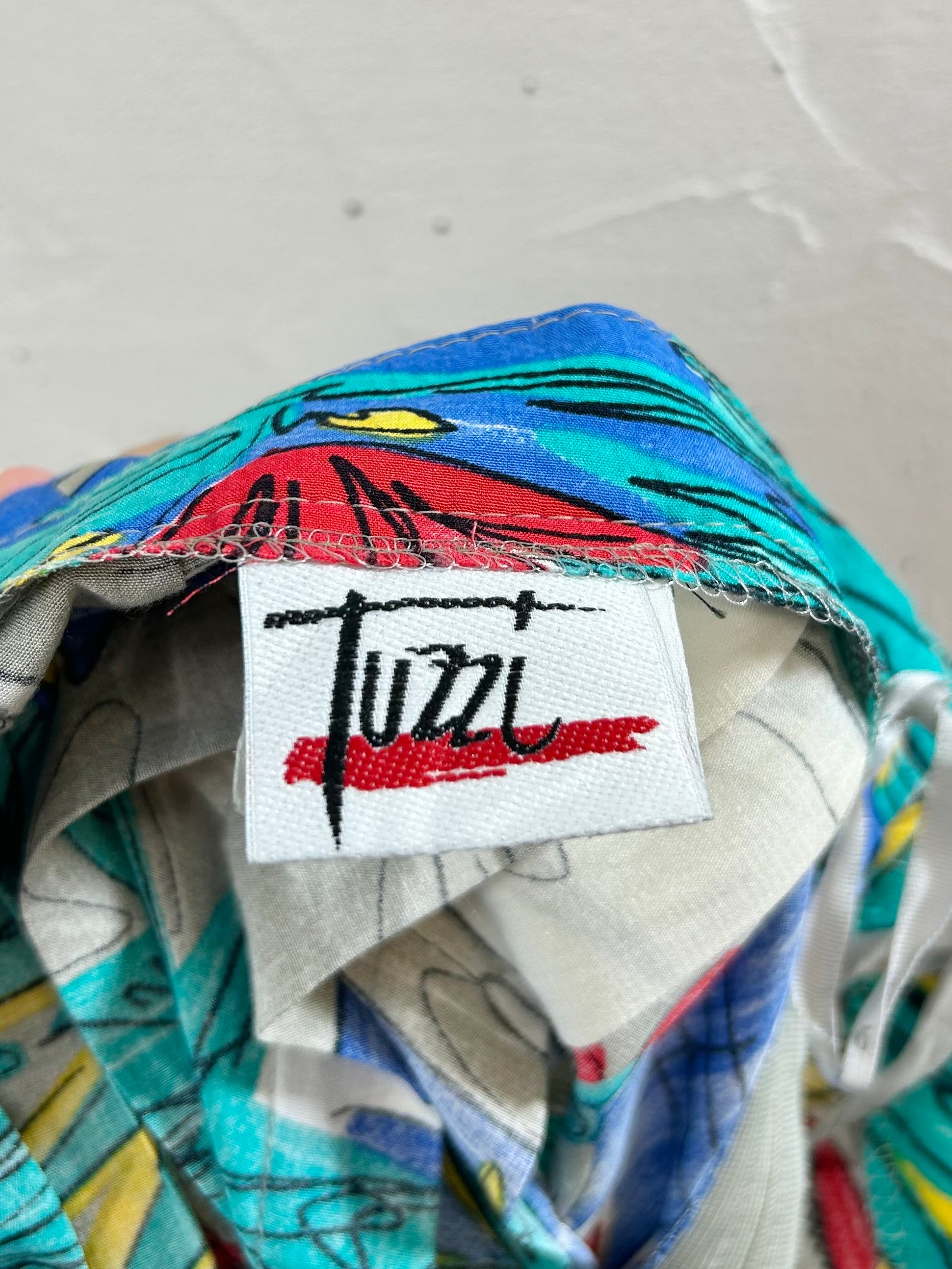 トゥクトゥクやヤシの木など旅行に行きたくなるようなパターンが素敵な1着。