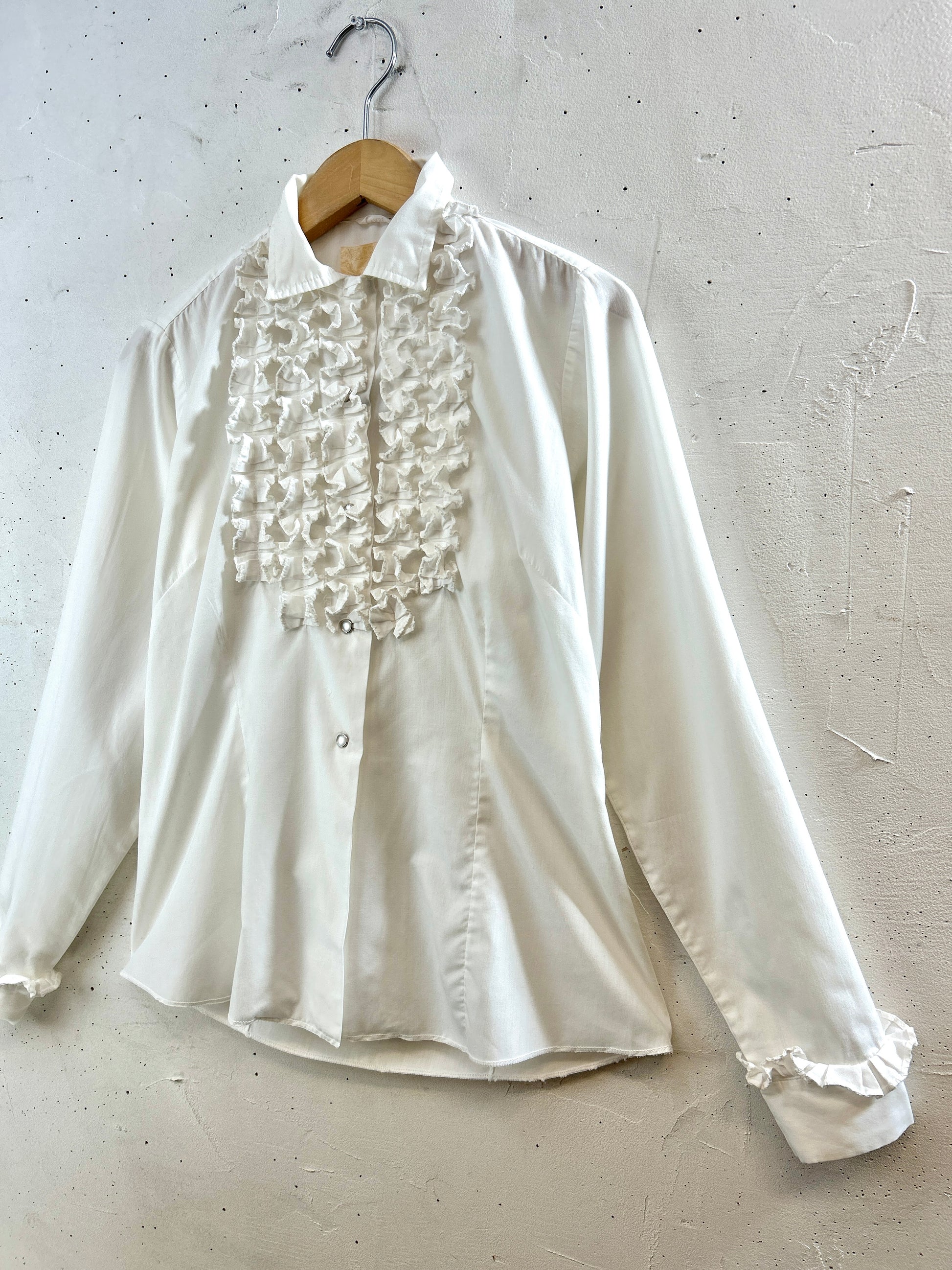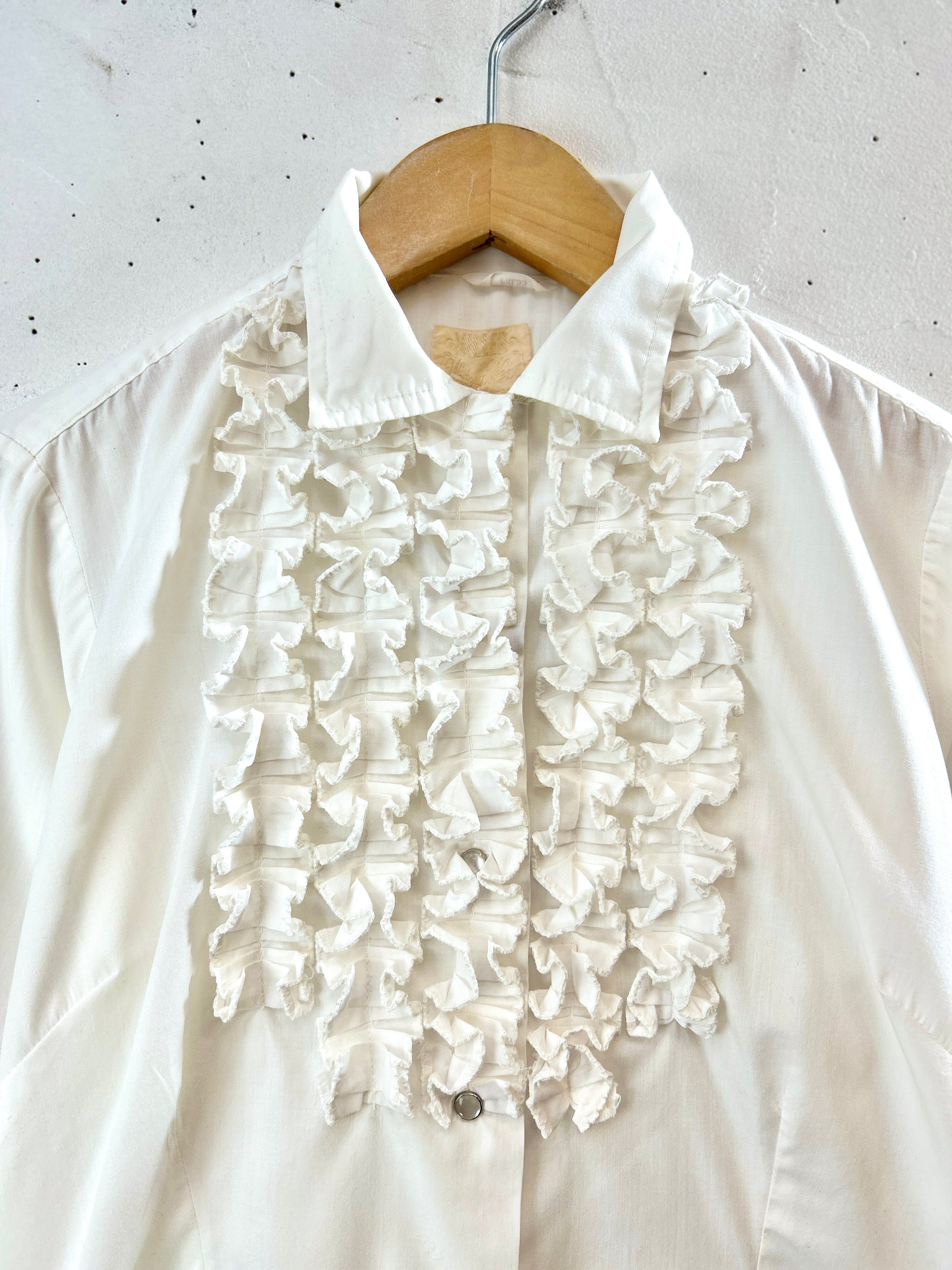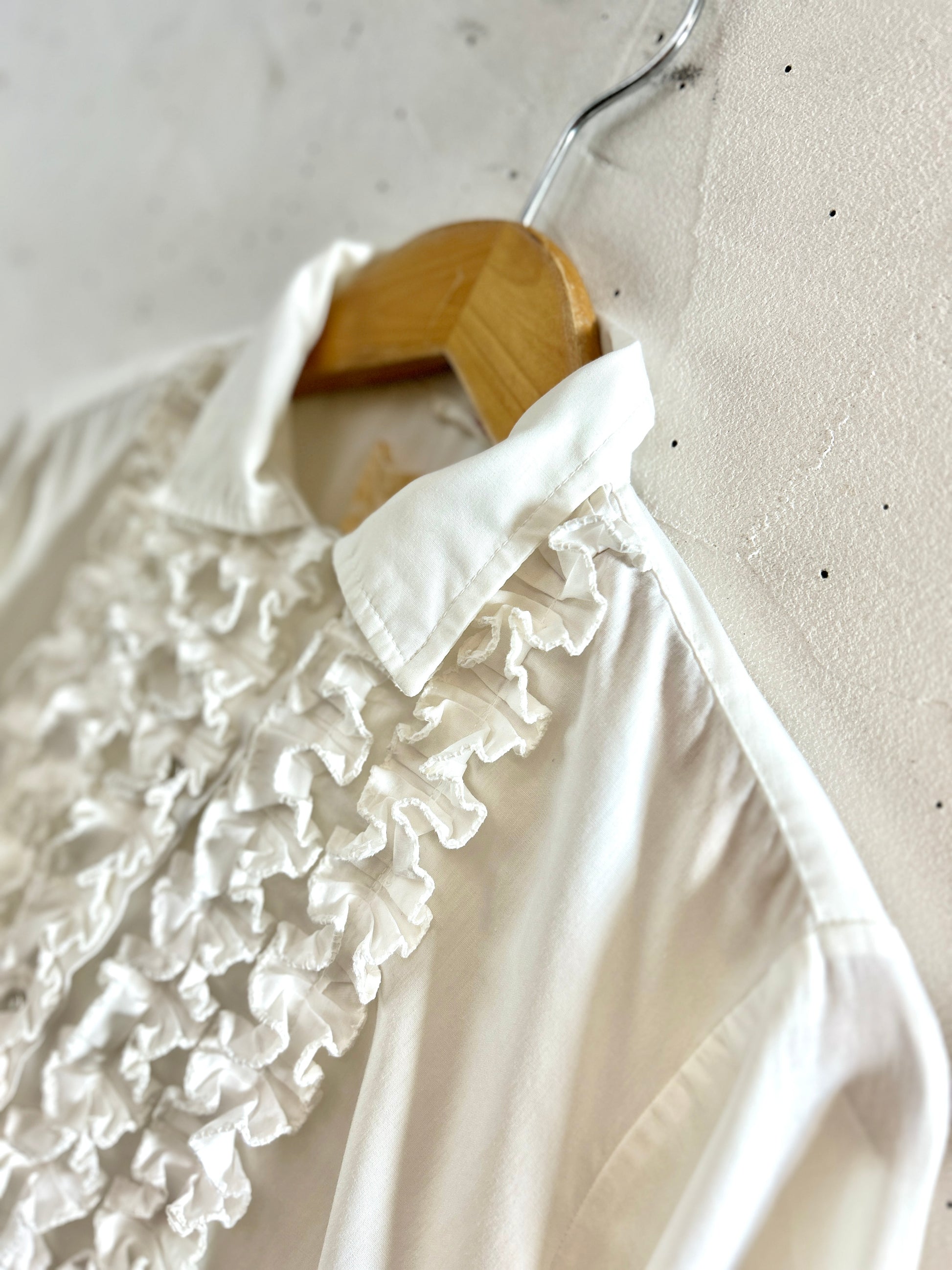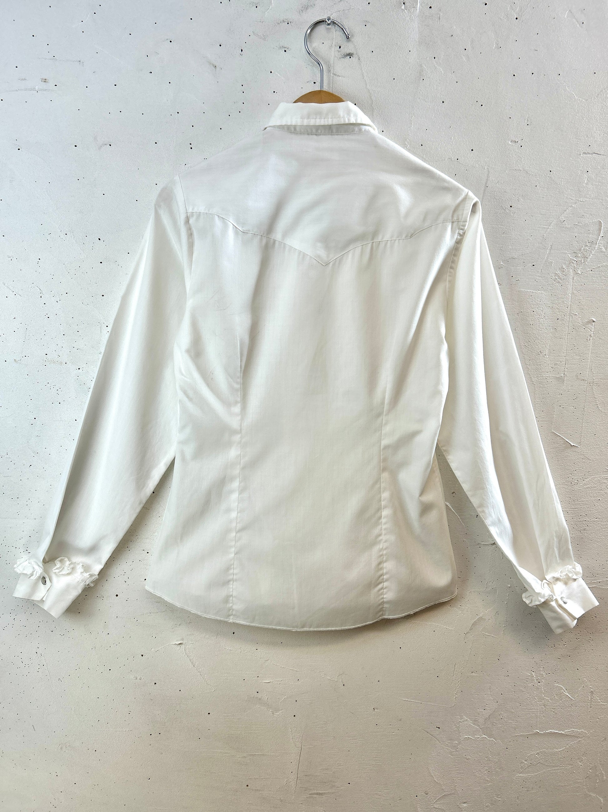 胸元のフリルが印象的で、ヨーク切り替えなど、ウエスタンシャツらしいスッキリとしたシルエットがかっこよく、一枚でバシッと決まります。