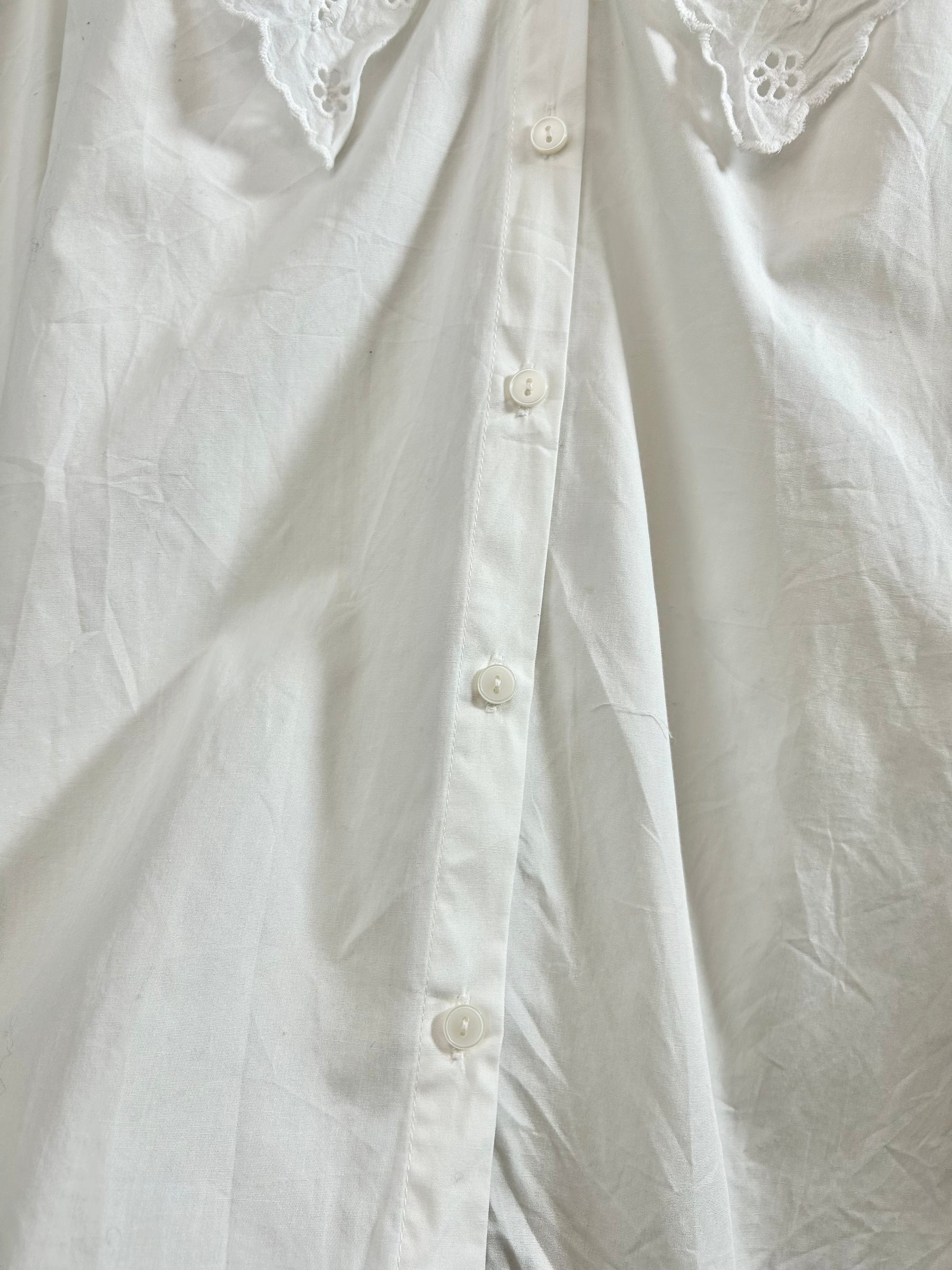 カットワークレース生地のビッグカラーがとても可愛らしい一着。